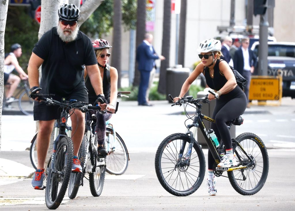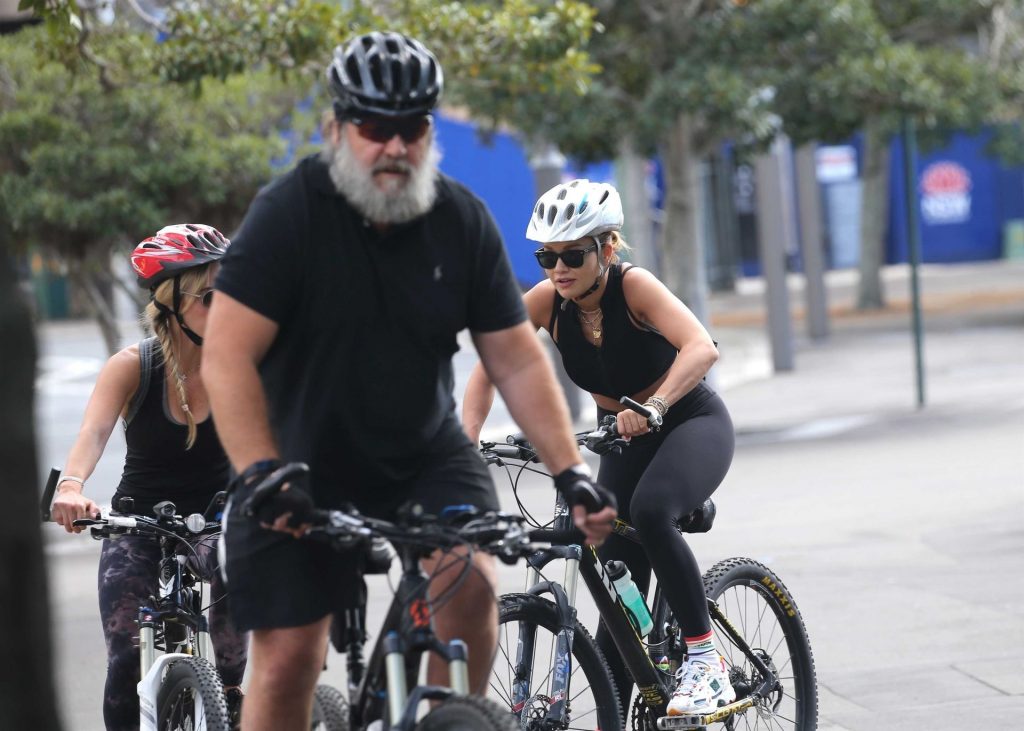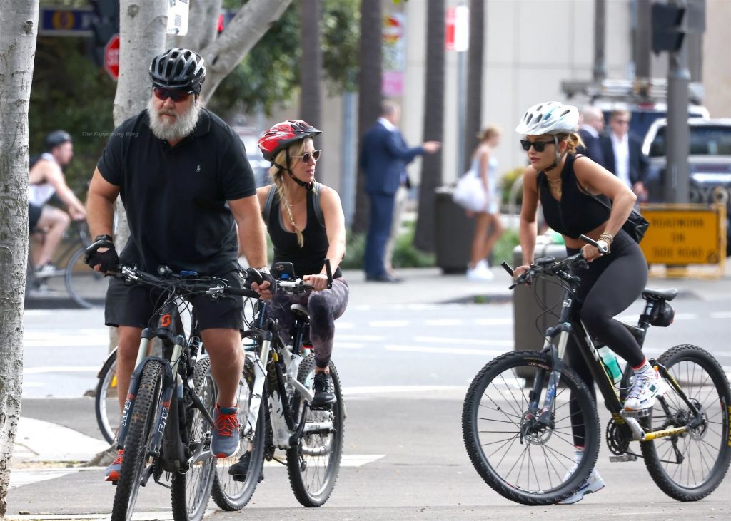 Russell, 57 anni, e la sua fidanzata americana Britney Theriot, 30 anni, hanno portato Rita a fare un giro in scooter per la città, con Rita, 30 anni, che sfoggiava gli addominali scolpiti con un top corto durante l’uscita.