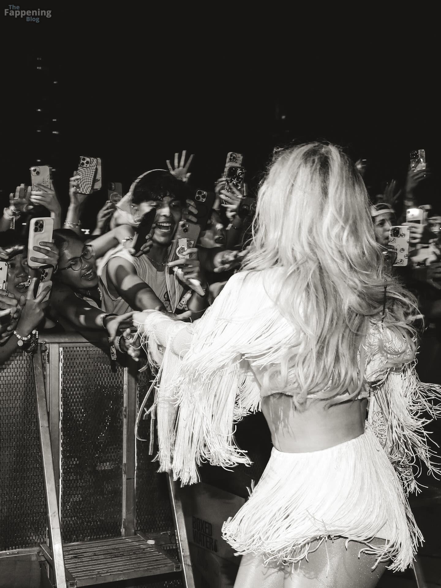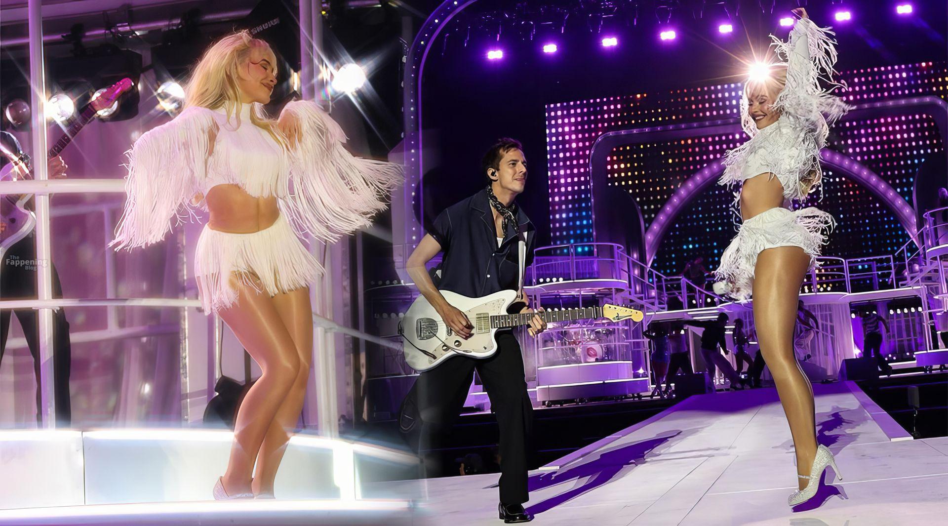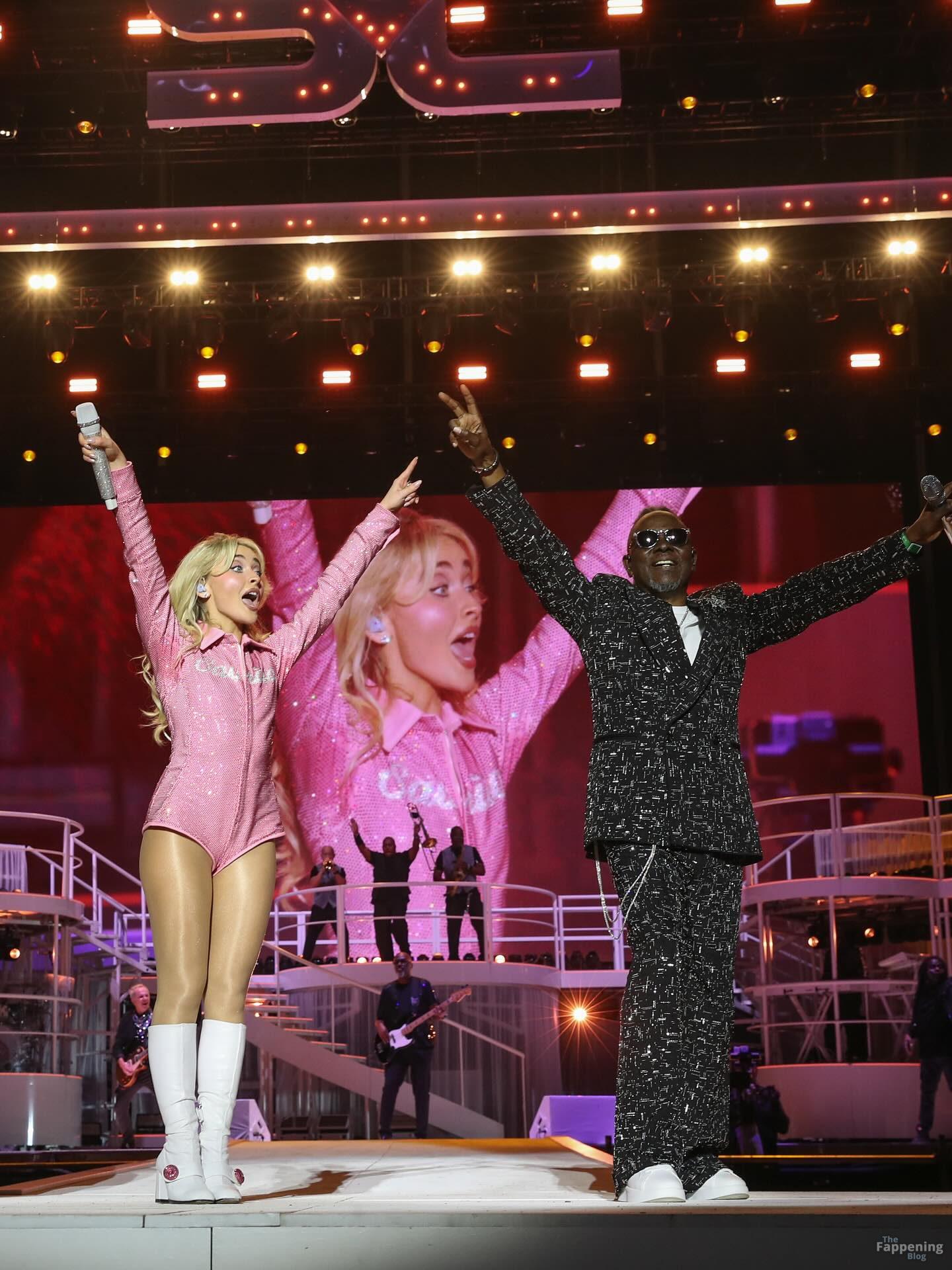 Sabrina Carpenter ha fatto un figurone al Lollapalooza, indossando una tutina rosa con paillettes e un completo bianco con frange, mostrando le sue gambe, i fianchi e un serio potere da star.