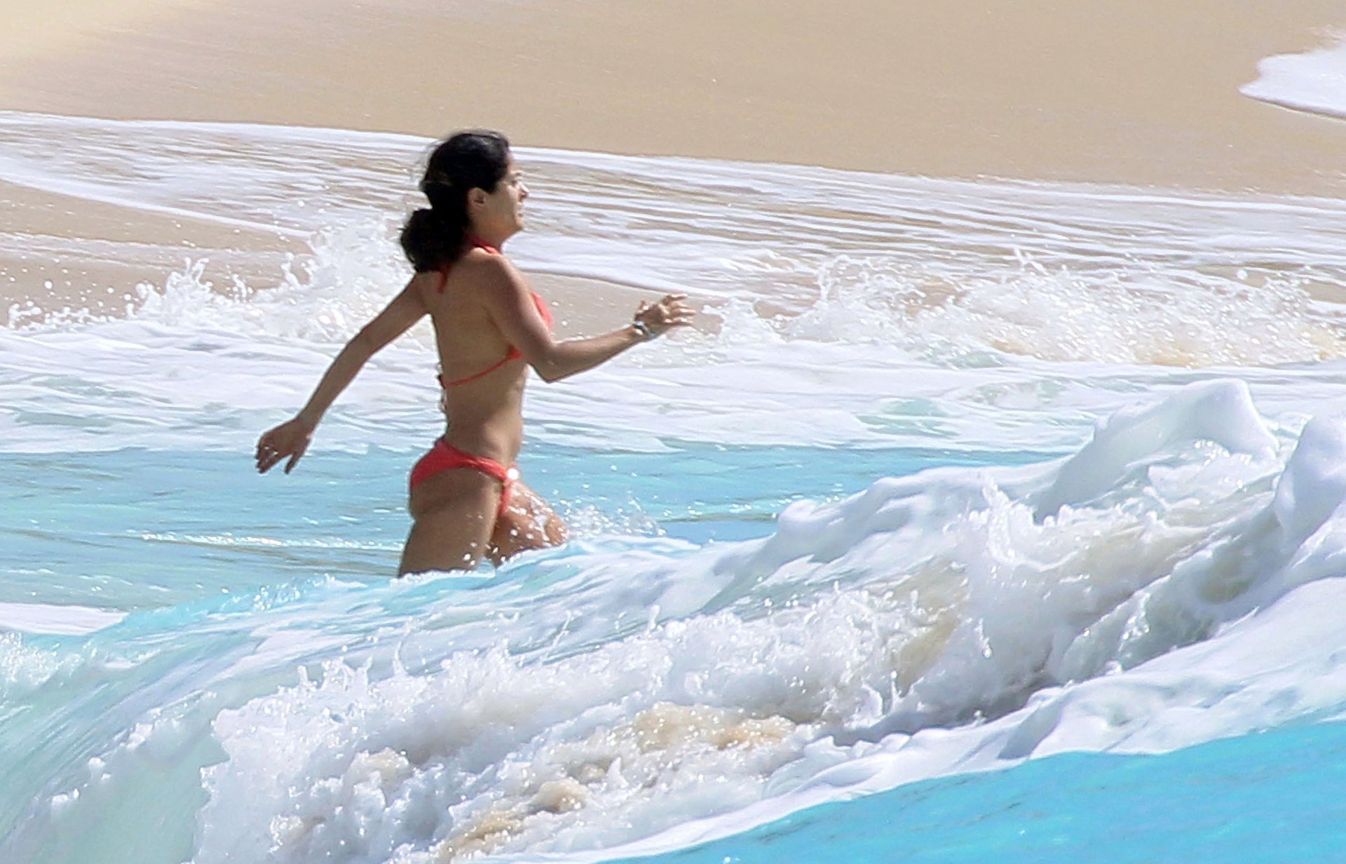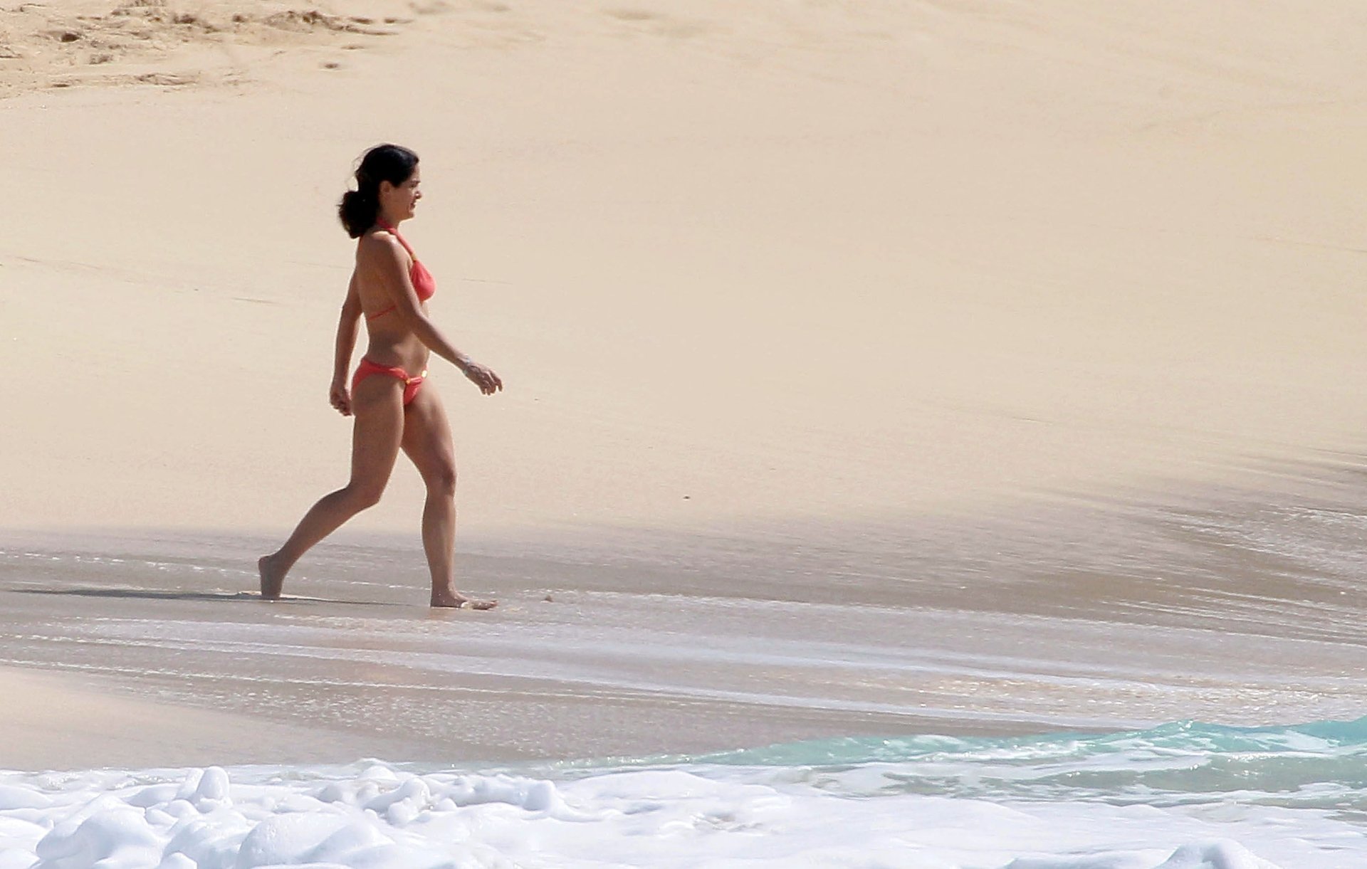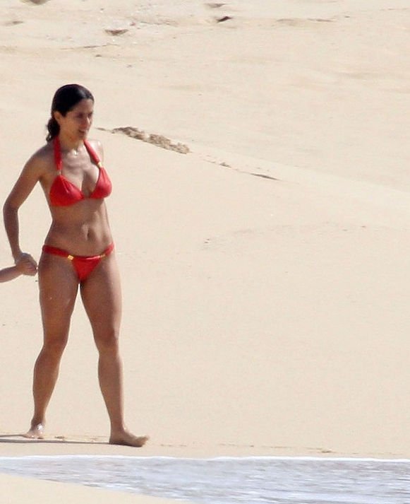 Salma Hayek ha mostrato le sue famose curve in un bikini rosso sulla spiaggia con la famiglia a St. Bart’s, 28/12/2010. Salma Hayek Pinault è un’attrice messicano-americana (The Hummingbird Project (nel ruolo di Eva Torres)), regista, produttrice. Nata: 2 settembre 1966.