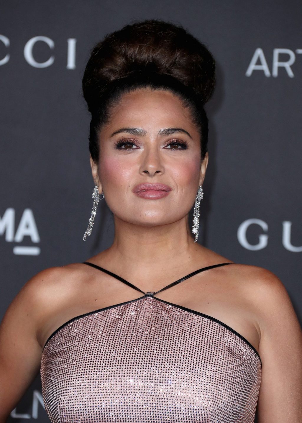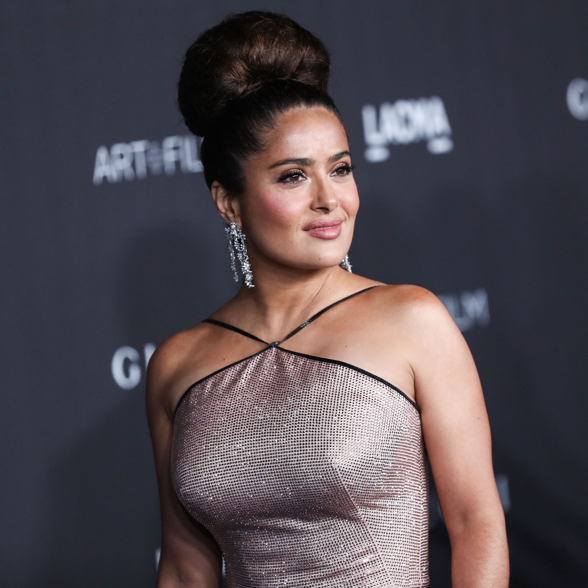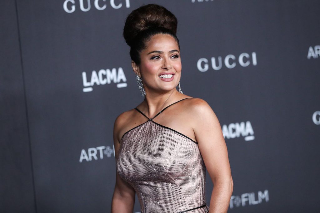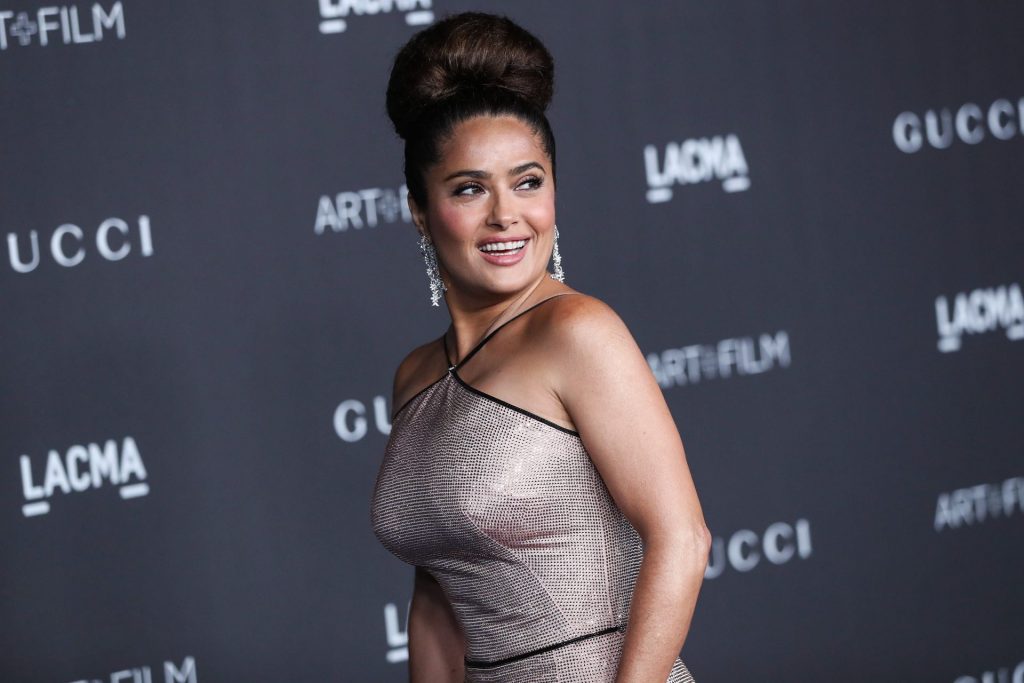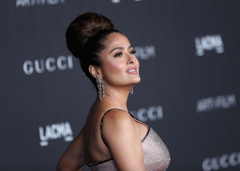 L’attrice prosperosa Salma Hayek Pinault, vestita Gucci, arriva al Gala LACMA Art + Film 2019 tenutosi al Los Angeles County Museum of Art il 2 novembre 2019 a Los Angeles.