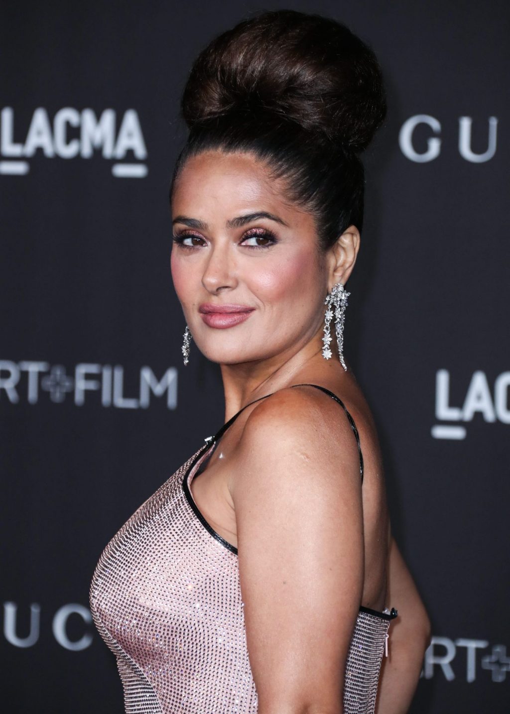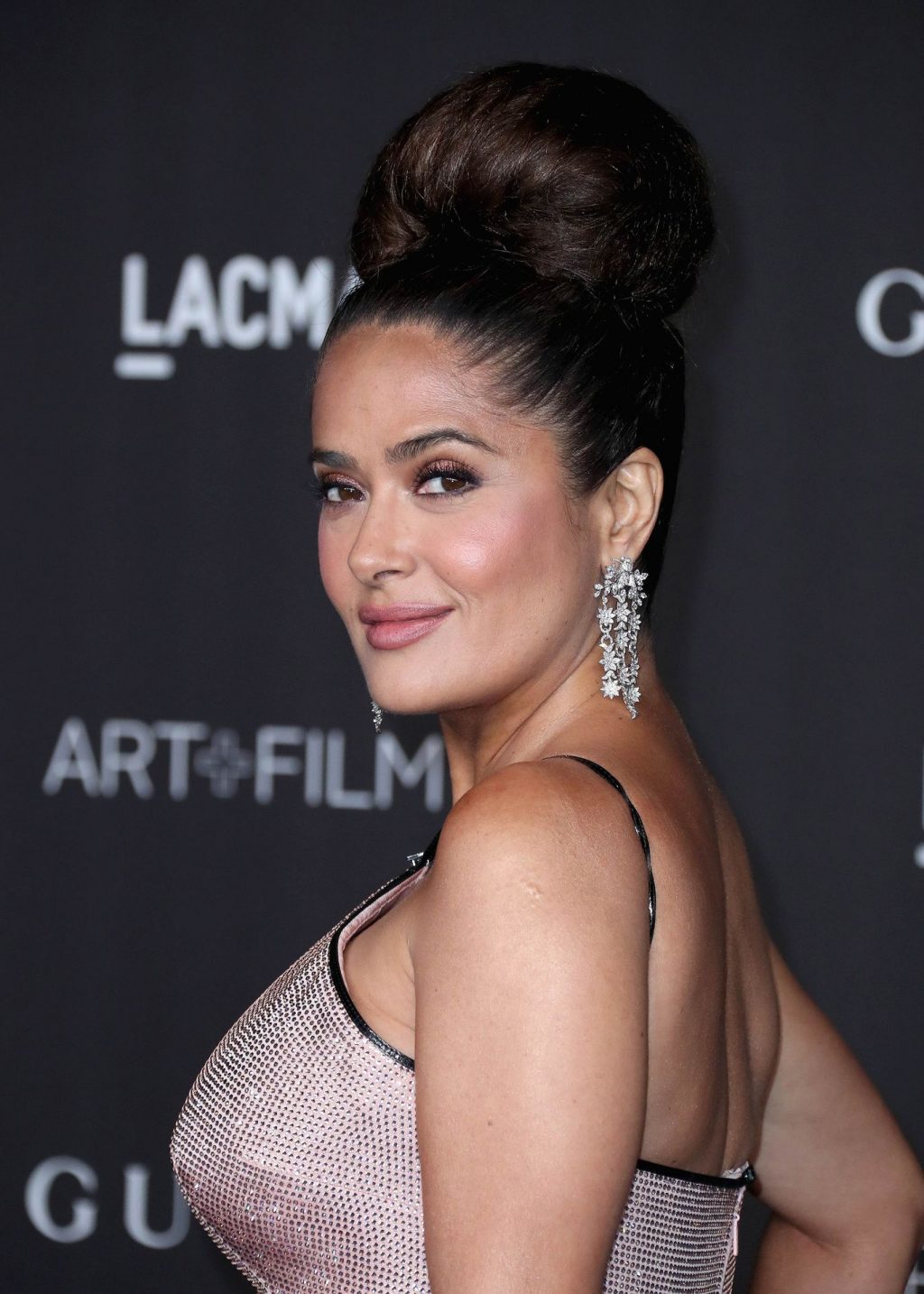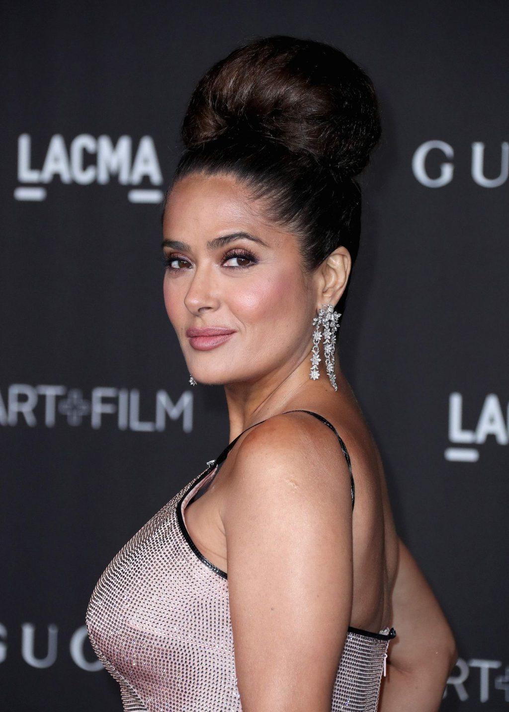 L’attrice prosperosa Salma Hayek Pinault, vestita Gucci, arriva al Gala LACMA Art + Film 2019 tenutosi al Los Angeles County Museum of Art il 2 novembre 2019 a Los Angeles.