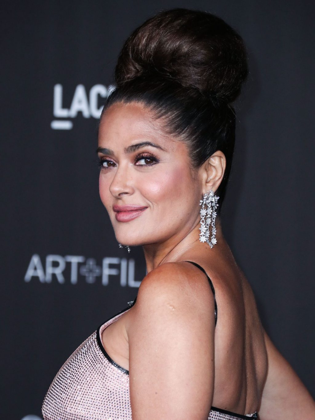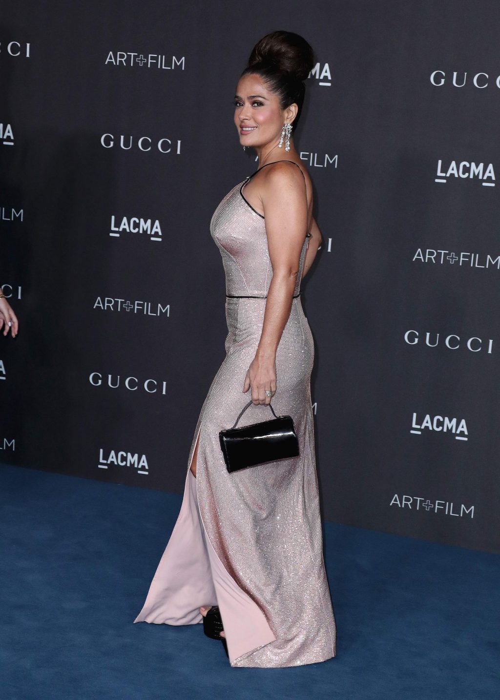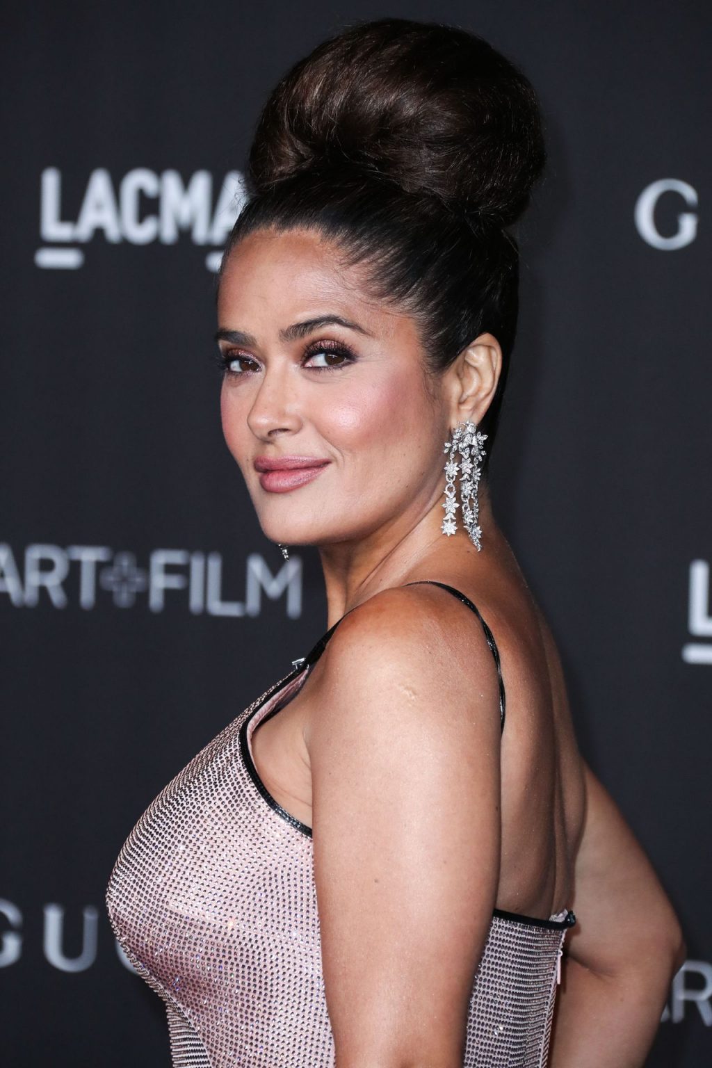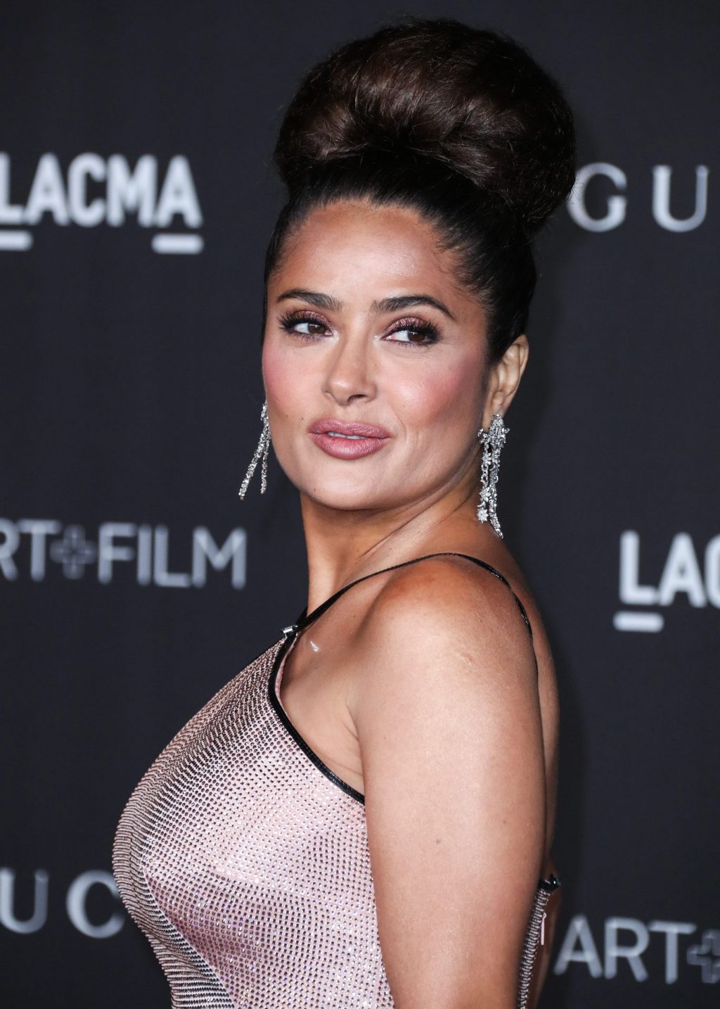 L’attrice prosperosa Salma Hayek Pinault, vestita Gucci, arriva al Gala LACMA Art + Film 2019 tenutosi al Los Angeles County Museum of Art il 2 novembre 2019 a Los Angeles.