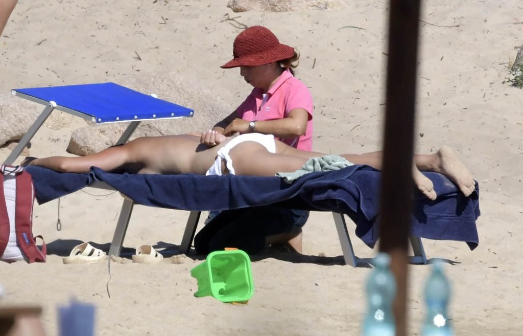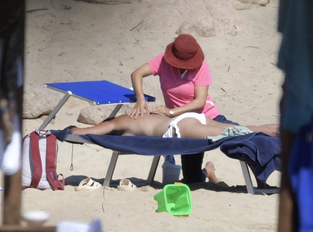 Il gruppo è in vacanza in famiglia sull’isola italiana baciata dal sole della Sardegna e soggiorna al lussuoso Hotel Cala di Volpe, 09/07/2018. Sam ha mostrato il suo fisico da spiaggia indossando un bikini multicolore mentre faceva un tuffo nel mare.
