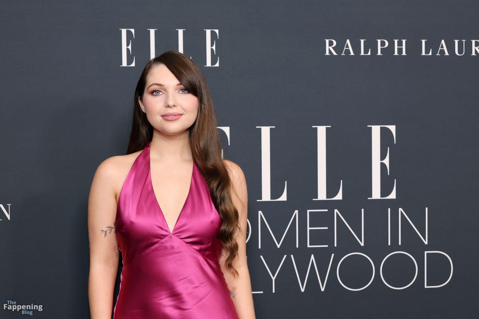 Samantha Hanratty appare senza reggiseno in un abito aderente di raso mentre partecipa alla celebrazione Women in Hollywood 2025 di ELLE presentata da Ralph Lauren e Bvlgari a Los Angeles, California, il 17 novembre.