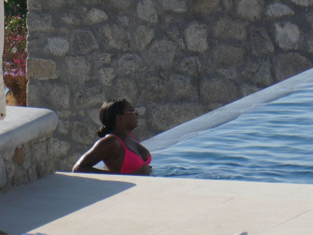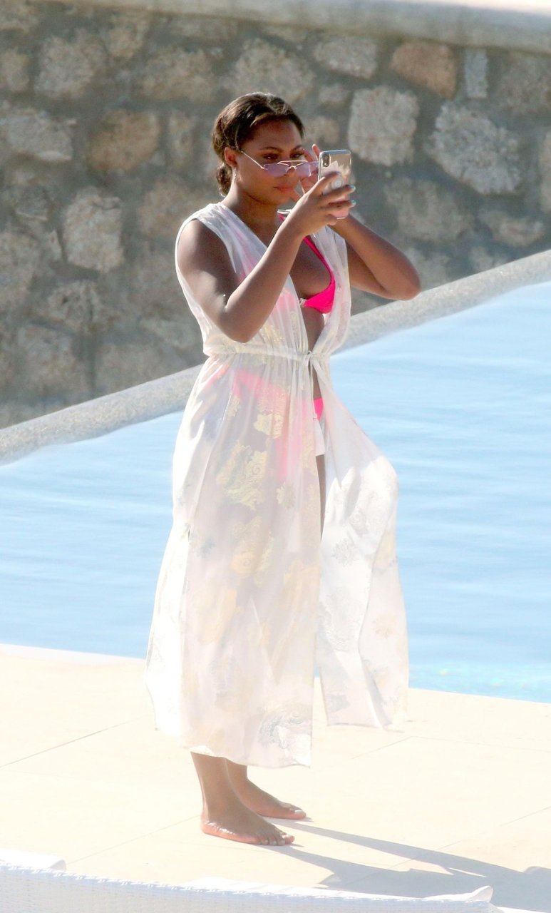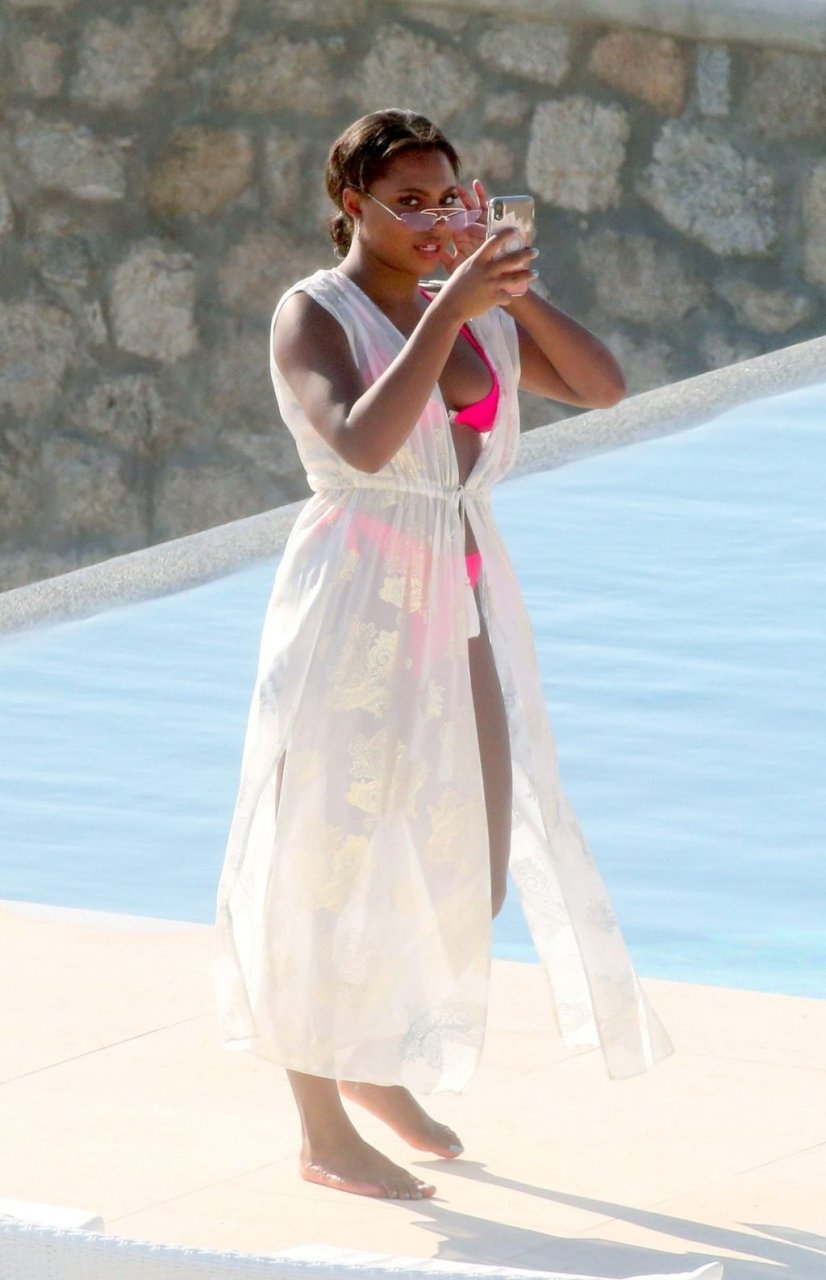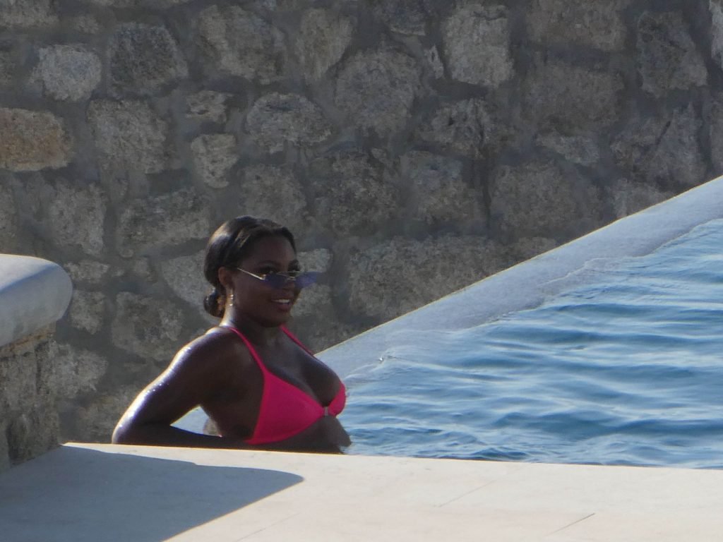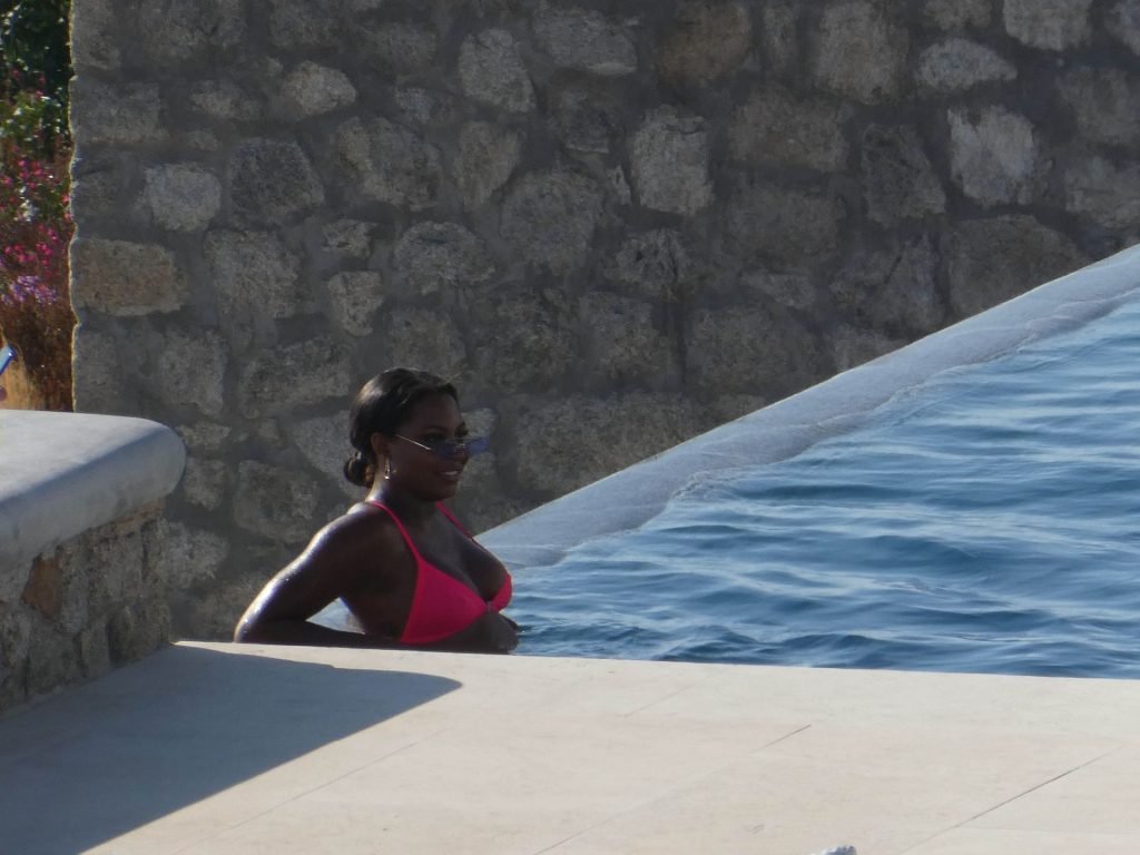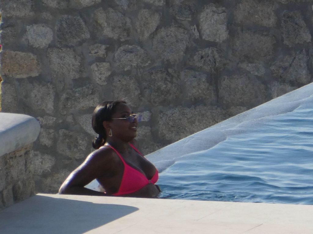 Reality TV personality Samira Mighty è stata vista in bikini rosa rilassarsi a bordo piscina durante una vacanza a Mykonos, 08/06/2019.