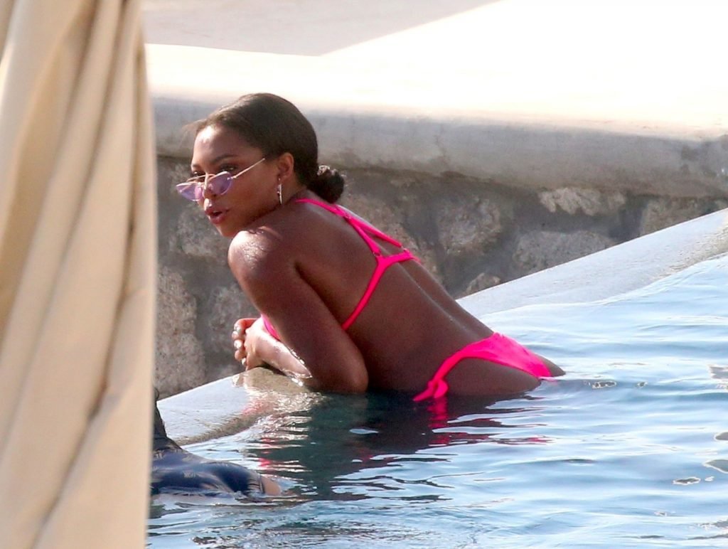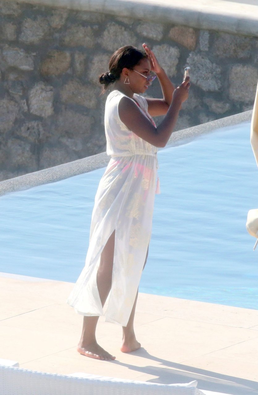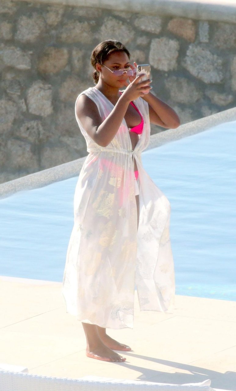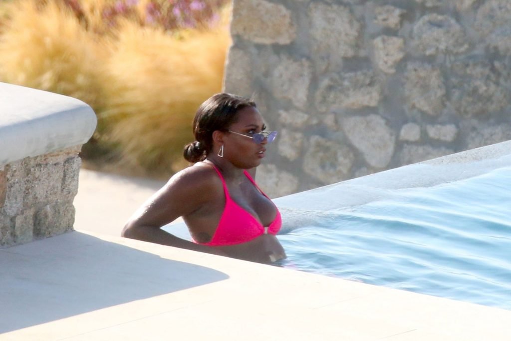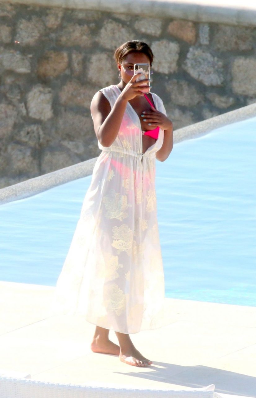 Reality TV personality Samira Mighty è stata vista in bikini rosa rilassarsi a bordo piscina durante una vacanza a Mykonos, 08/06/2019.