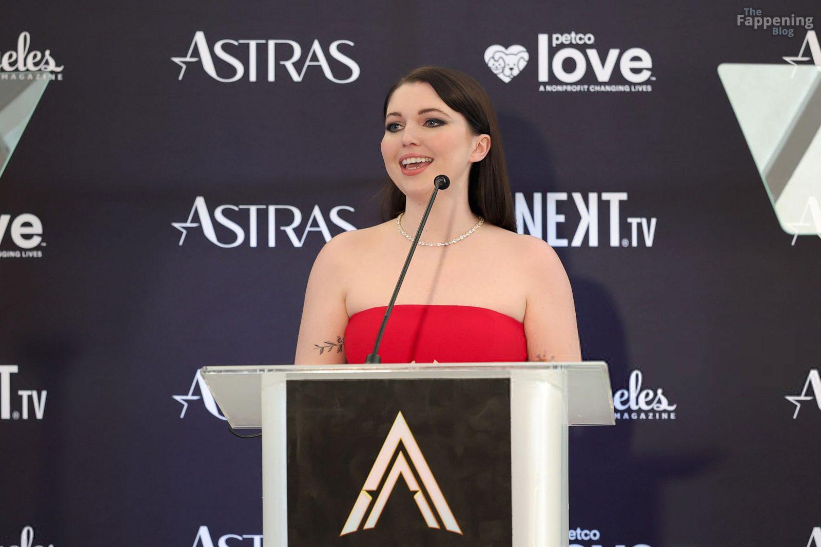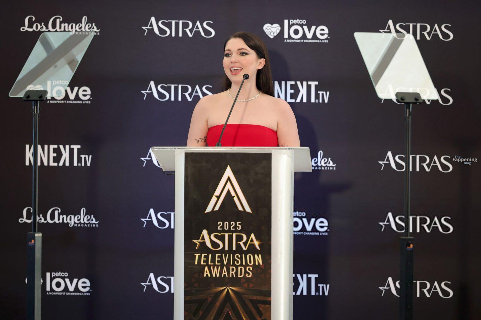 L’attrice Sammi Hanratty stupisce ai Premi Astra TV 2025, sfoggiando un elegante abito rosso.