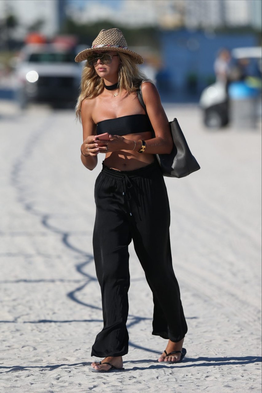 La modella polacca appena single Sandra Kubicka mostra i suoi incredibili addominali con un top bikini a fascia e pantaloni larghi mentre trascorre del tempo a Miami Beach, 21/10/2018.