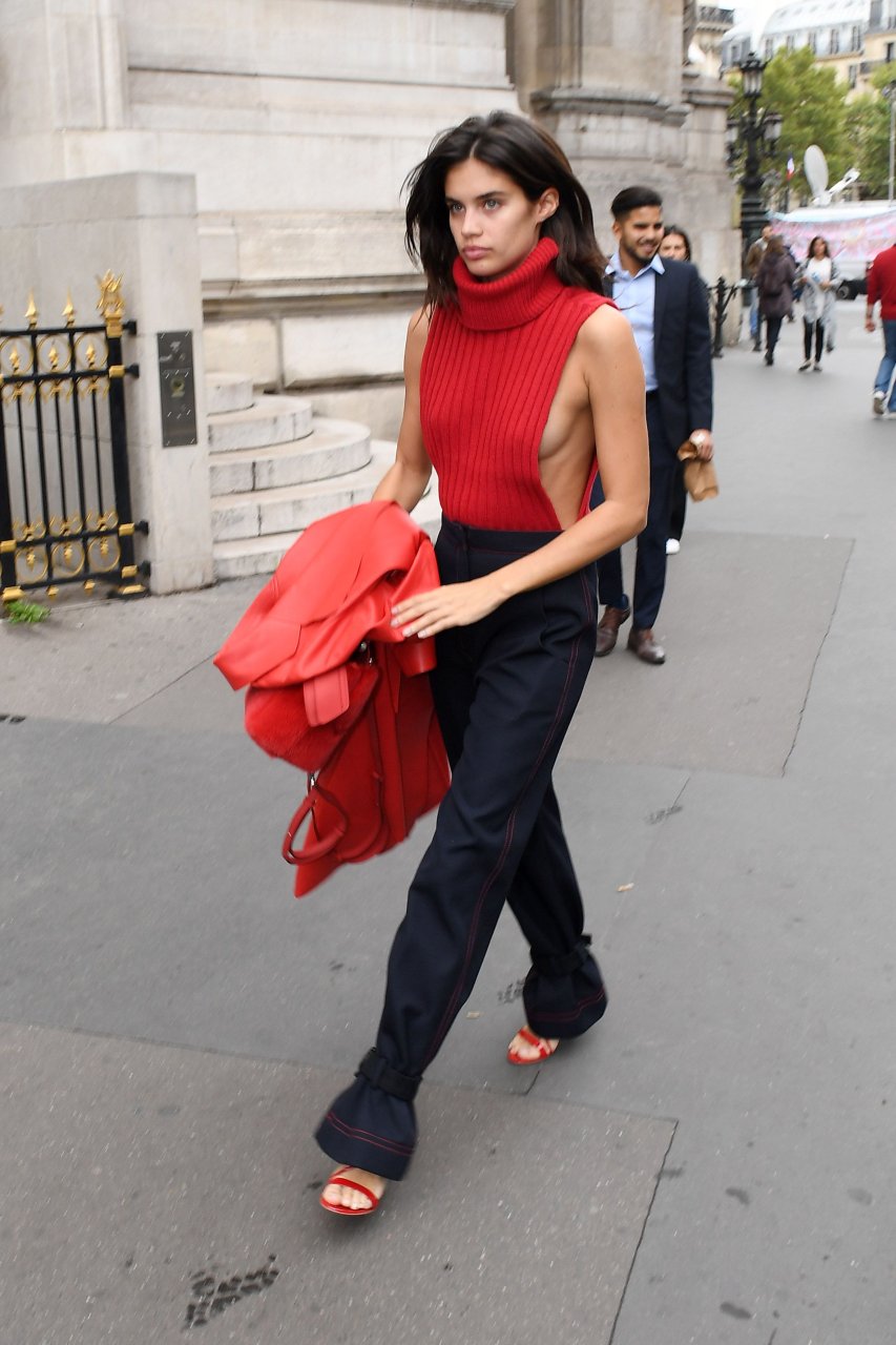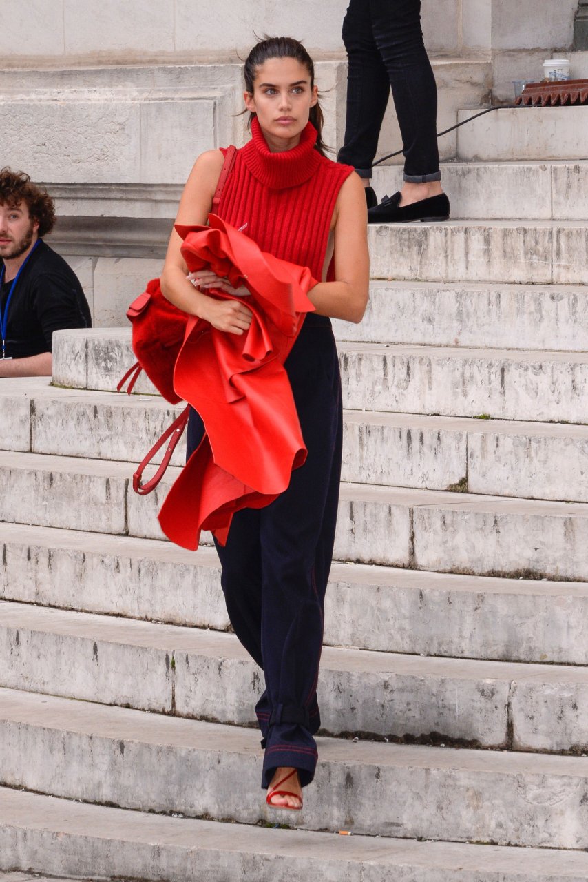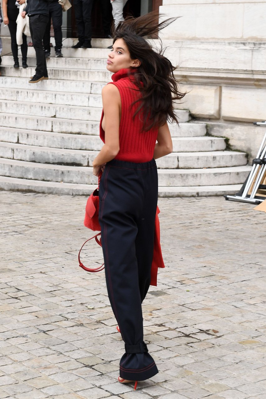 La modella Sara Sampaio arriva alla sfilata Balmain Primavera/Estate 2018 durante la Paris Fashion Week a Parigi, Francia, 28/09/2017.