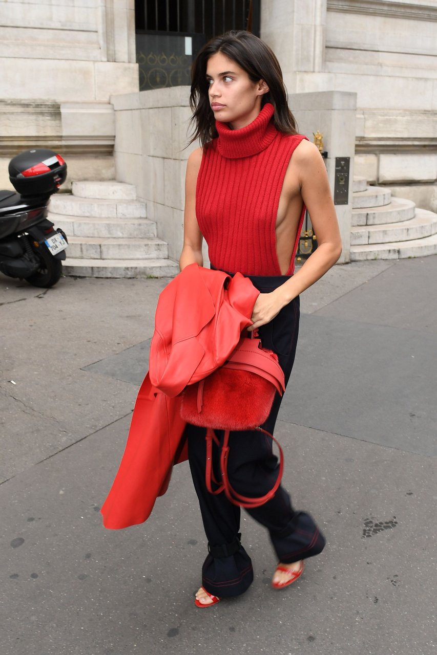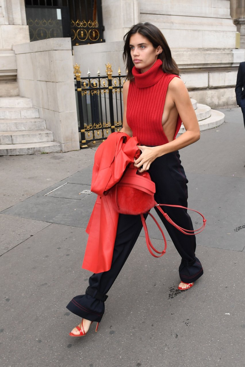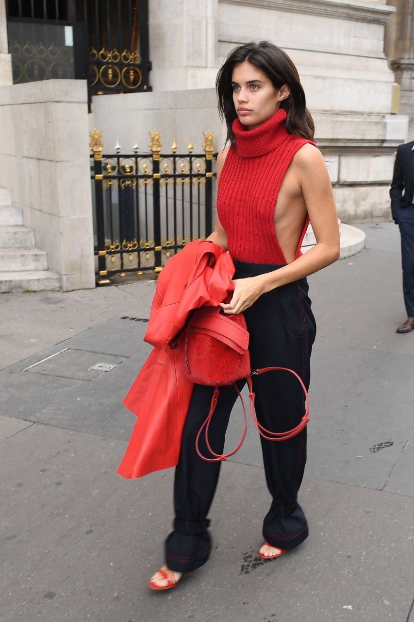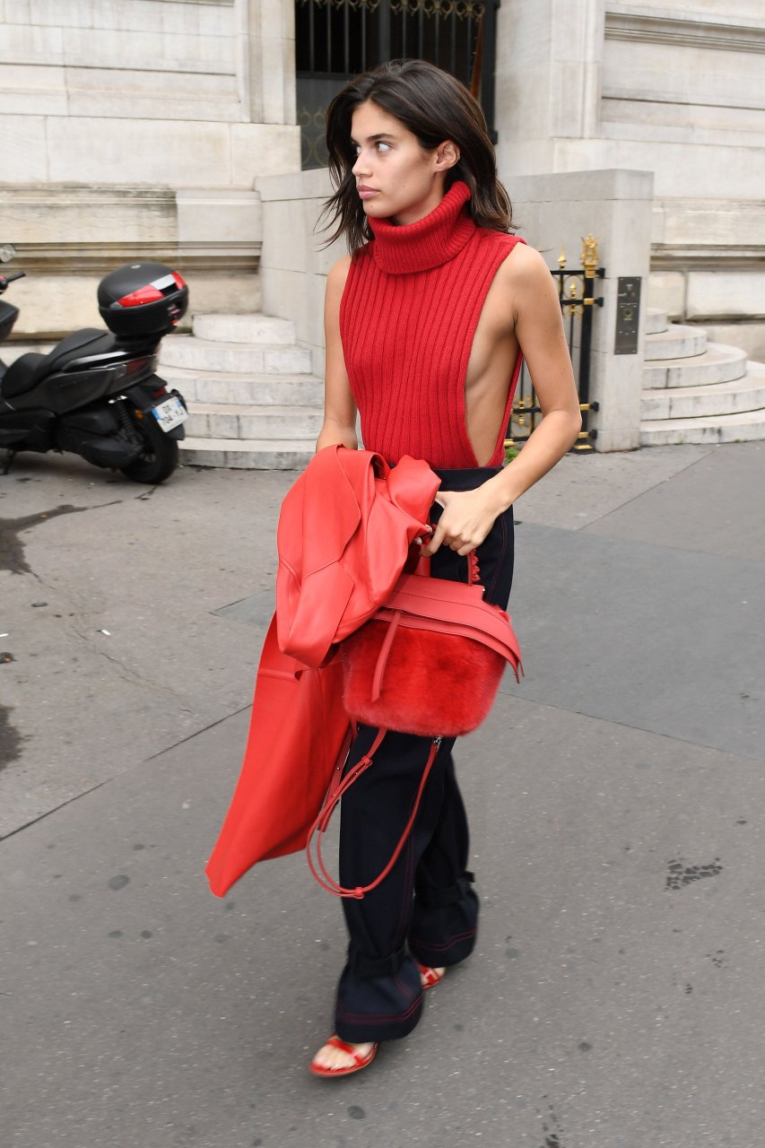 La modella Sara Sampaio arriva alla sfilata Balmain Primavera/Estate 2018 durante la Paris Fashion Week a Parigi, Francia, 28/09/2017.