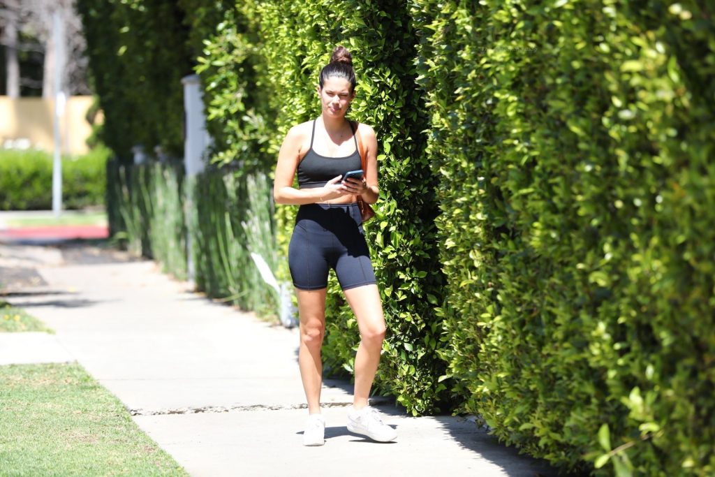 La modella Sara Sampaio indossa il suo solito abbigliamento da allenamento mentre esce da una sessione di Pilates questo pomeriggio.