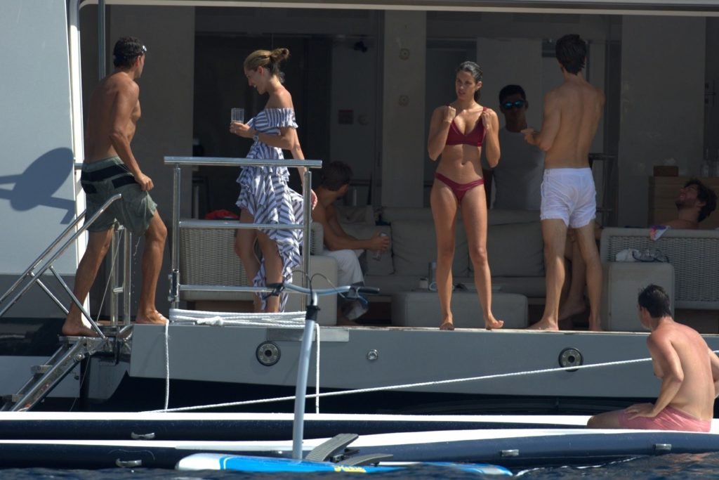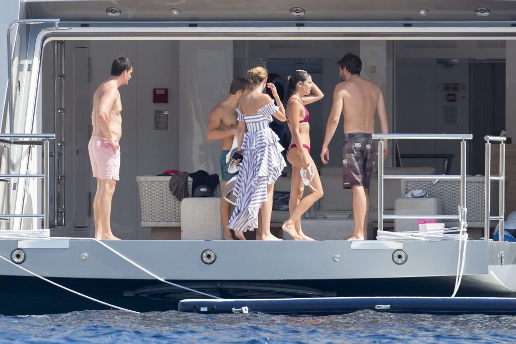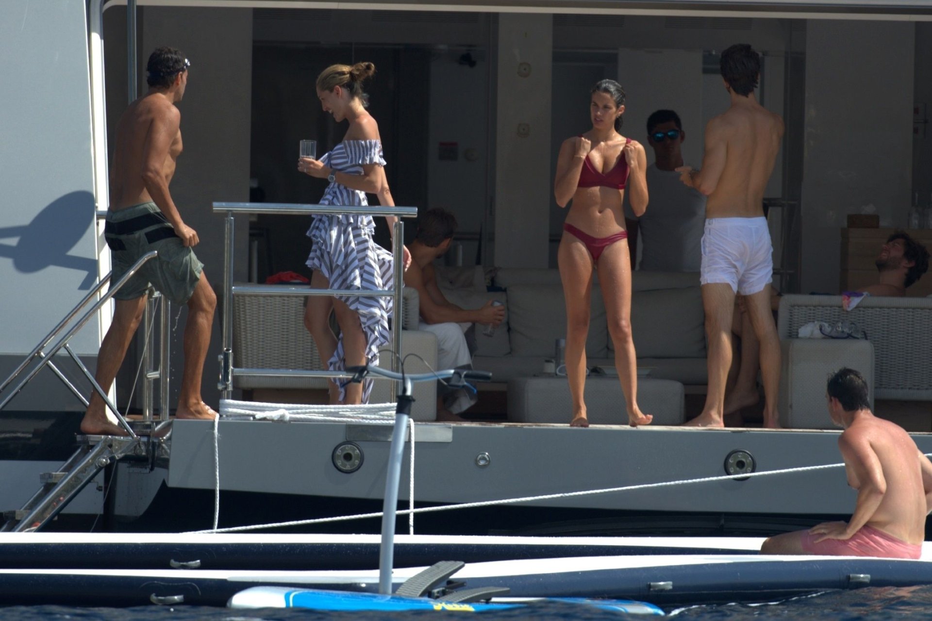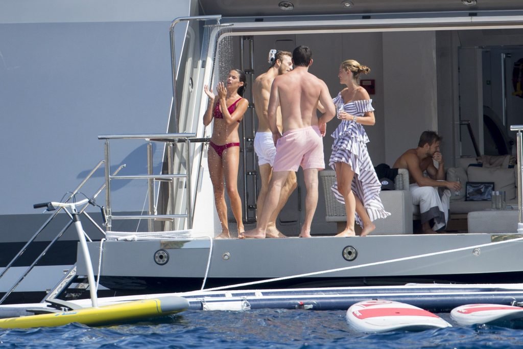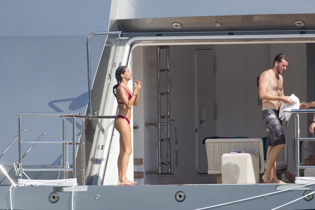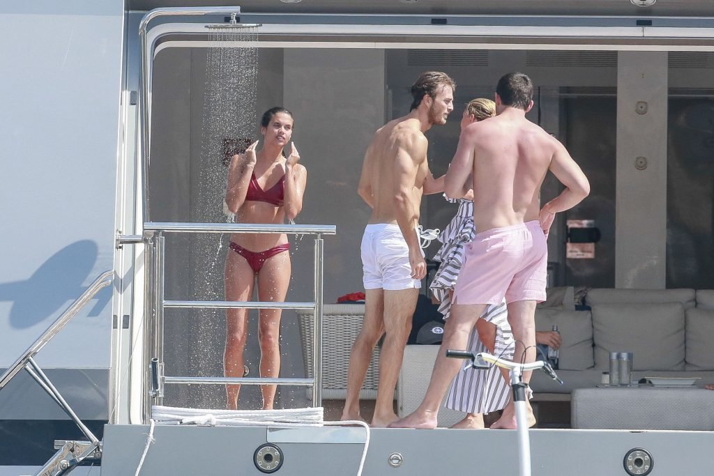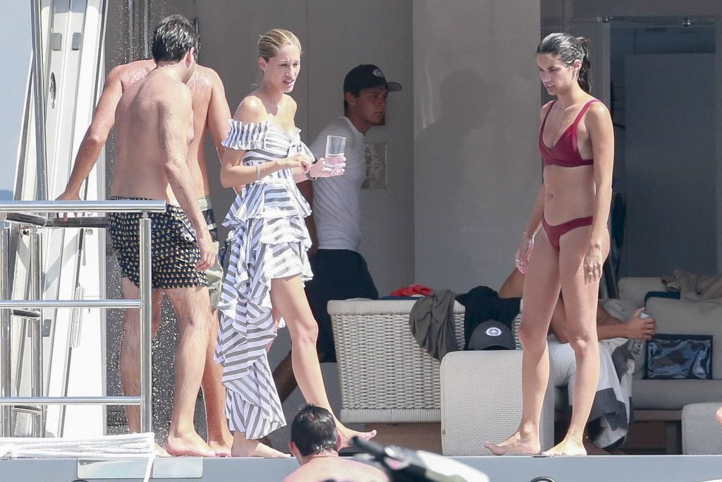 Sara Sampaio si gode un tuffo a bordo di uno yacht con amici a Ibiza, 08/06/2017. Sara Sampaio è una supermodella e attrice portoghese (Billions). Età – 25.