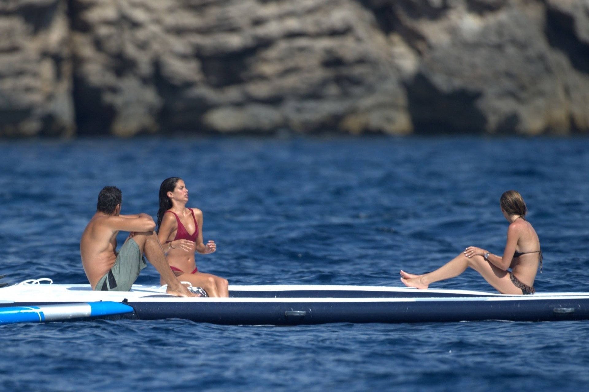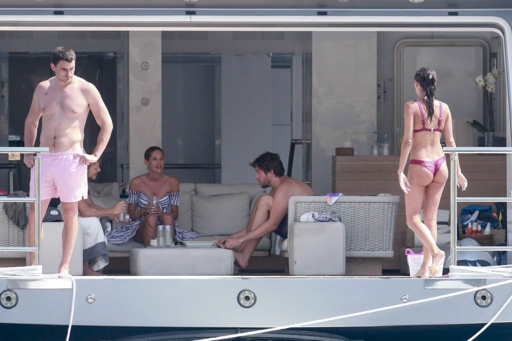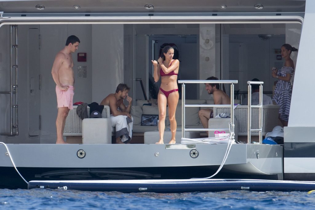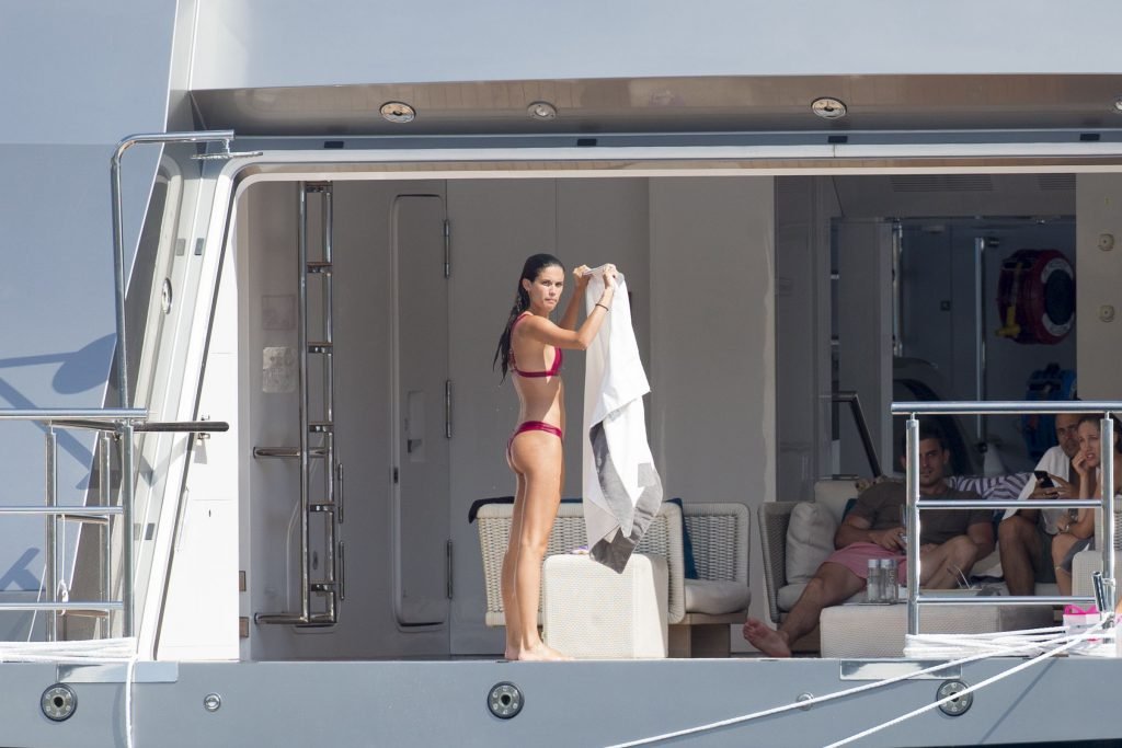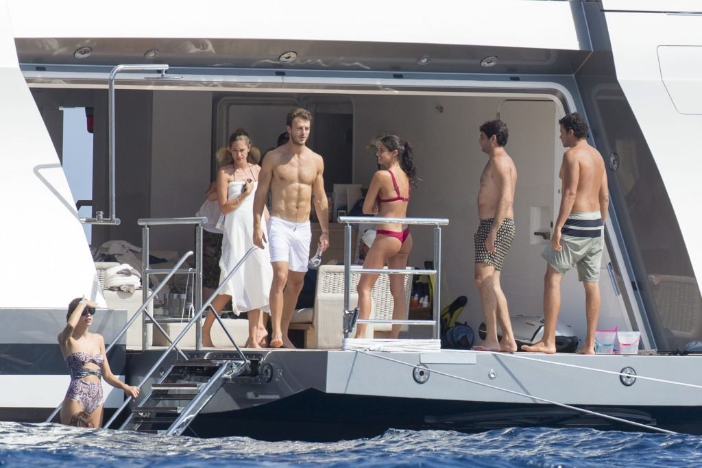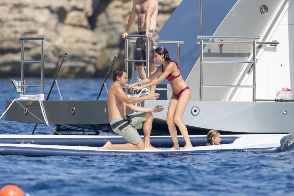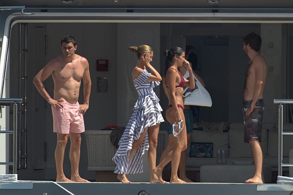 Sara Sampaio si gode un tuffo a bordo di uno yacht con amici a Ibiza, 08/06/2017. Sara Sampaio è una supermodella e attrice portoghese (Billions). Età – 25.