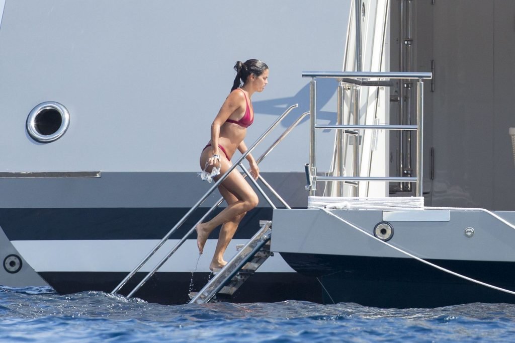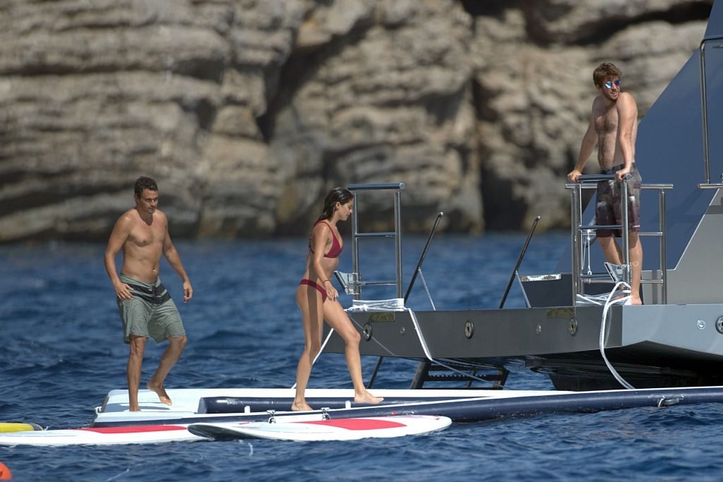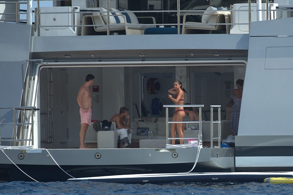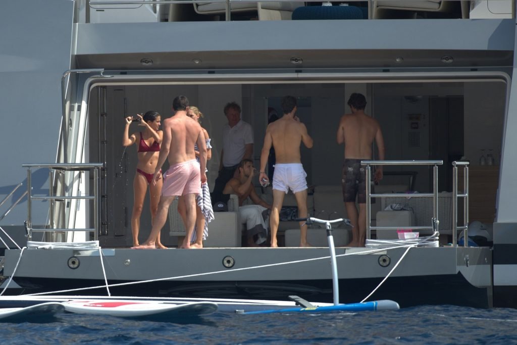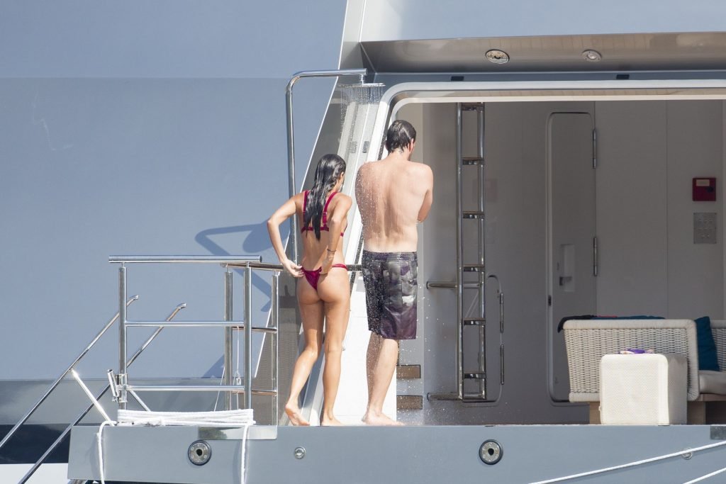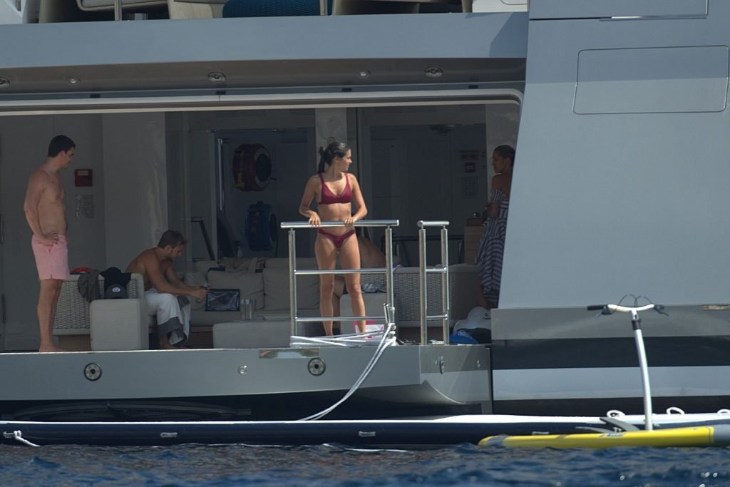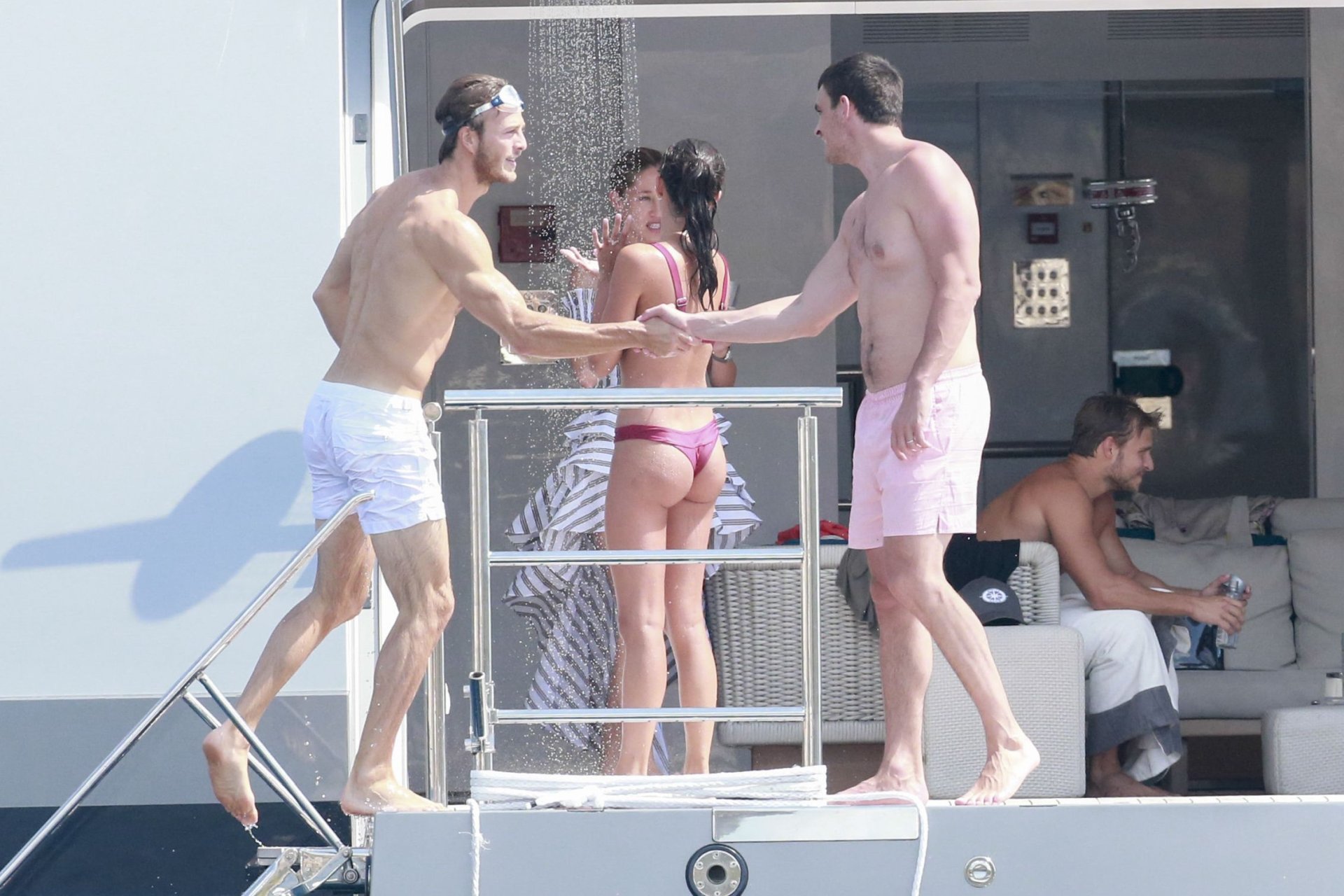 Sara Sampaio si gode un tuffo a bordo di uno yacht con amici a Ibiza, 08/06/2017. Sara Sampaio è una supermodella e attrice portoghese (Billions). Età – 25.
