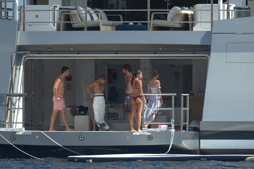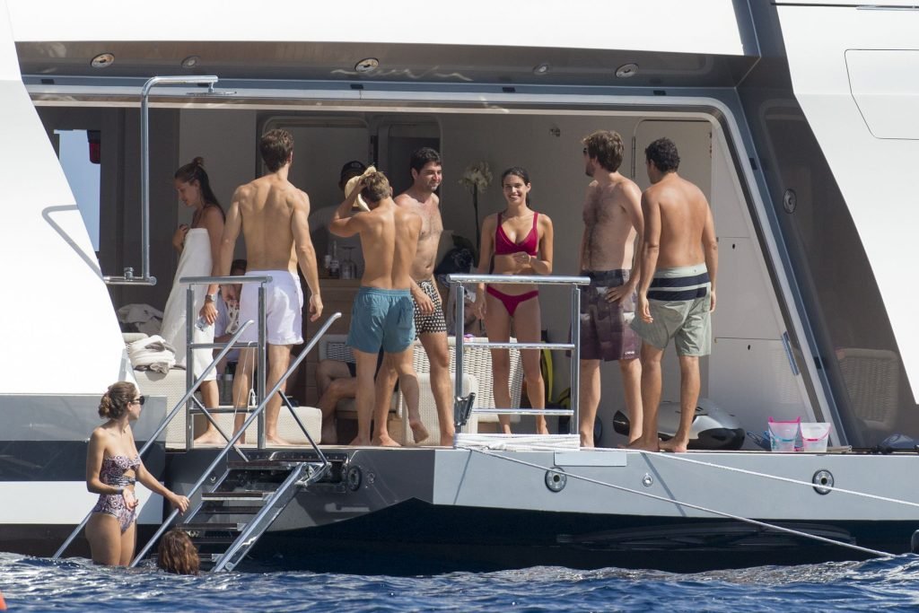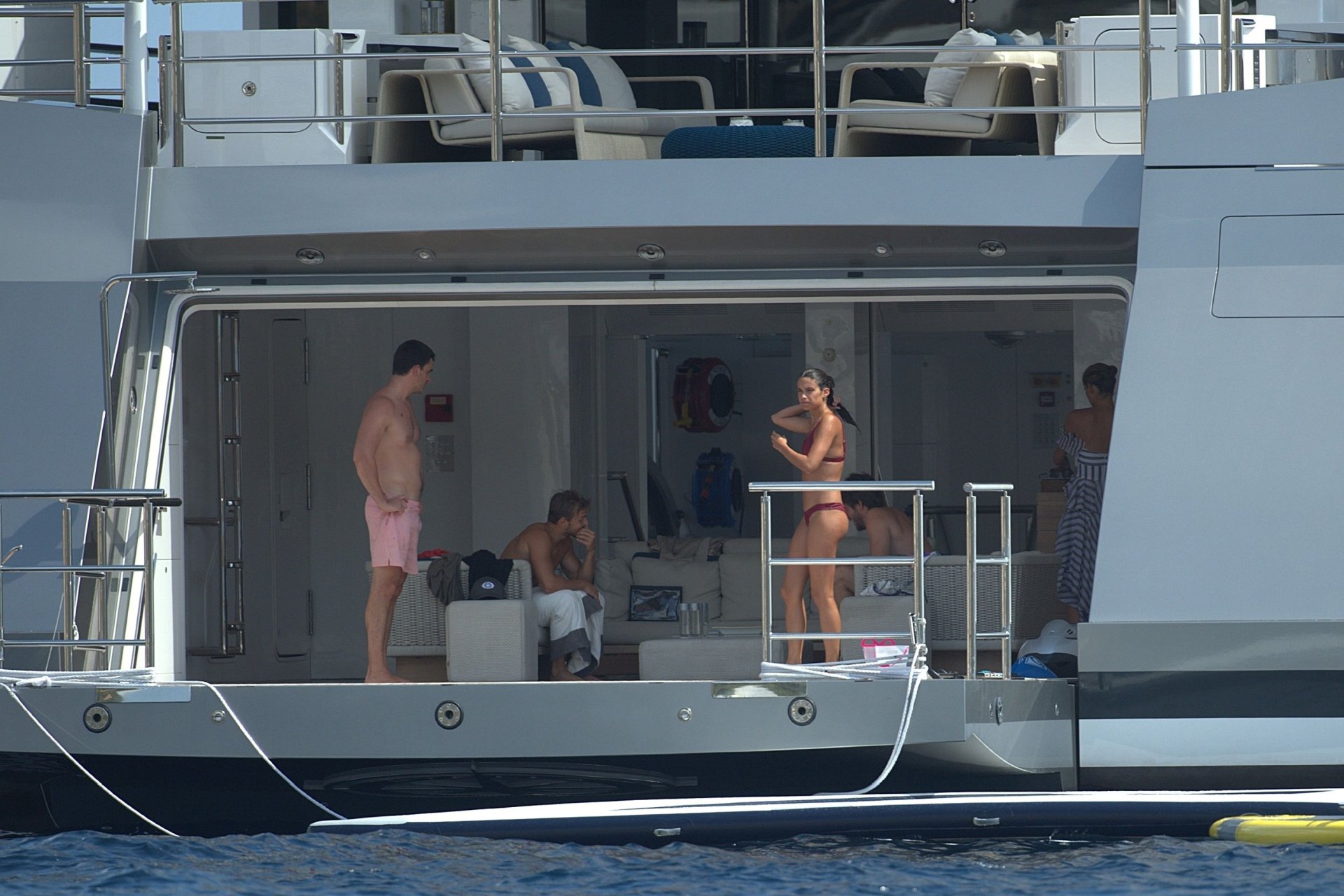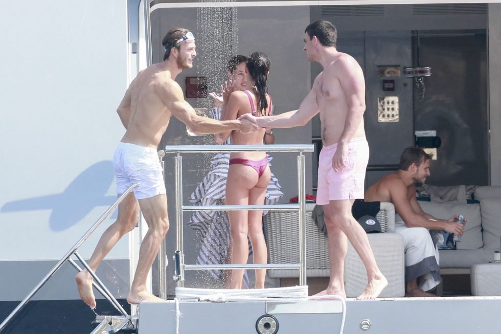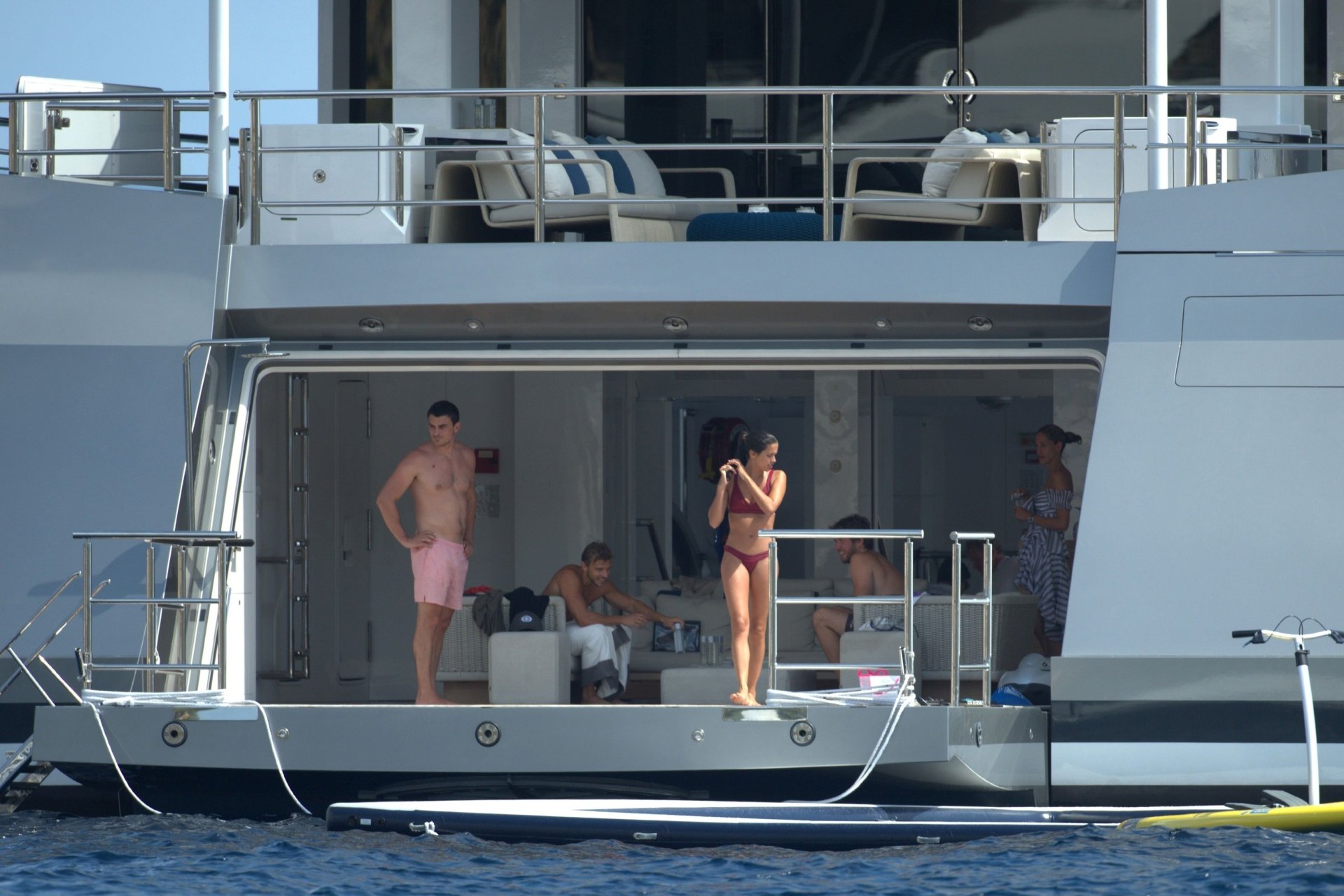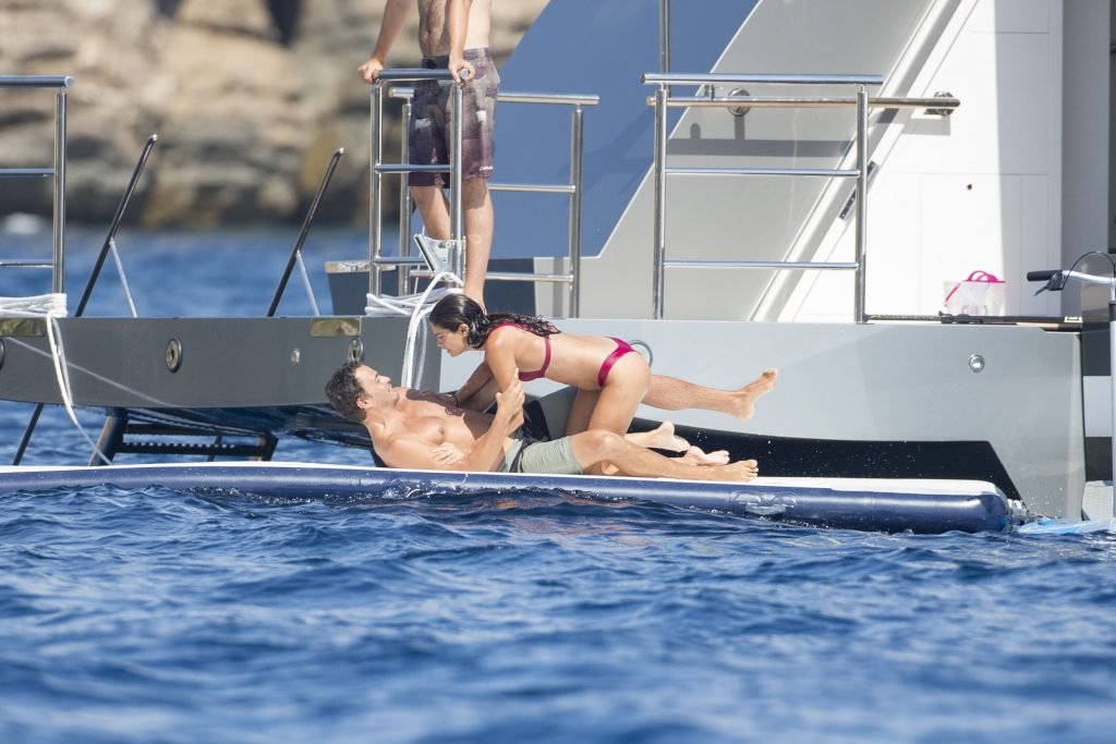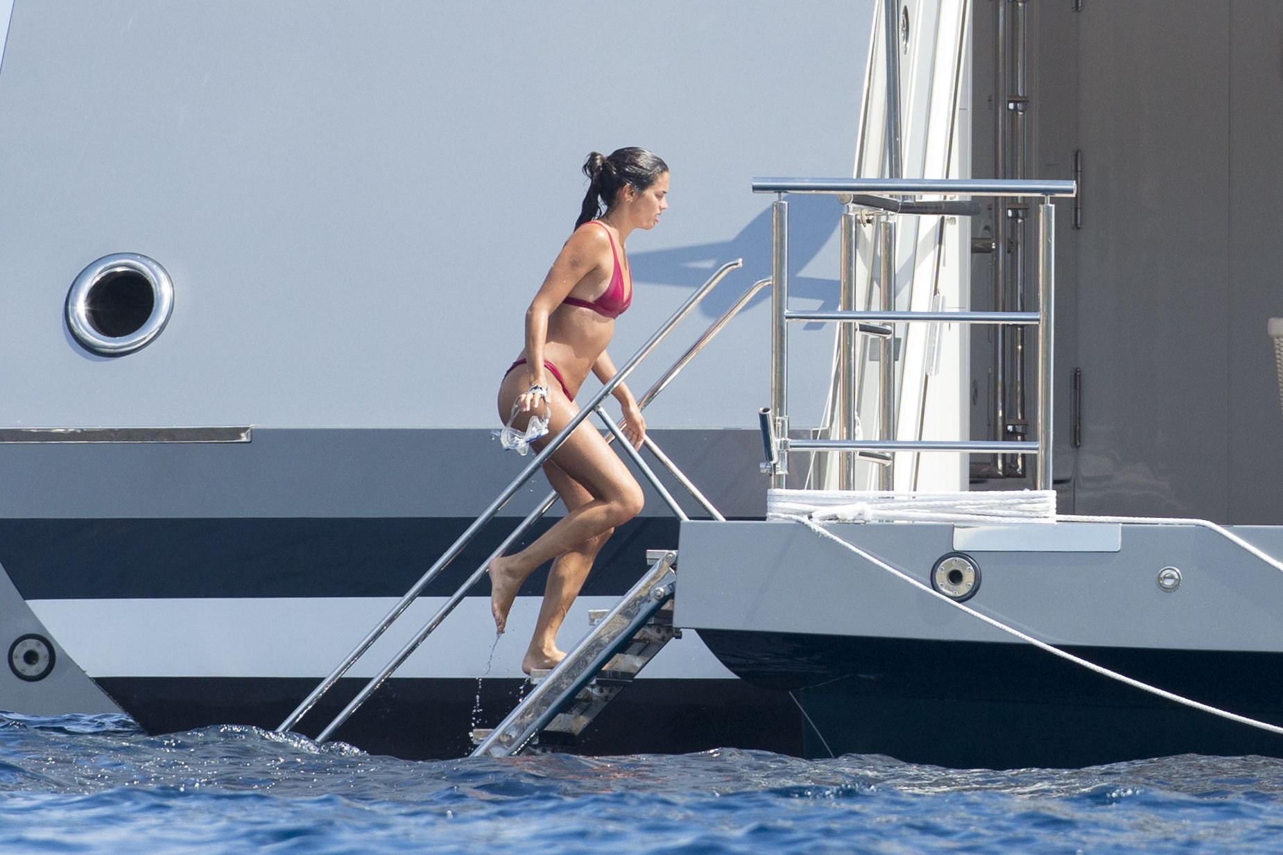 Sara Sampaio si gode un tuffo a bordo di uno yacht con amici a Ibiza, 08/06/2017. Sara Sampaio è una supermodella e attrice portoghese (Billions). Età – 25.