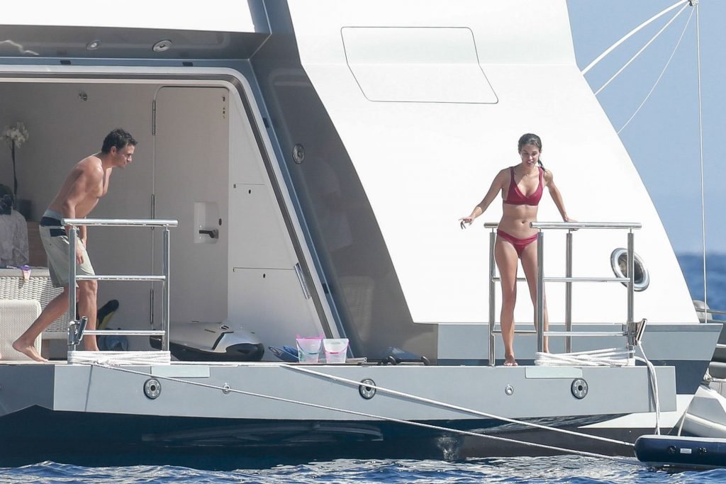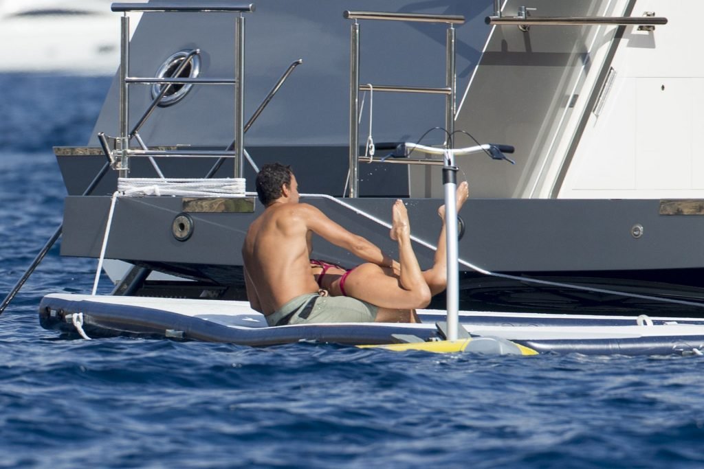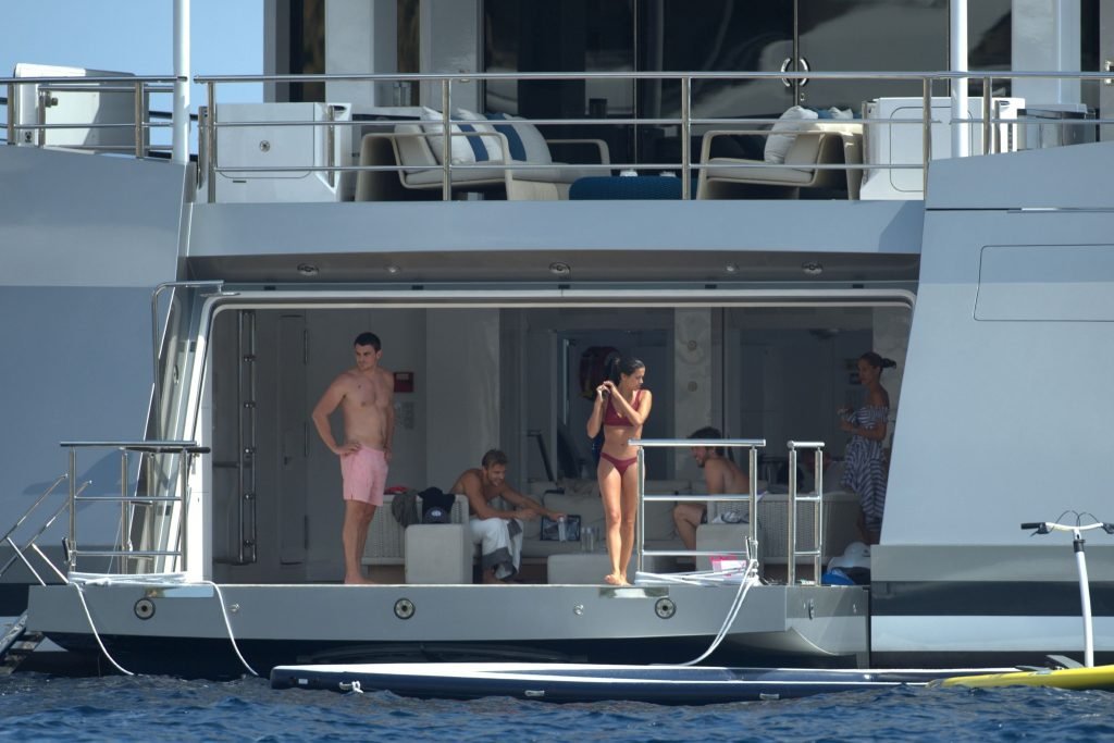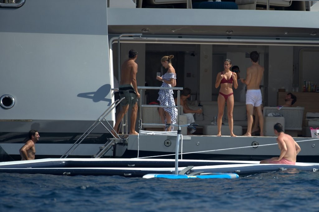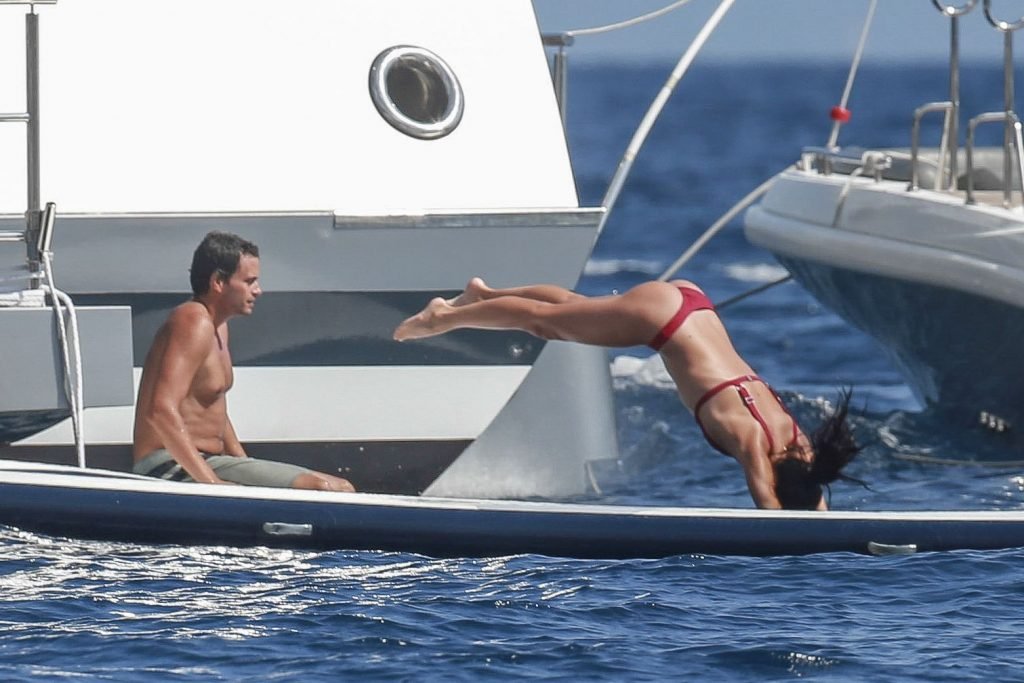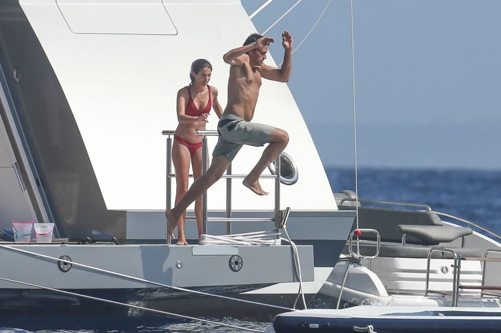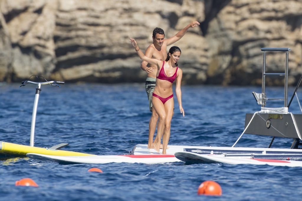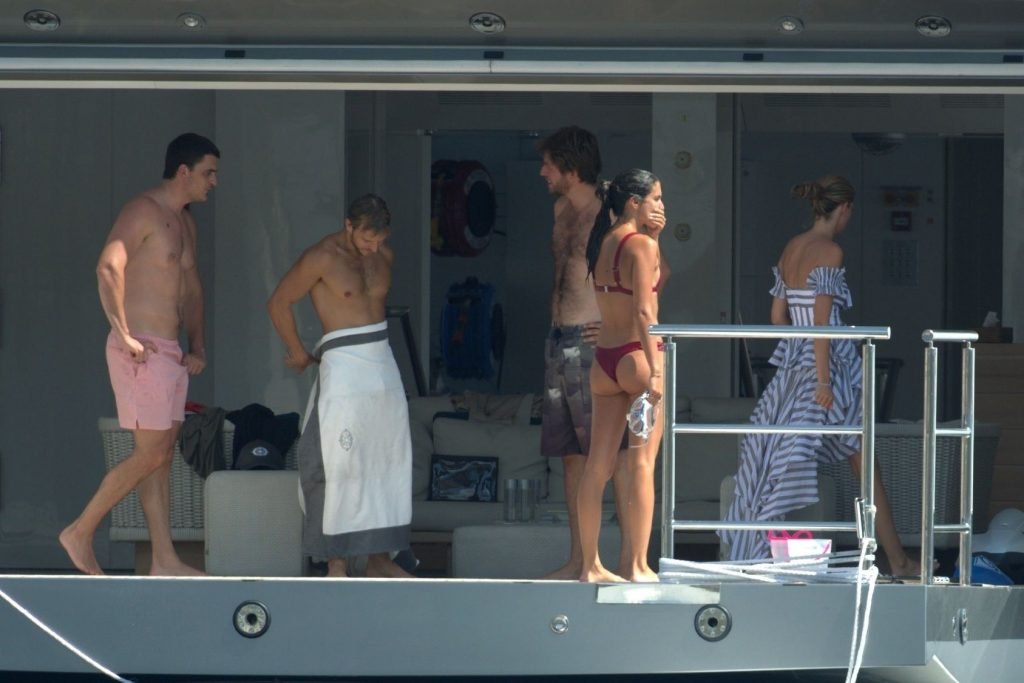 Sara Sampaio si gode un tuffo a bordo di uno yacht con amici a Ibiza, 08/06/2017. Sara Sampaio è una supermodella e attrice portoghese (Billions). Età – 25.