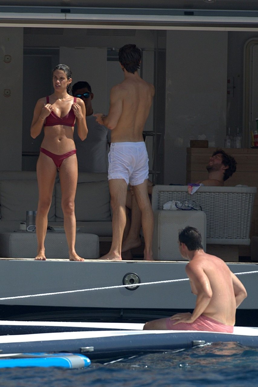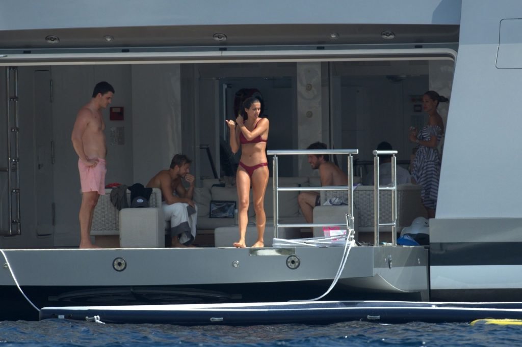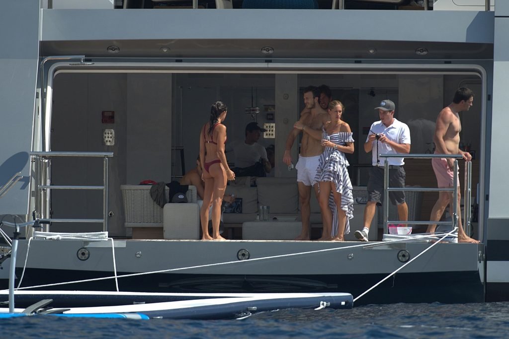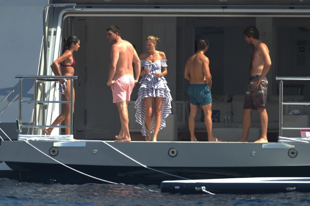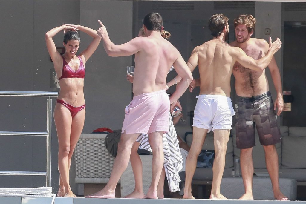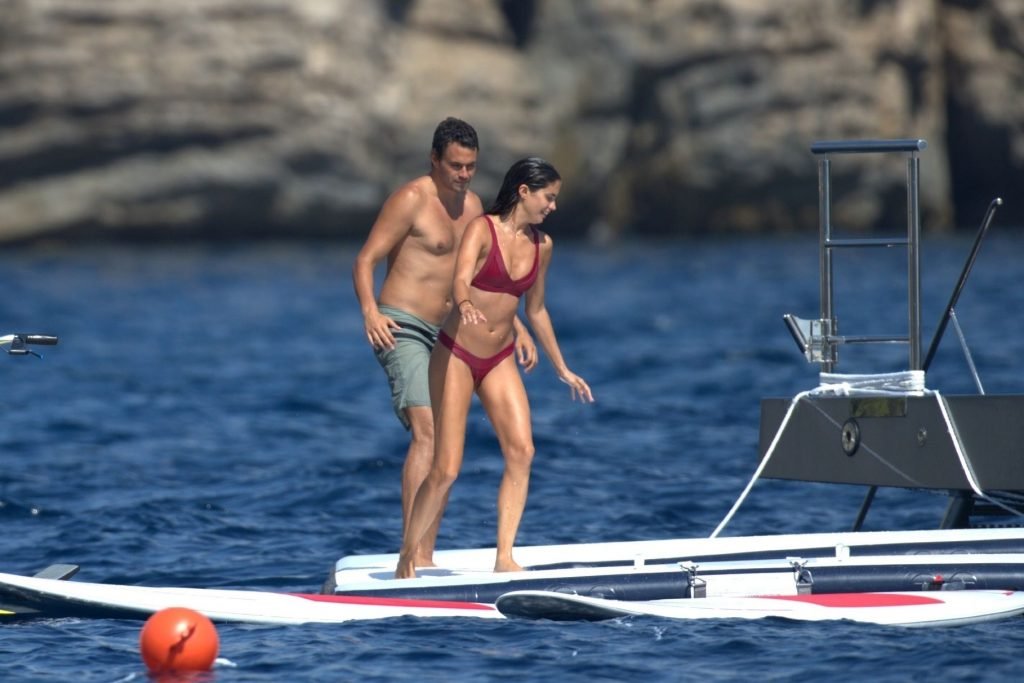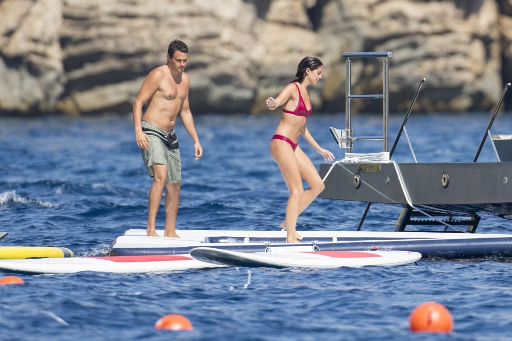 Sara Sampaio si gode un tuffo a bordo di uno yacht con amici a Ibiza, 08/06/2017. Sara Sampaio è una supermodella e attrice portoghese (Billions). Età – 25.