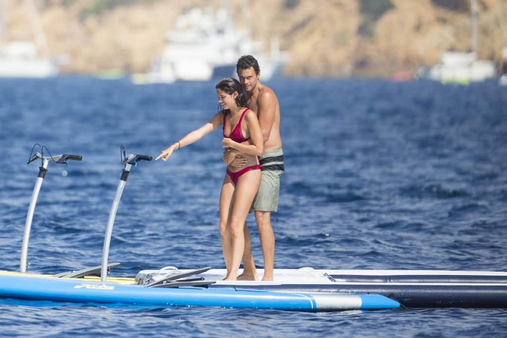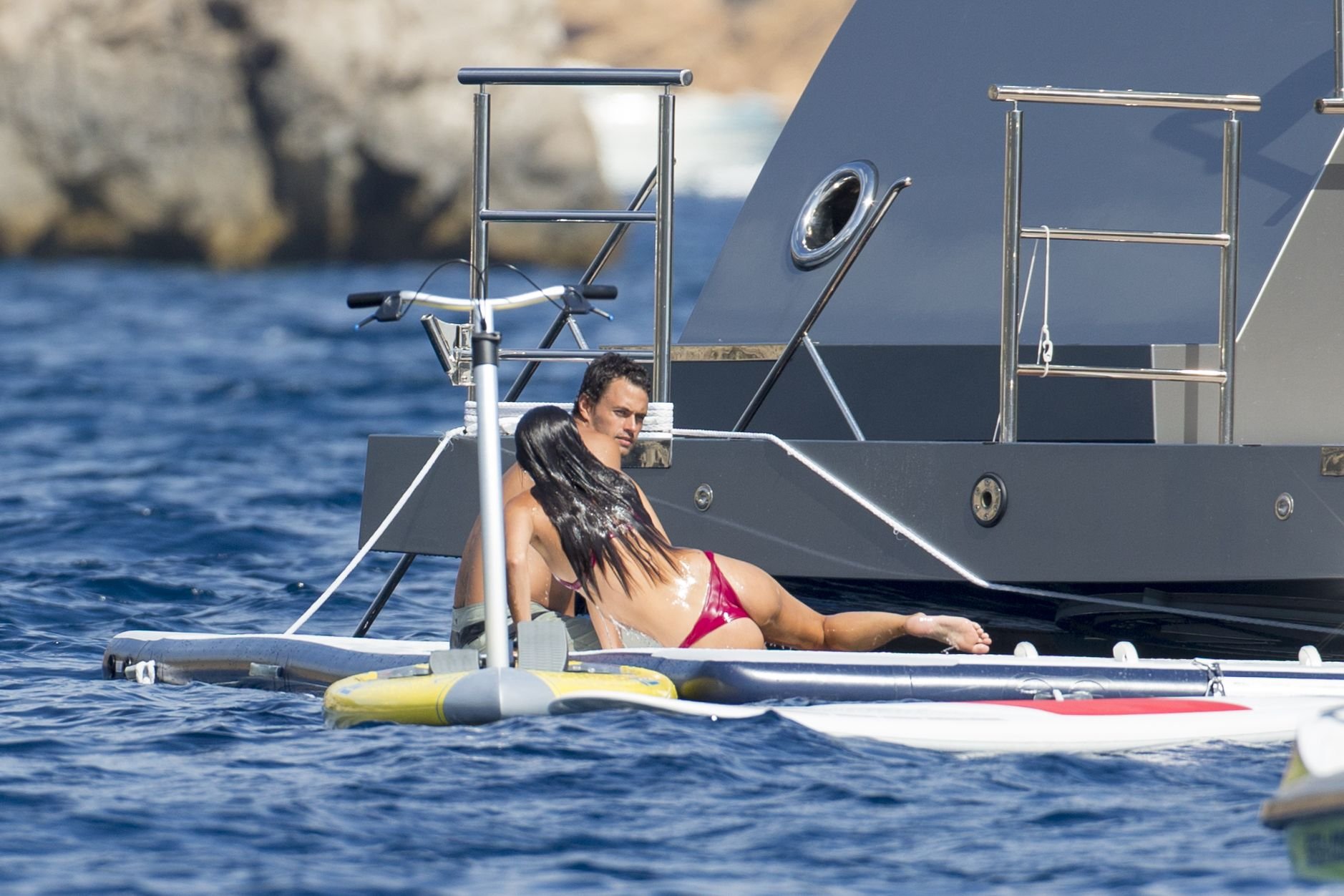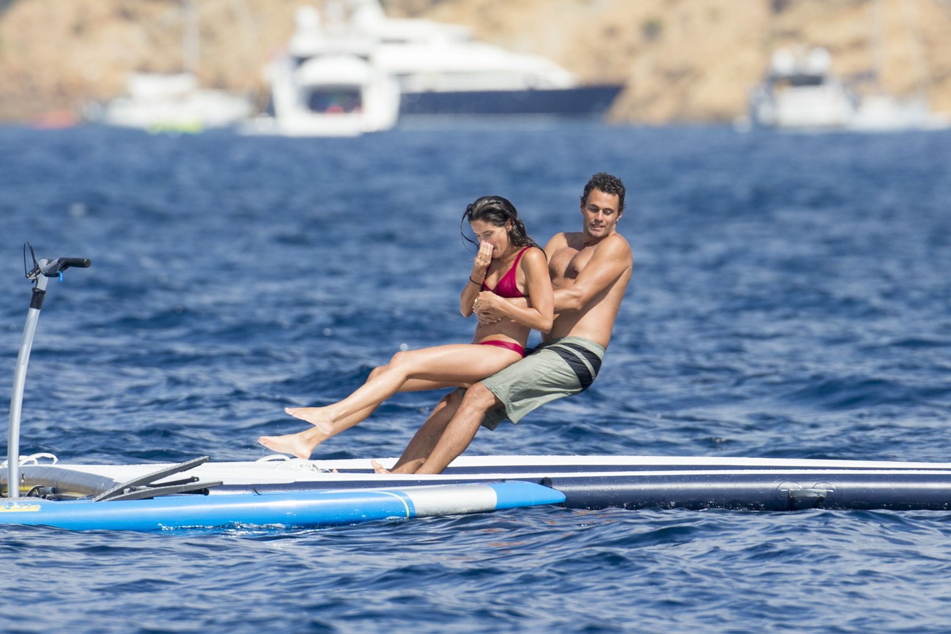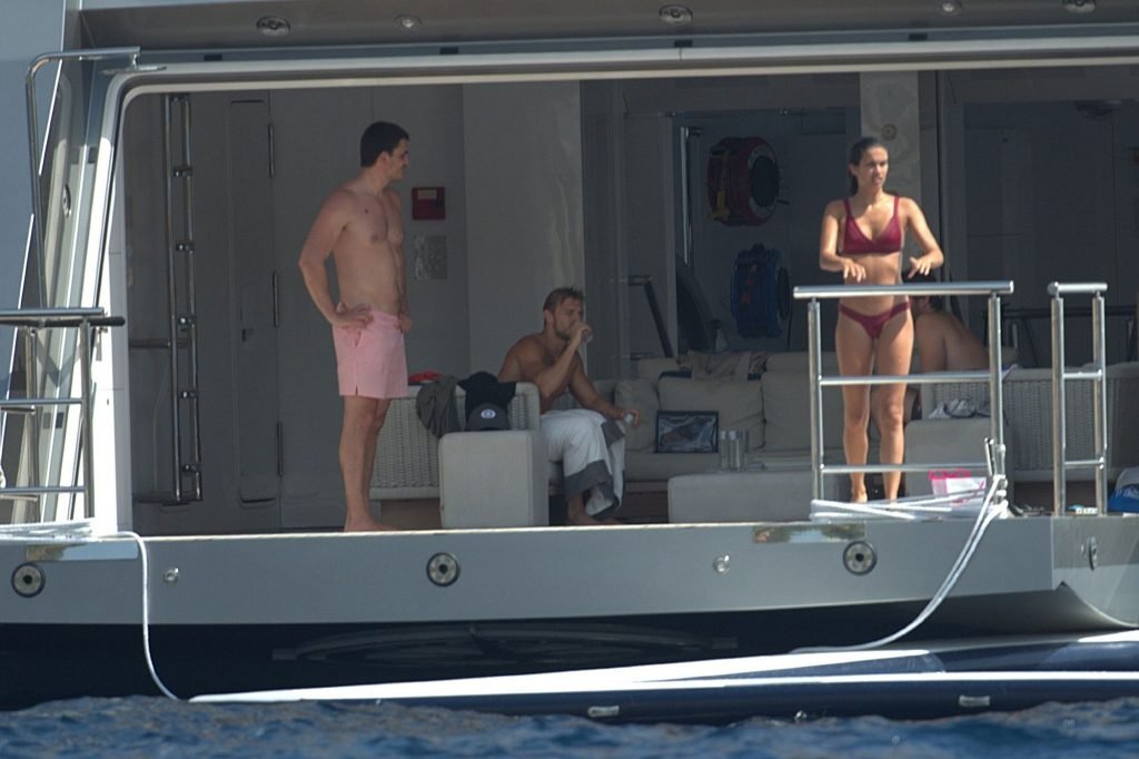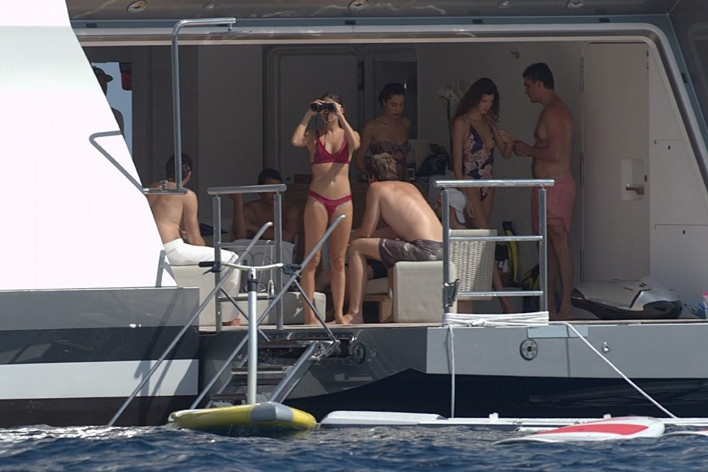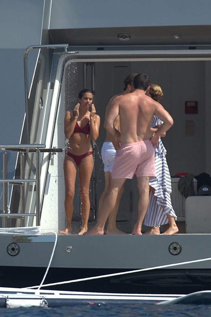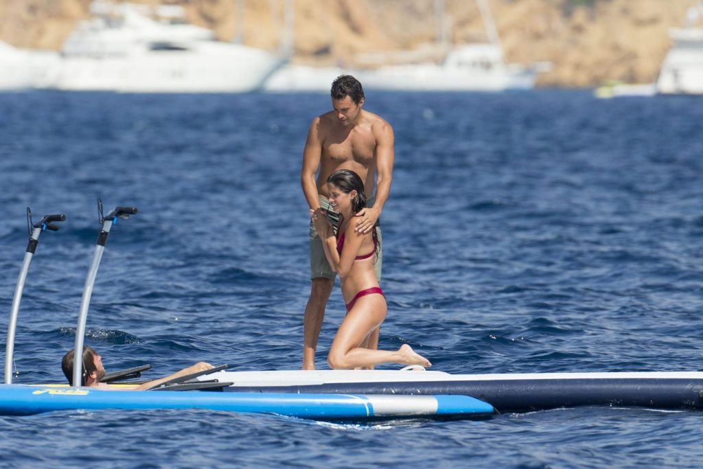 Sara Sampaio si gode un tuffo a bordo di uno yacht con amici a Ibiza, 08/06/2017. Sara Sampaio è una supermodella e attrice portoghese (Billions). Età – 25.