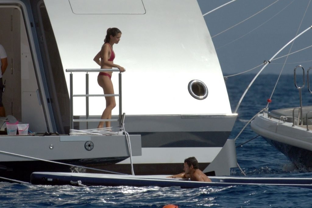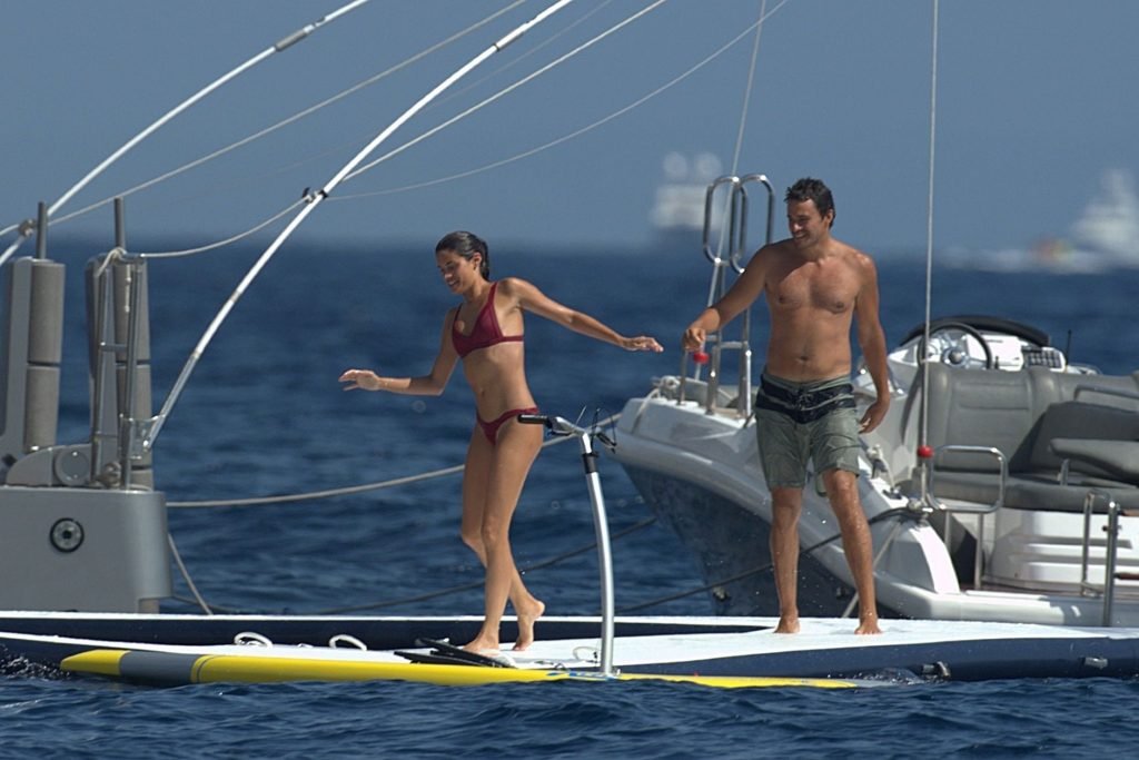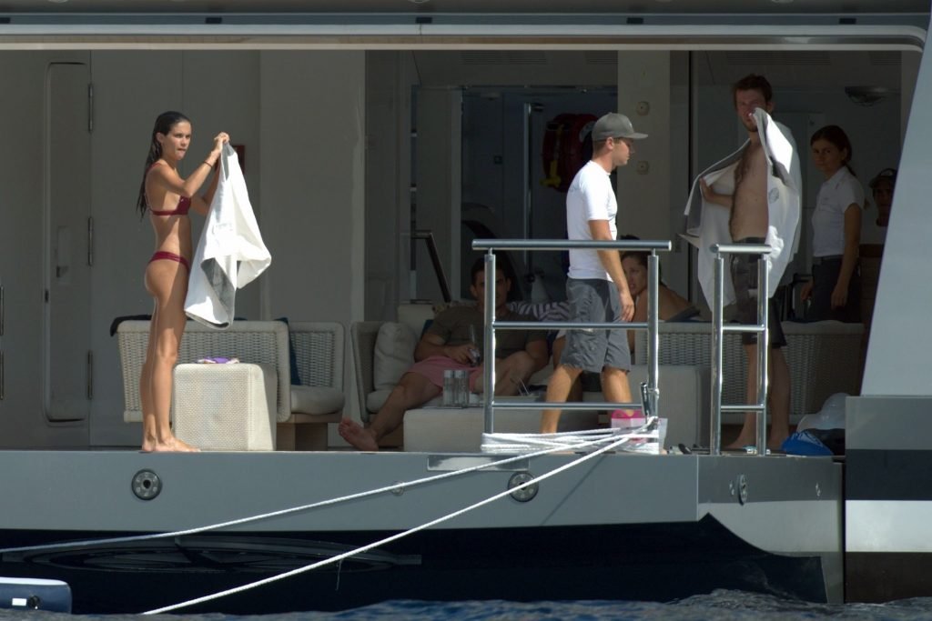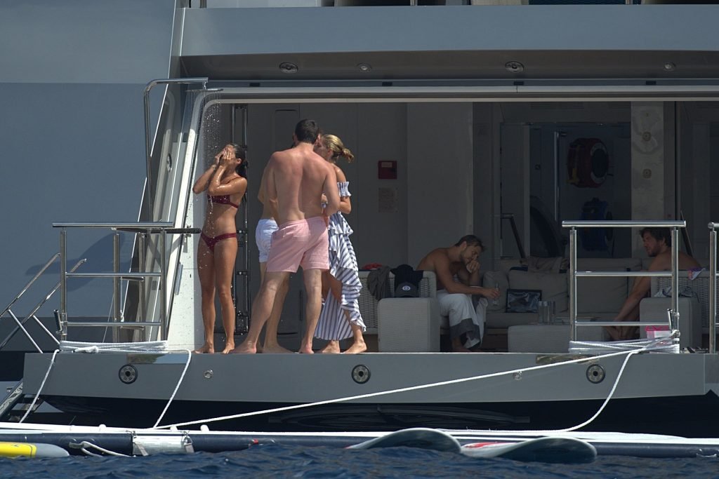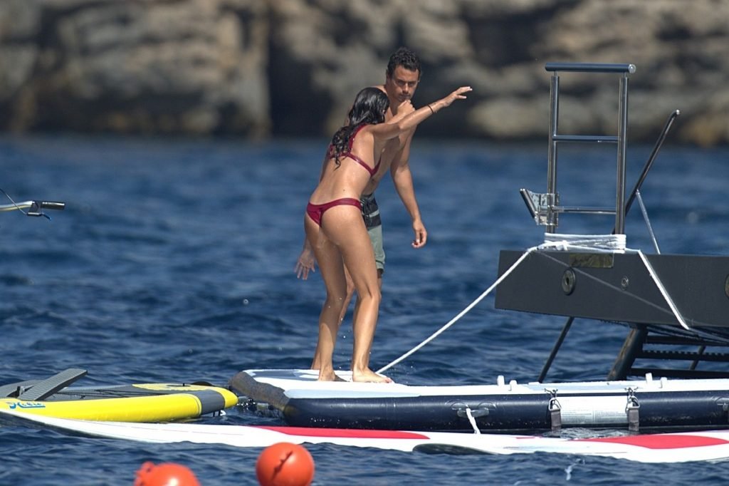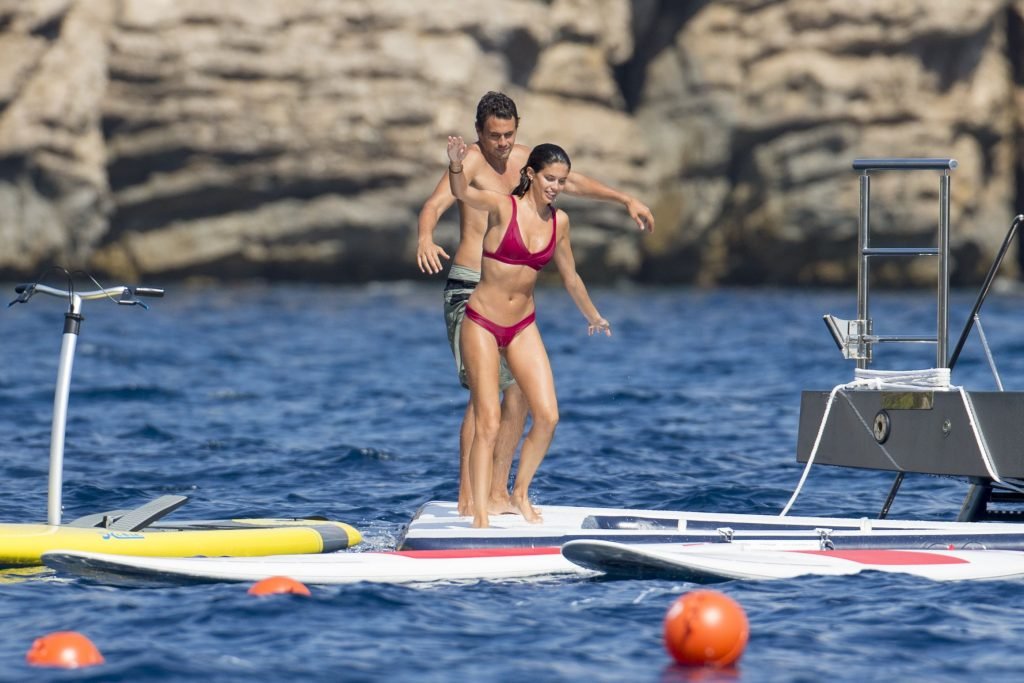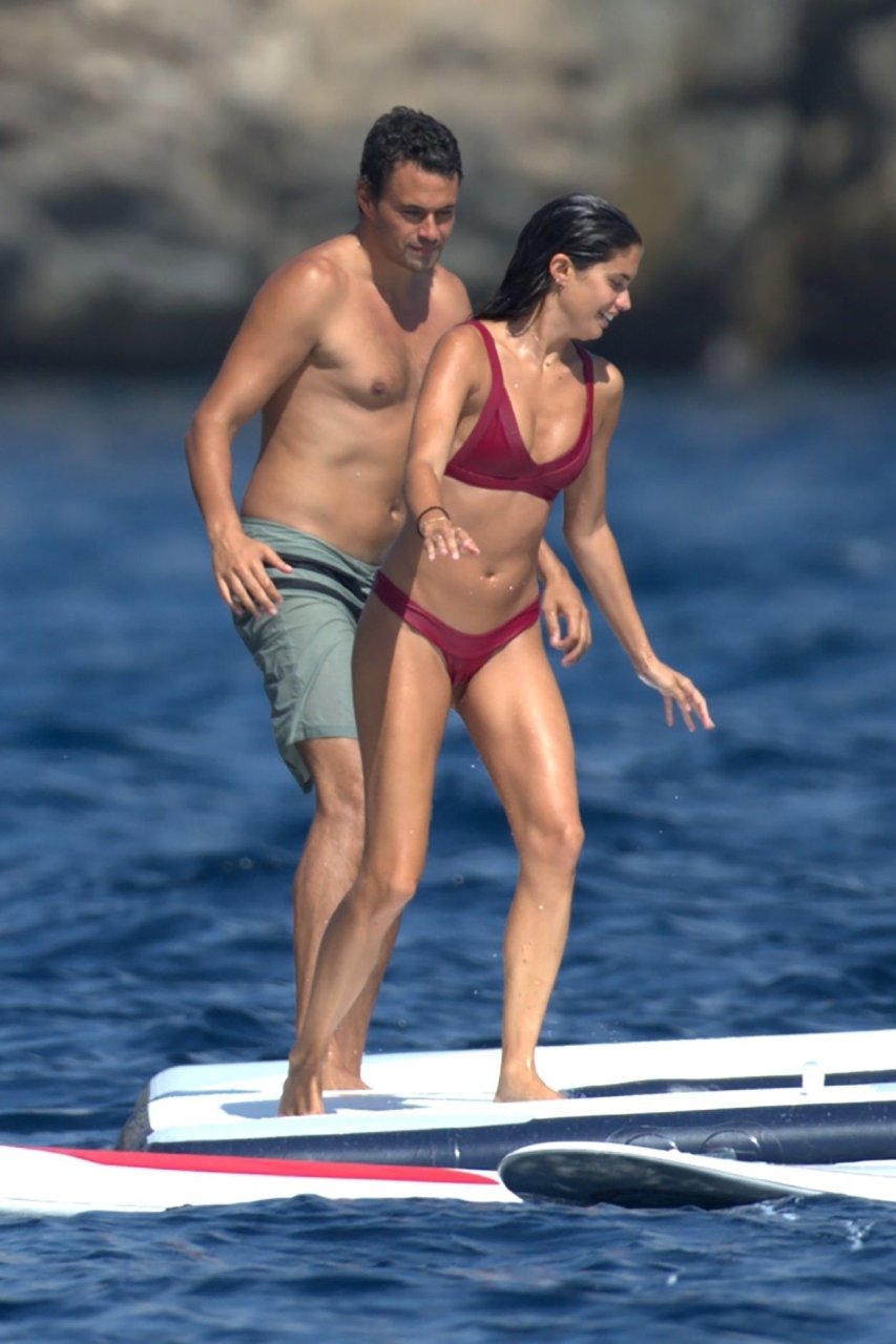 Sara Sampaio si gode un tuffo a bordo di uno yacht con amici a Ibiza, 08/06/2017. Sara Sampaio è una supermodella e attrice portoghese (Billions). Età – 25.