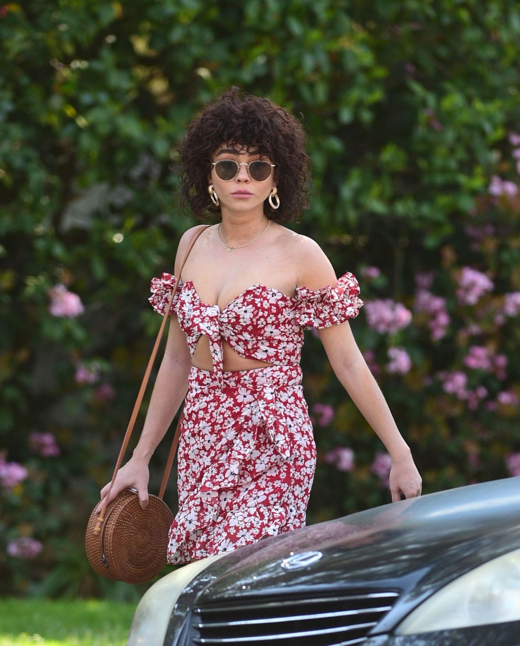 Sarah Hyland è stata fotografata in giro per Los Angeles, 09/04/2019. La star di 28 anni di “Modern Family” e The Fappening indossava un mini abito floreale rosso e bianco, abbinato a tacchi bianchi.