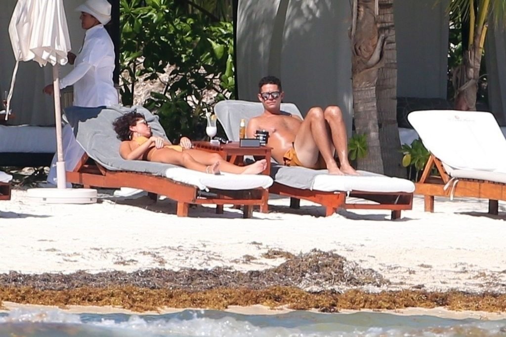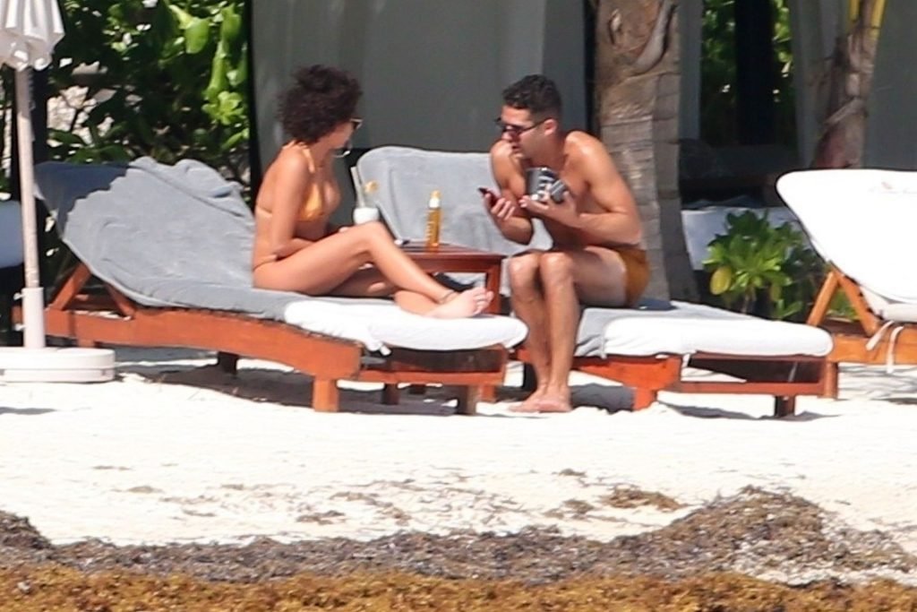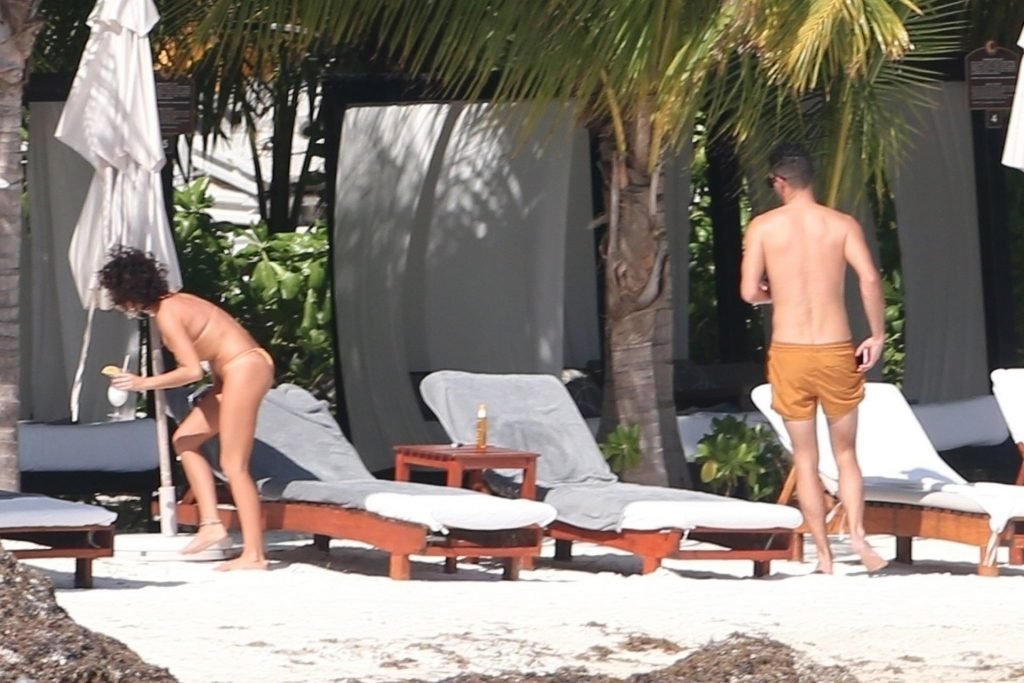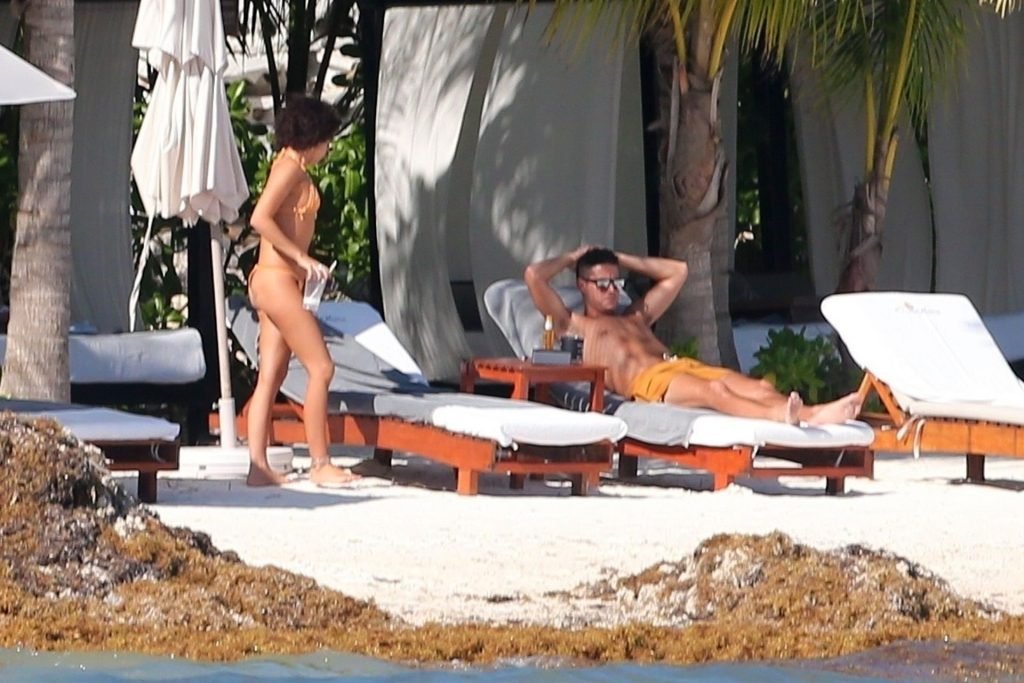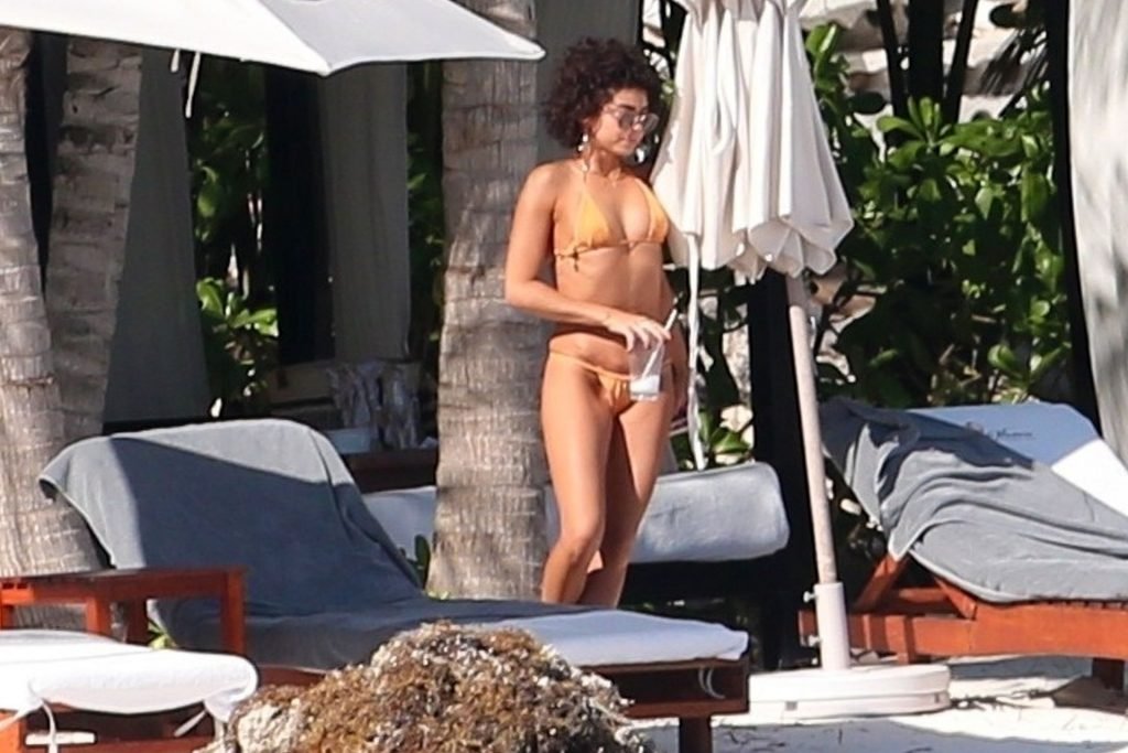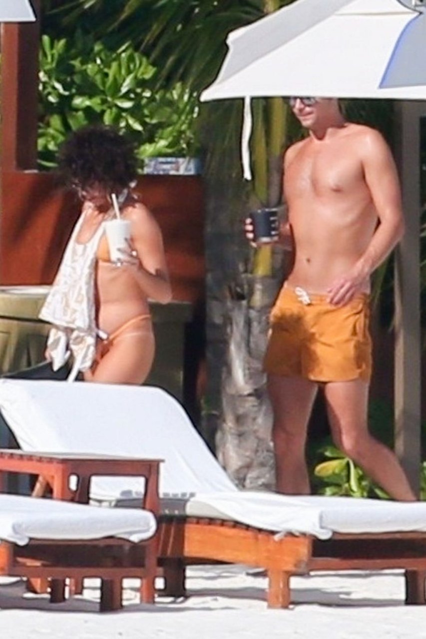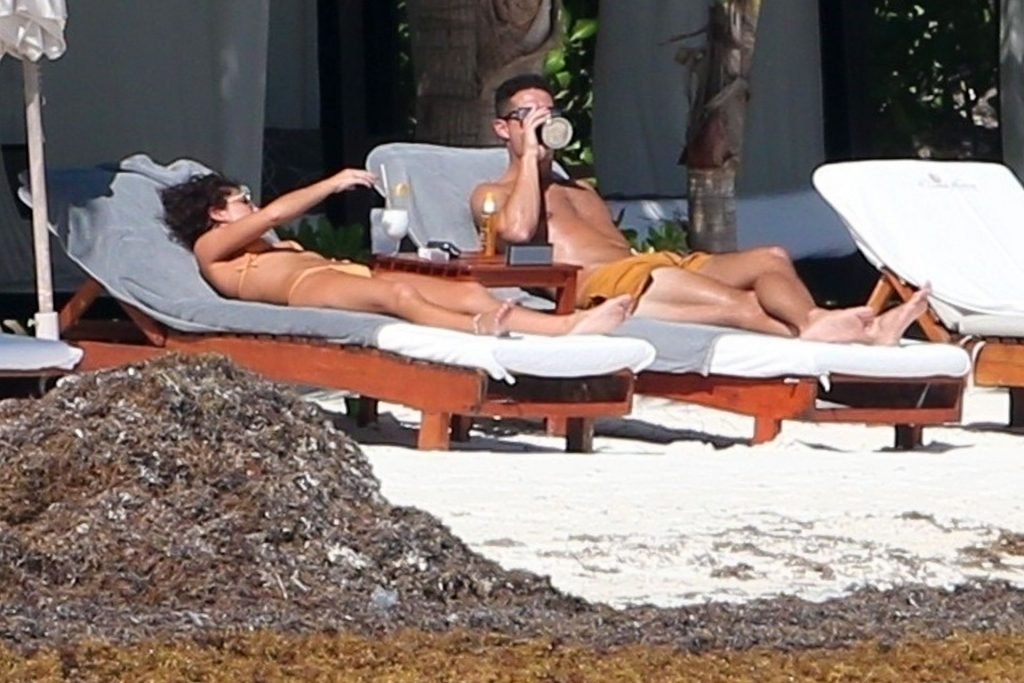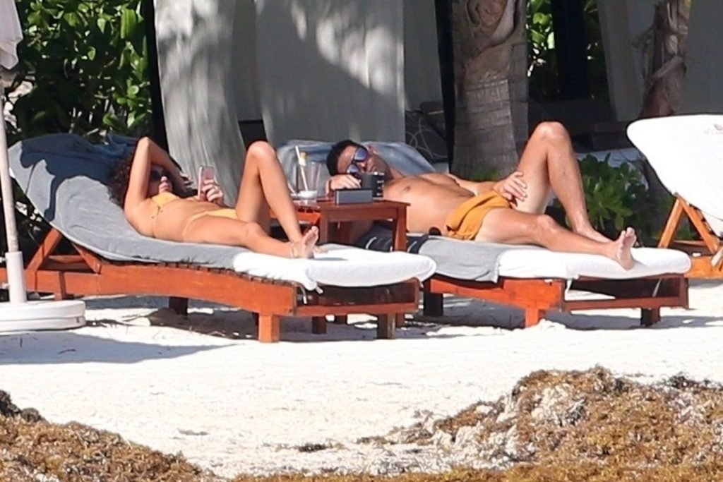 “Modern Family” e la star di The Fappening mostra la sua figura snella in bikini, mentre lei e il suo fidanzato sorseggiano bevande fredde sulla spiaggia del loro hotel insieme, 01/04/2019.