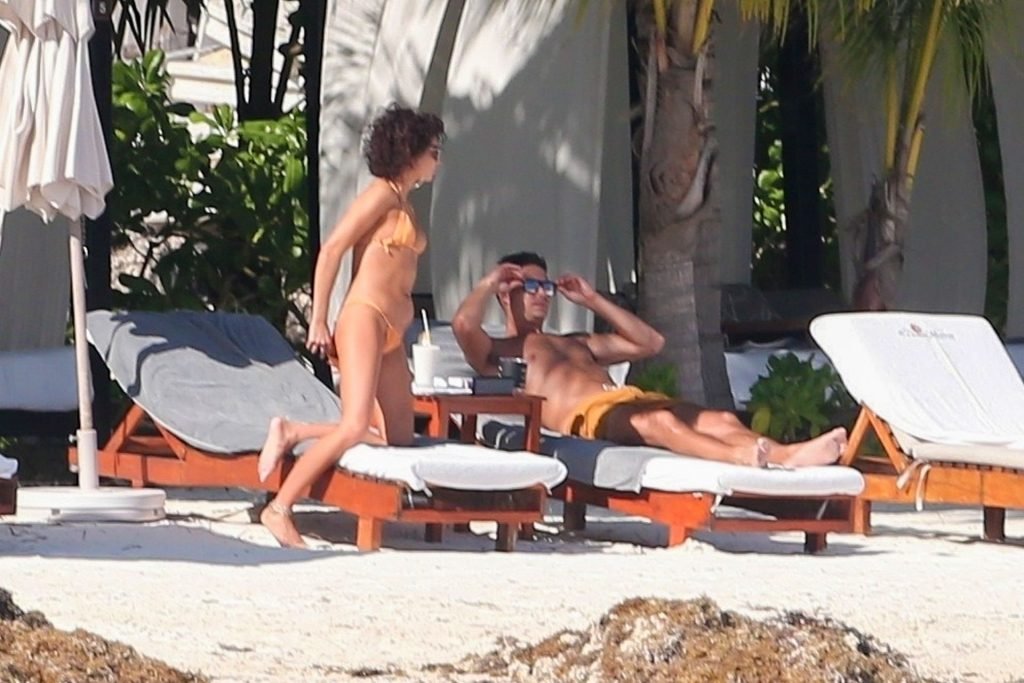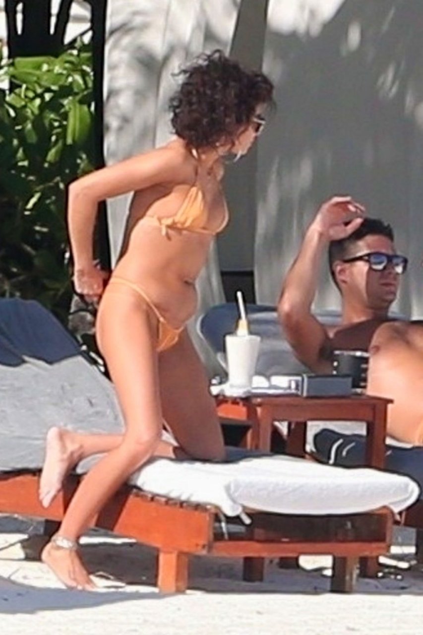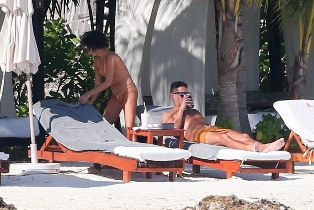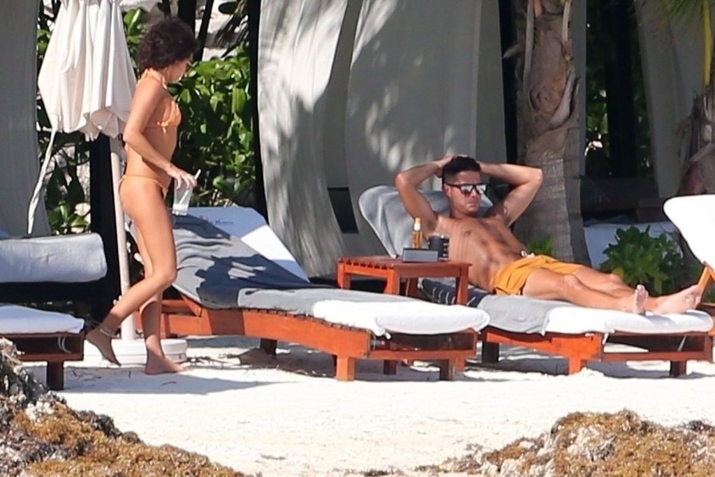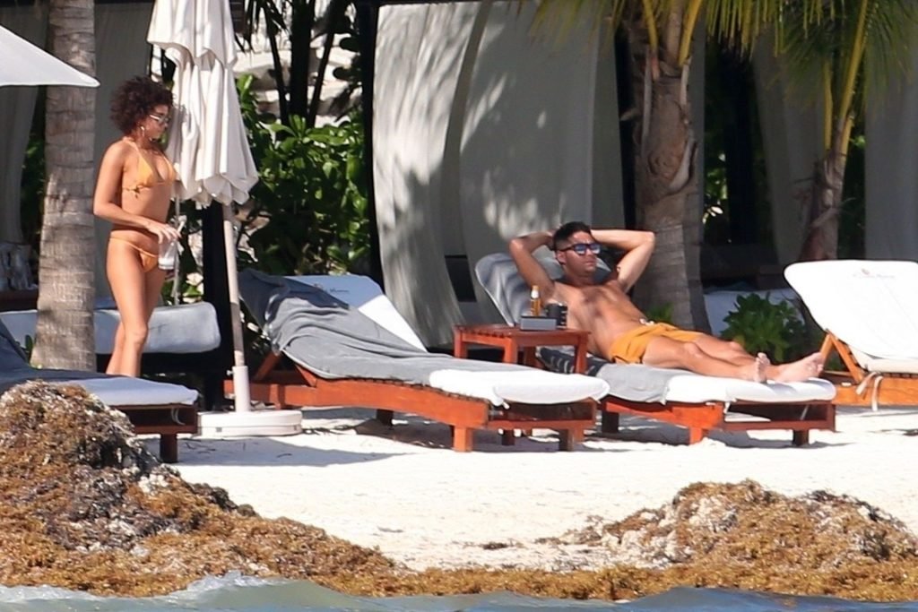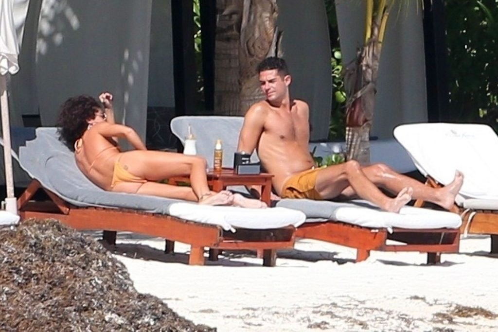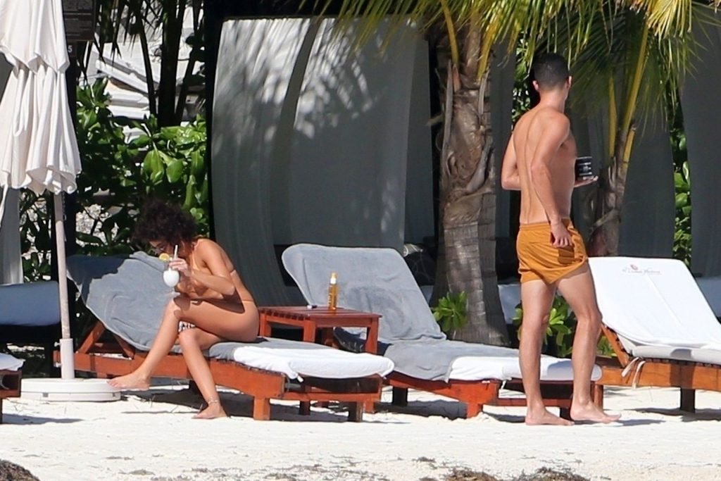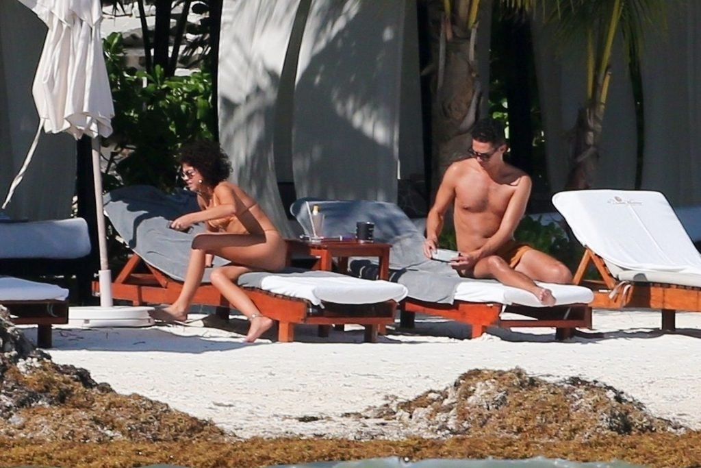 “Modern Family” e la star di The Fappening mostra la sua figura snella in bikini, mentre lei e il suo fidanzato sorseggiano bevande fredde sulla spiaggia del loro hotel insieme, 01/04/2019.