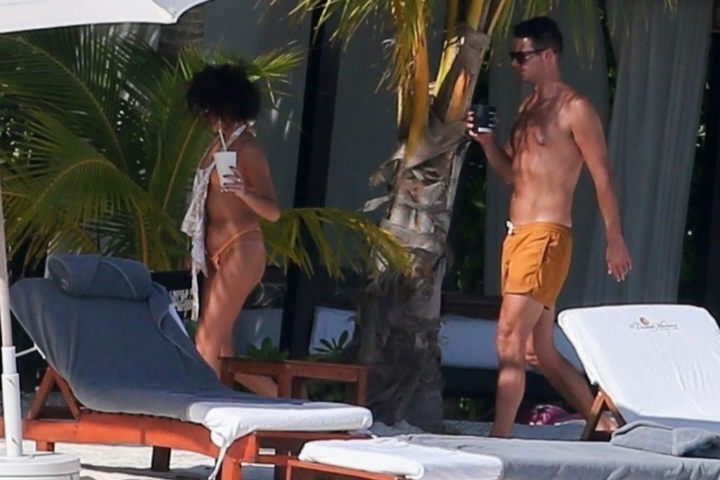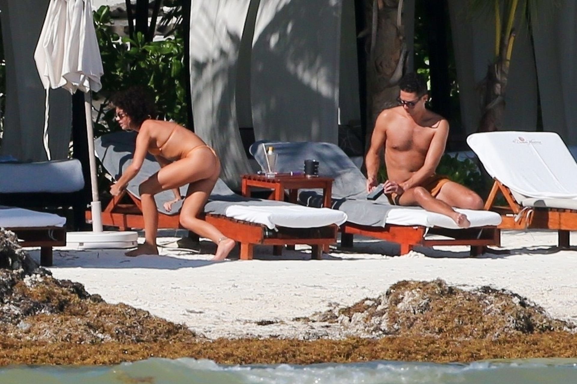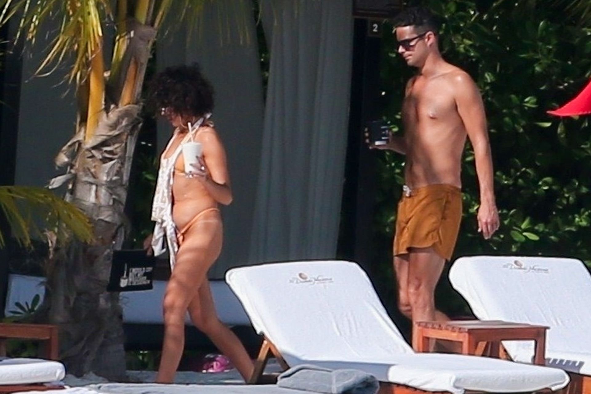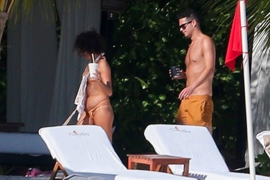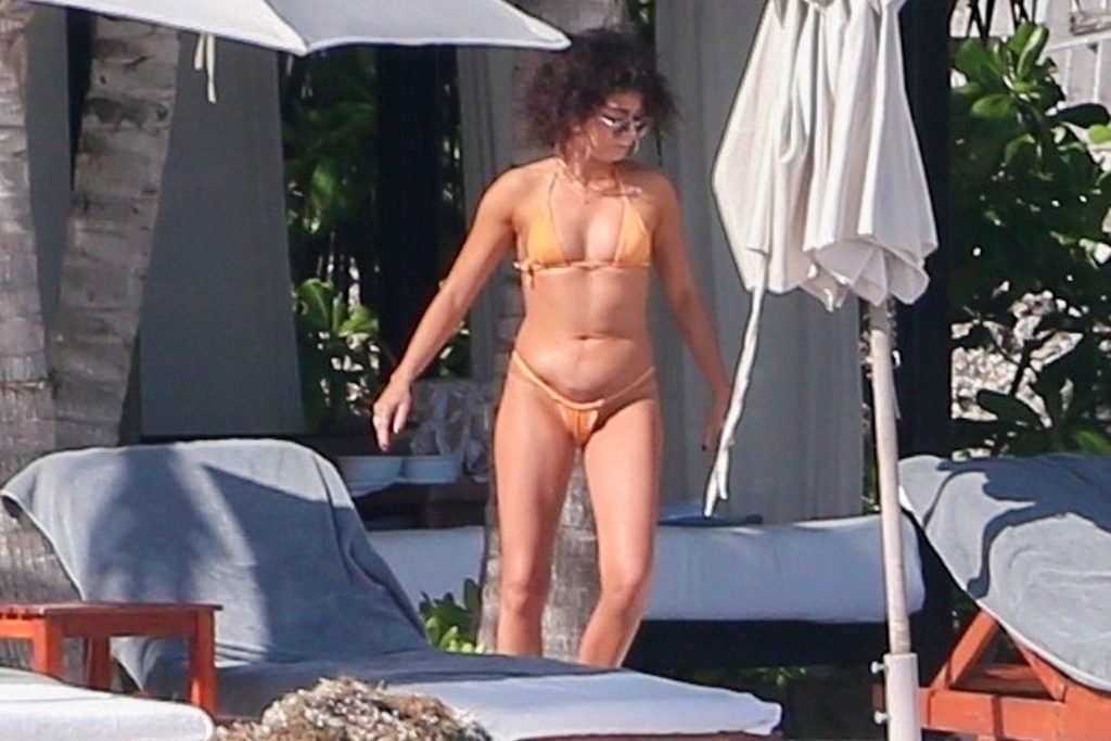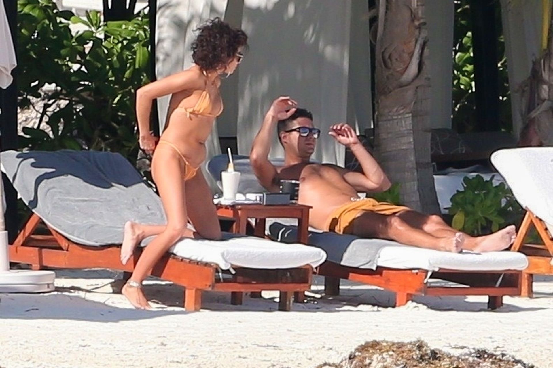“Modern Family” e la star di The Fappening mostra la sua figura snella in bikini, mentre lei e il suo fidanzato sorseggiano bevande fredde sulla spiaggia del loro hotel insieme, 01/04/2019.