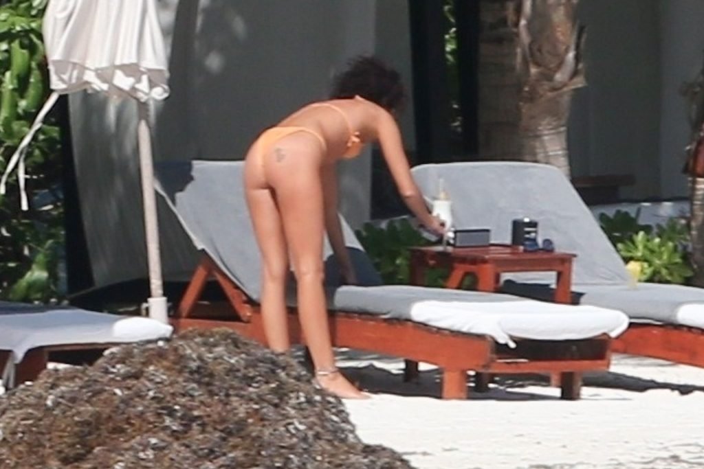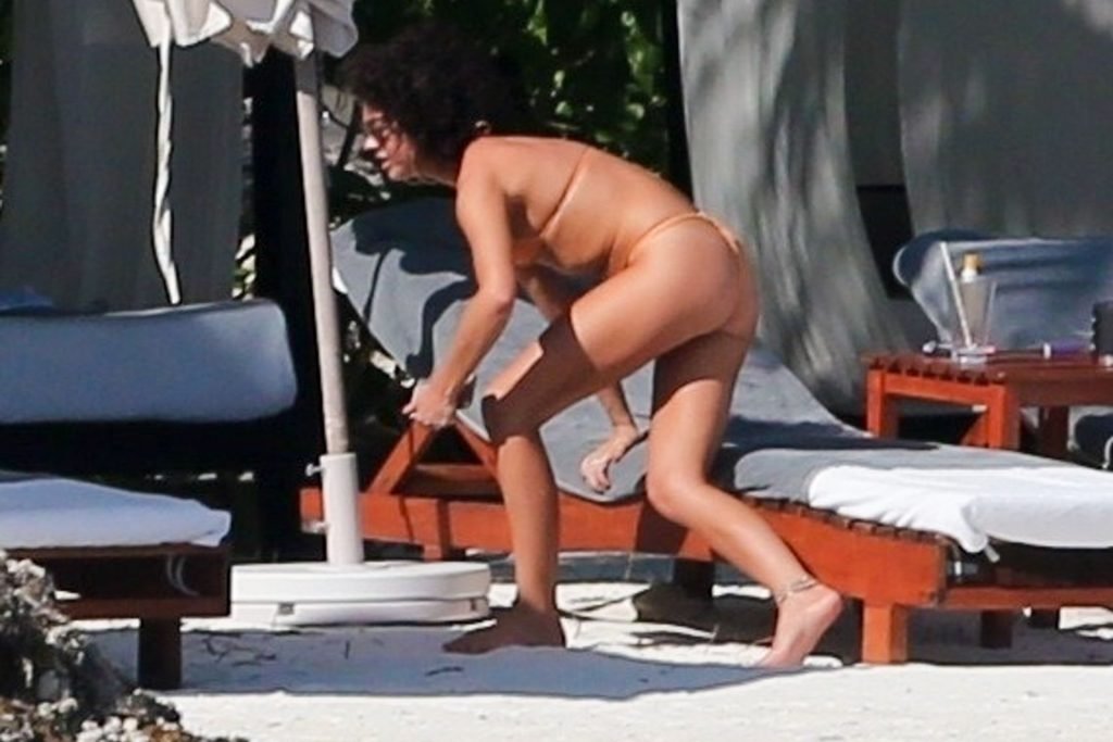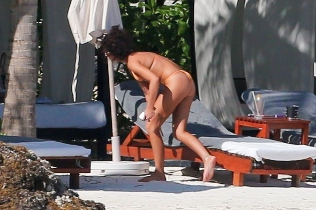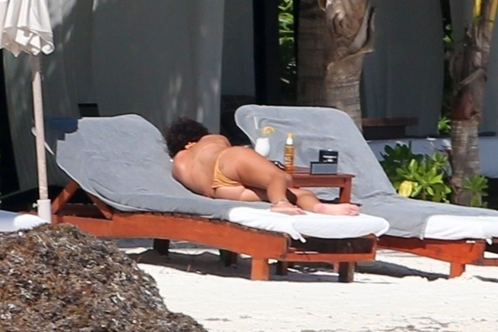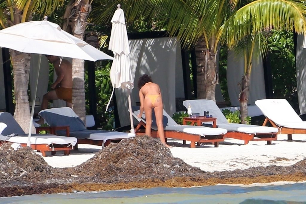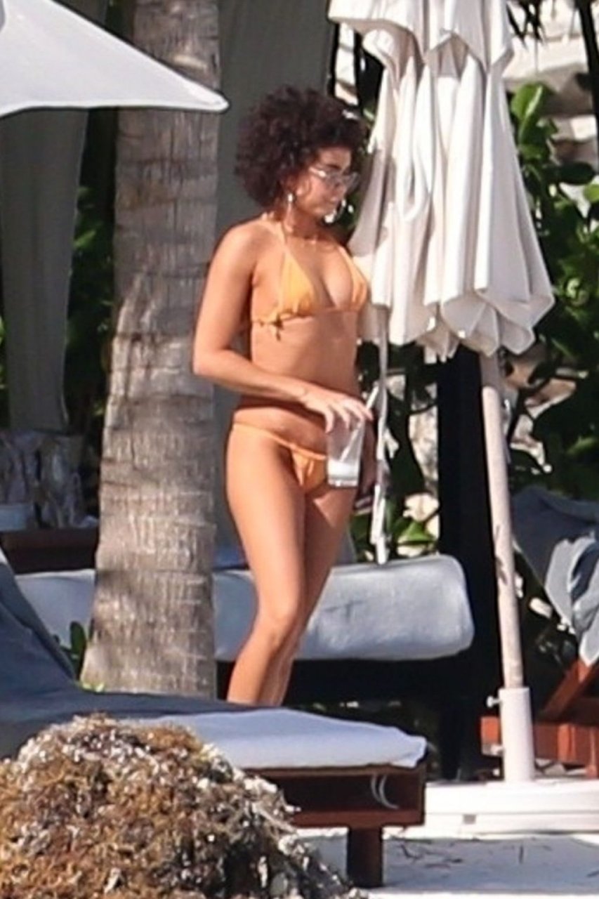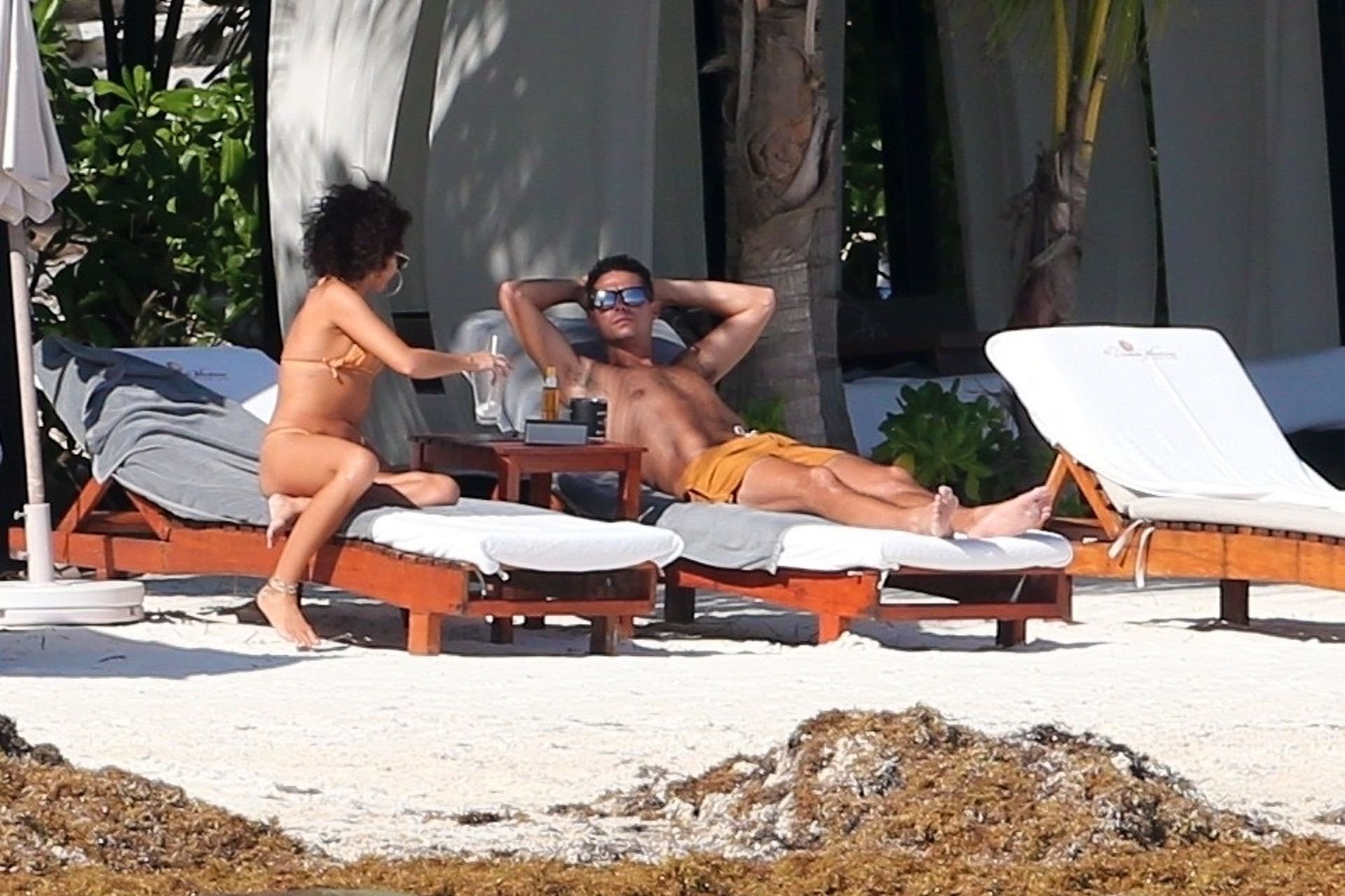 “Modern Family” e la star di The Fappening mostra la sua figura snella in bikini, mentre lei e il suo fidanzato sorseggiano bevande fredde sulla spiaggia del loro hotel insieme, 01/04/2019.