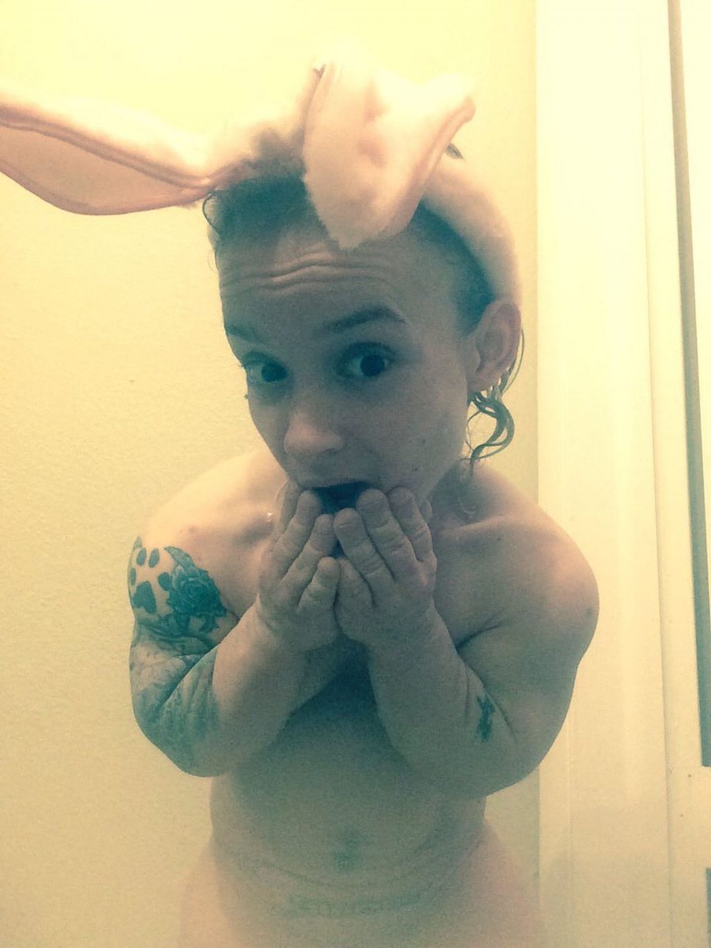 Nessuno menziona nemmeno che è una spogliarellista nana, un Etch A Sketch con la faccia di Mini Me e sembra che stia cercando di entrare nel bodybuilding (ironia) con quel torso solido come quello di Katie Price... vomito