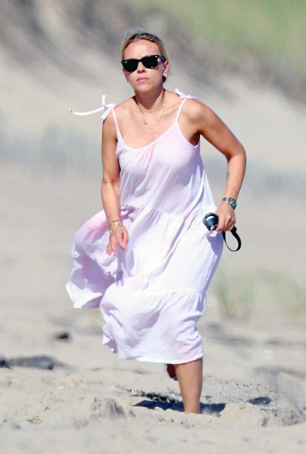 And now, guys, let’s take a look at what quarantine has done to our favorite blonde! She is either pregnant or just got fat during Corona because she is hiding her big stomach underneath a wide summer dress! She also did not wear a bra, and we can see that even her tits got fat and bigger! She went on a walk with her dog on the beach in the Hamptons as the paparazzi spotted her while sunbathing!