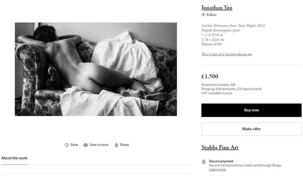 Here is a newly leaked photo of Scarlett Johansson’s naked ass! Jonathan Yeo did his image in 2012, but it has just recently surfaced online as it’s now been uploaded to the internet in the hope he could sell it! You will also see the ad for it online, so if you have 1500 dollars that you don’t know what to spend on, we suggest this!