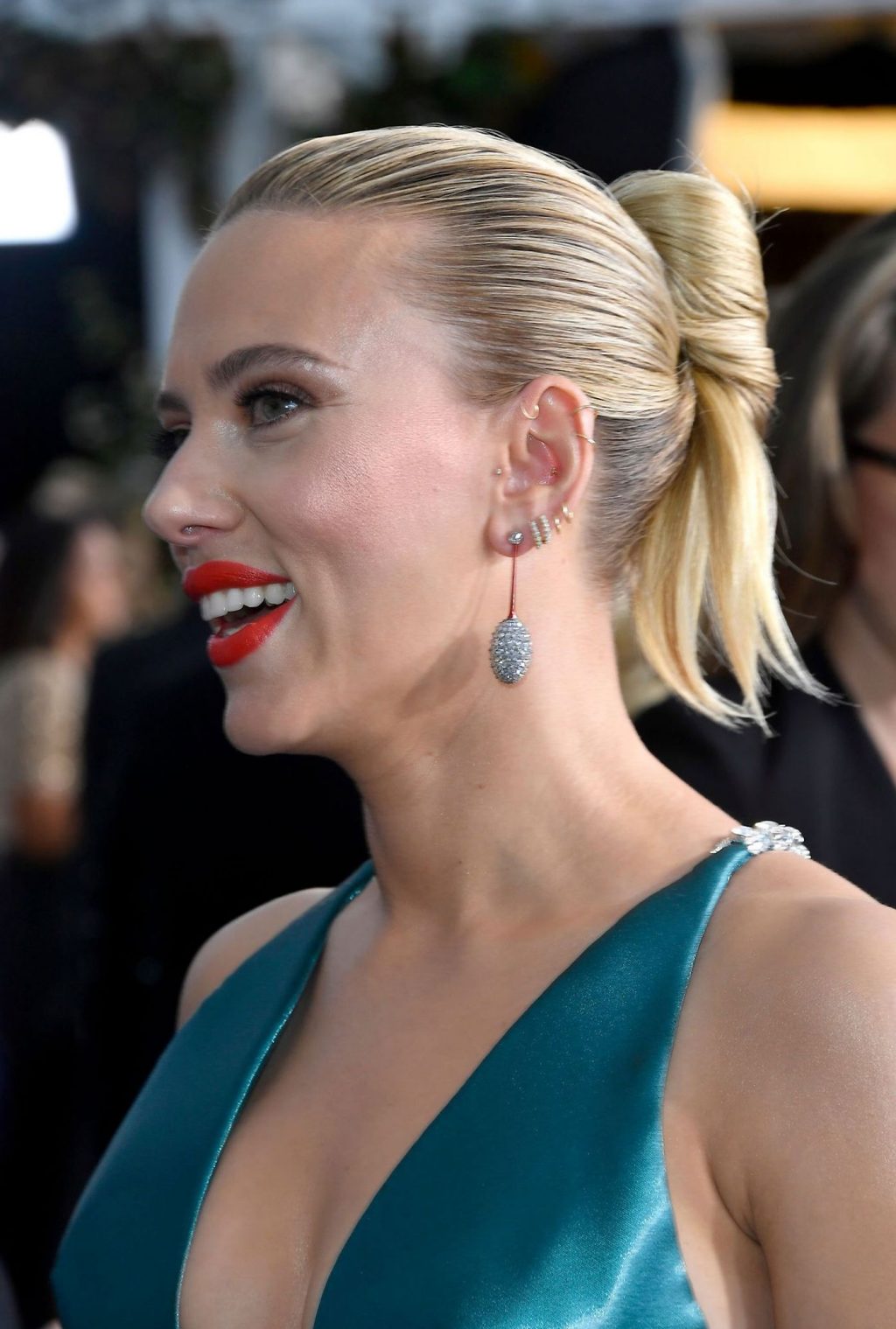 And I thought that Margot Robbie had the enormous cleavage of all time, but clearly, I might be wrong! Miss Scarlett Johansson had worn this dress with a cleavage that goes almost to her belly button! She attended the 26th Screen Actors Guild Awards at the Los Angeles Shrine Auditorium and Expo Hall.