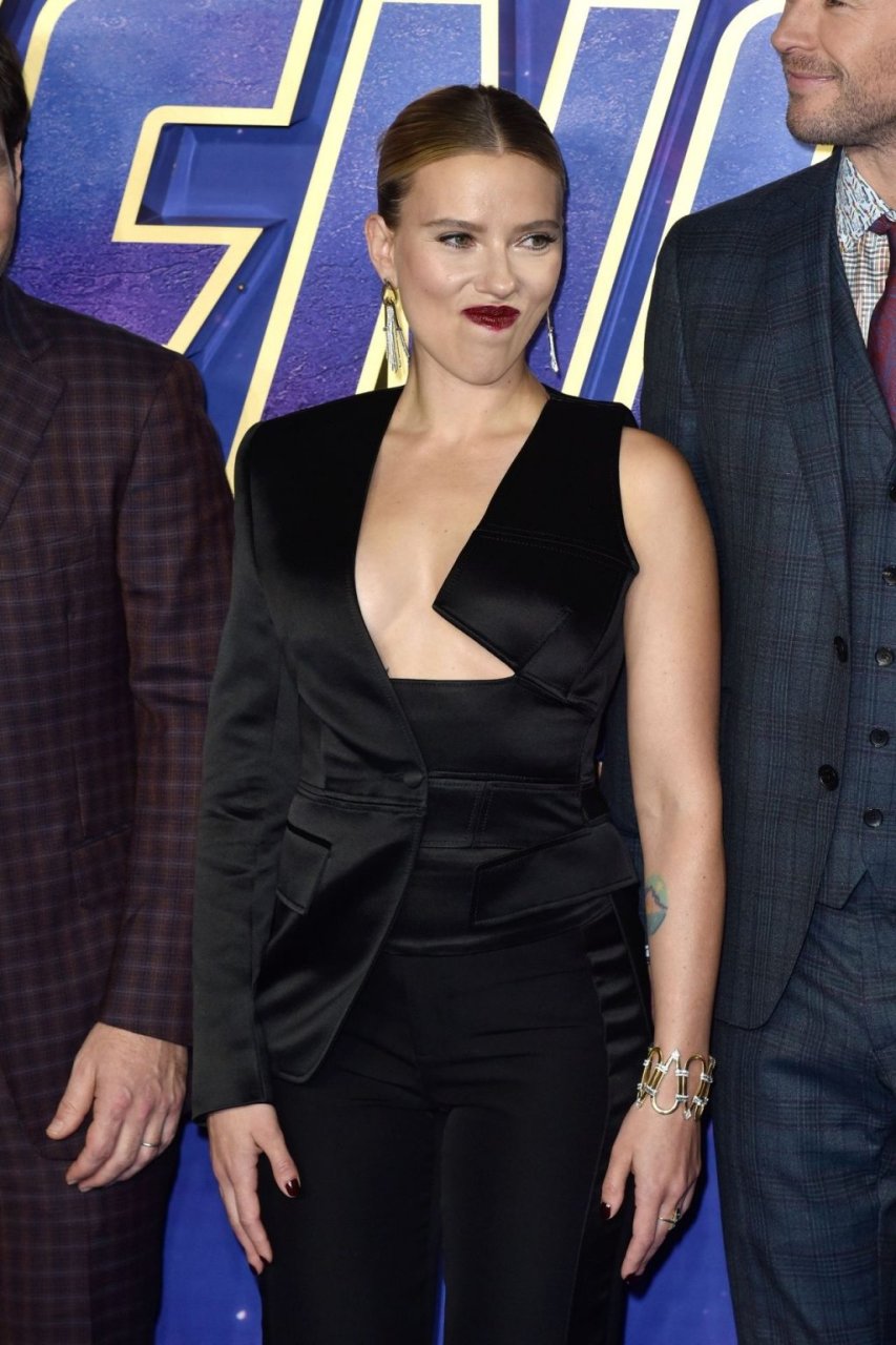 Scarlett Johansson senza reggiseno partecipa a un photocall all’evento per fan del Regno Unito di “Avengers: Endgame” presso il Picturehouse Central di Londra, 04/10/2019.