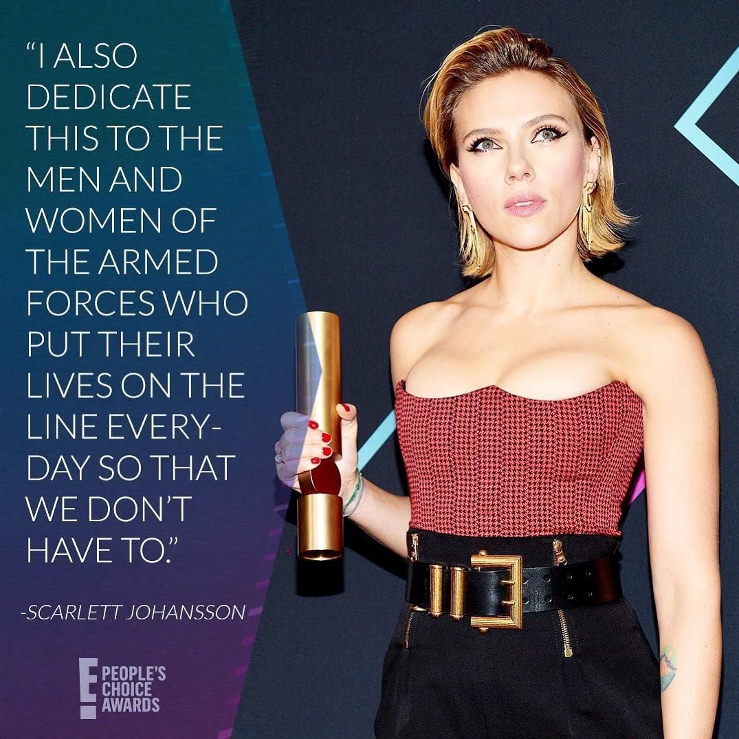 La scorsa domenica si è tenuta la cerimonia annuale degli People’s Choice Awards a Santa Monica. L’attrice di 33 anni Scarlett Johansson ha scelto un look sexy.