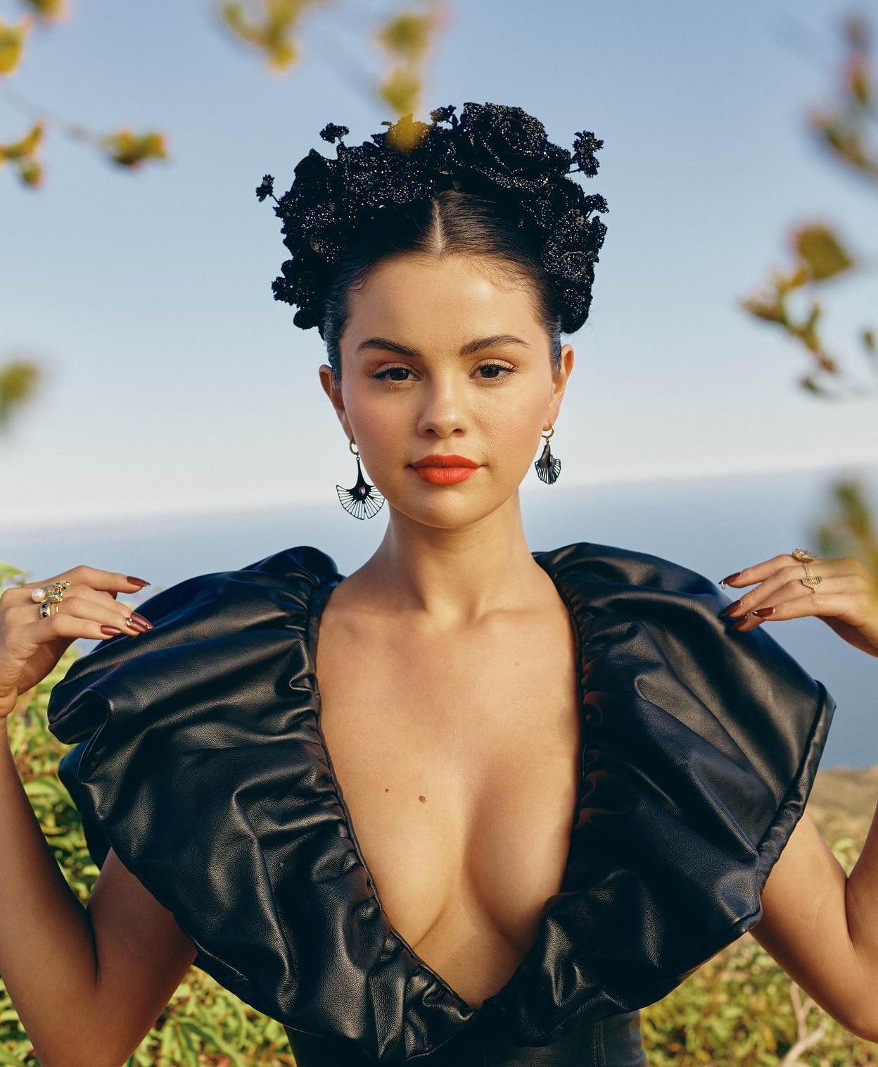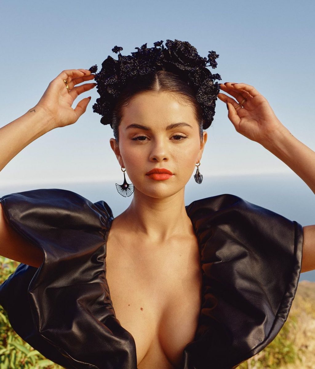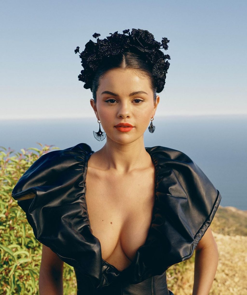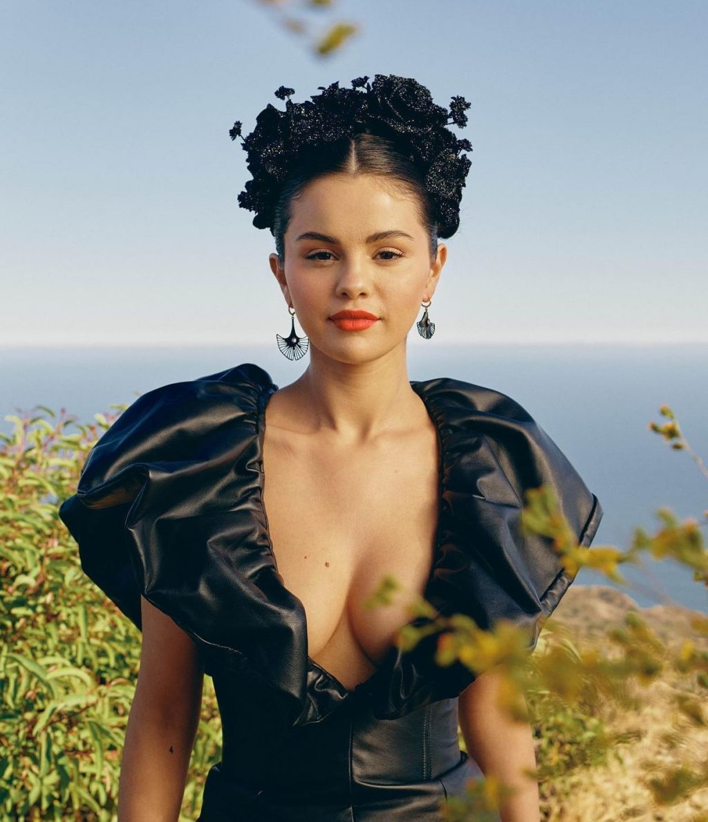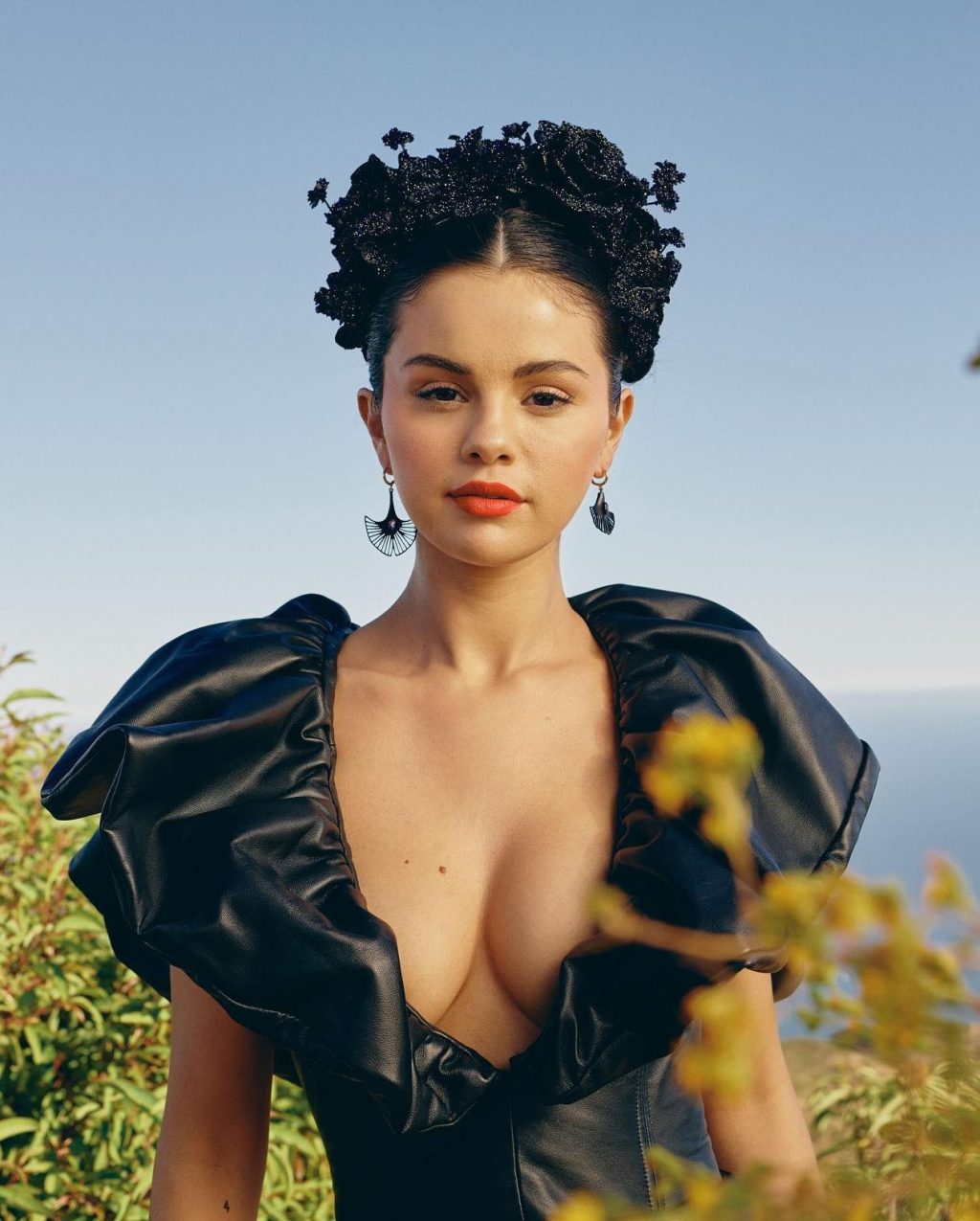 La cantante/attrice Selena Gomez sfoggia il suo décolleté e le gambe sexy in un nuovo servizio fotografico di Micaiah Carter per la rivista Allure (2020).