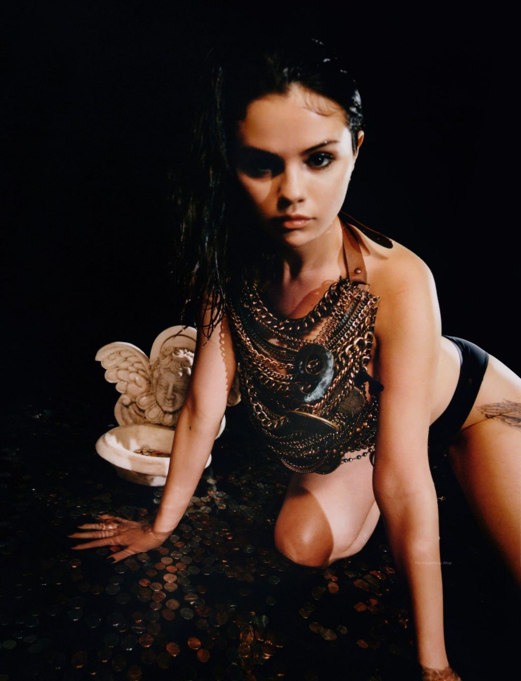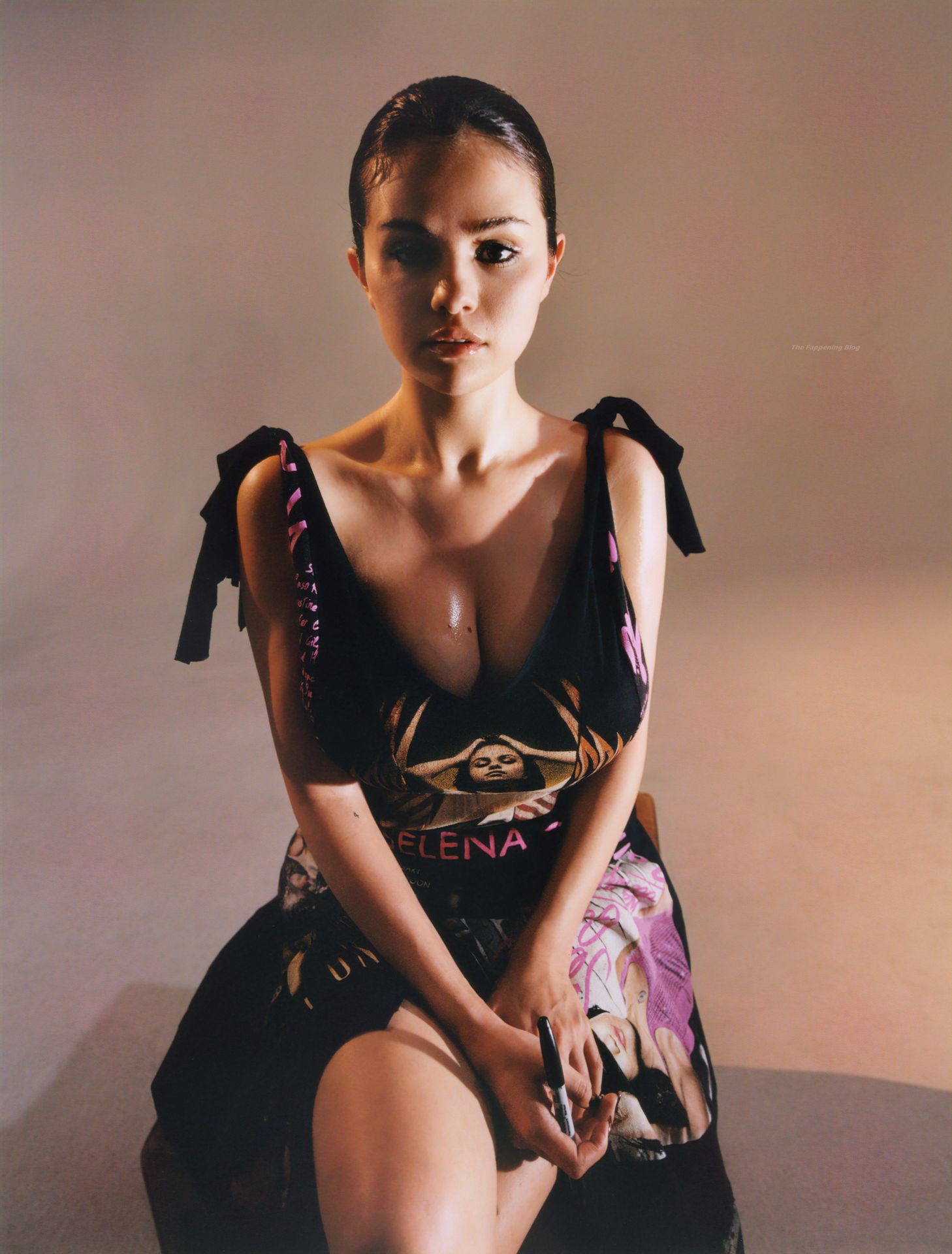 Selena Gomez mostra il suo seno in queste immagini scartate e dietro le quinte del suo servizio fotografico per la rivista Dazed (2021). Nella vita reale, la cantante appare peggio.