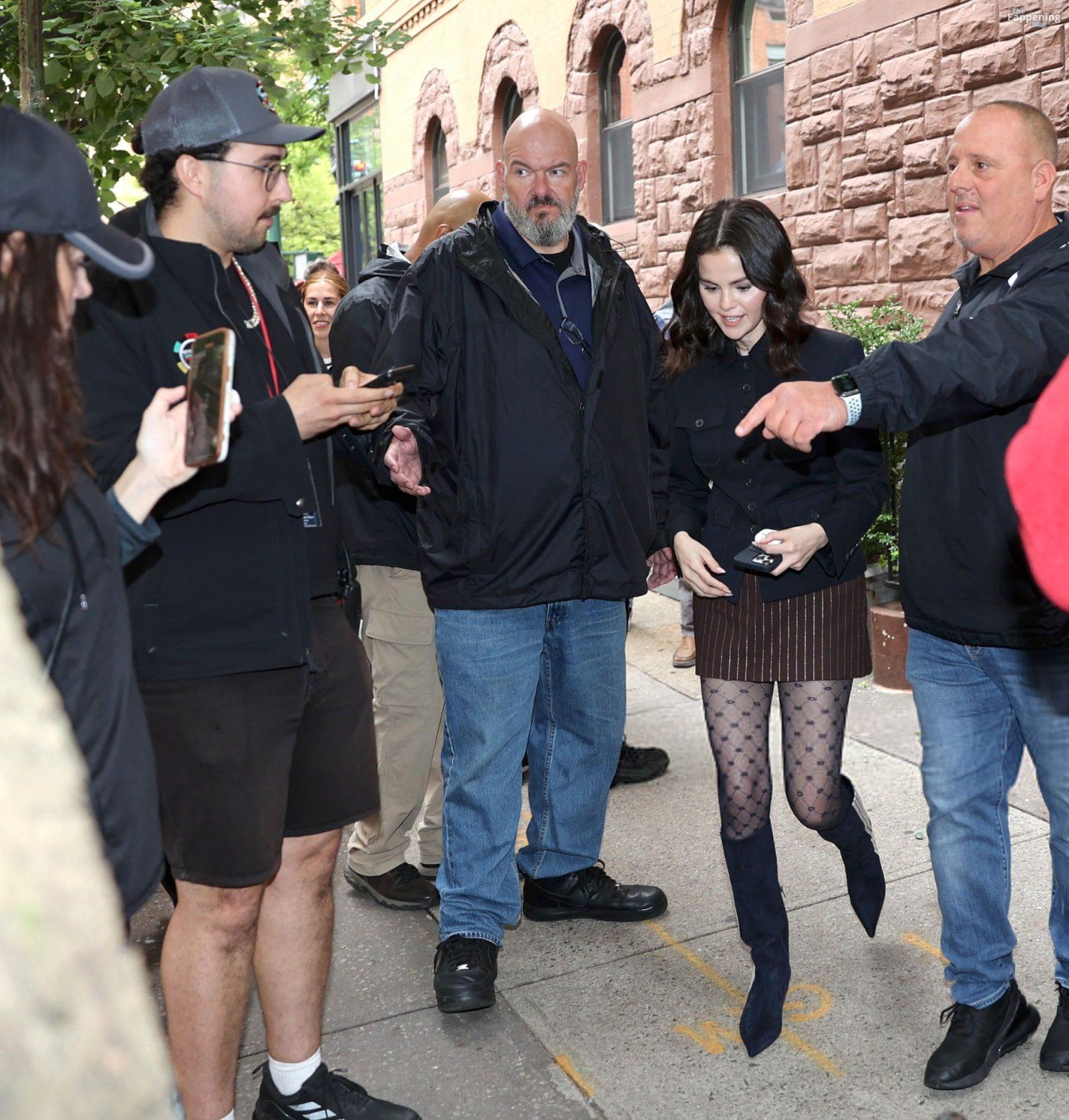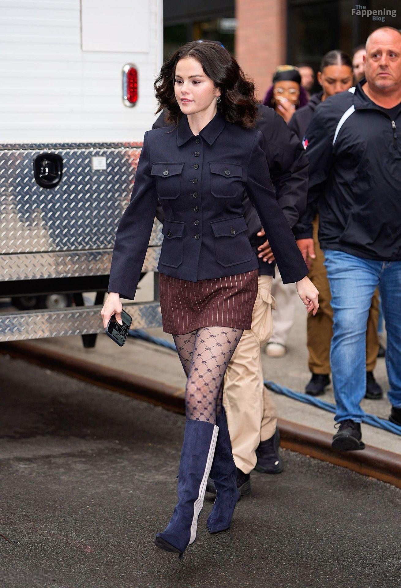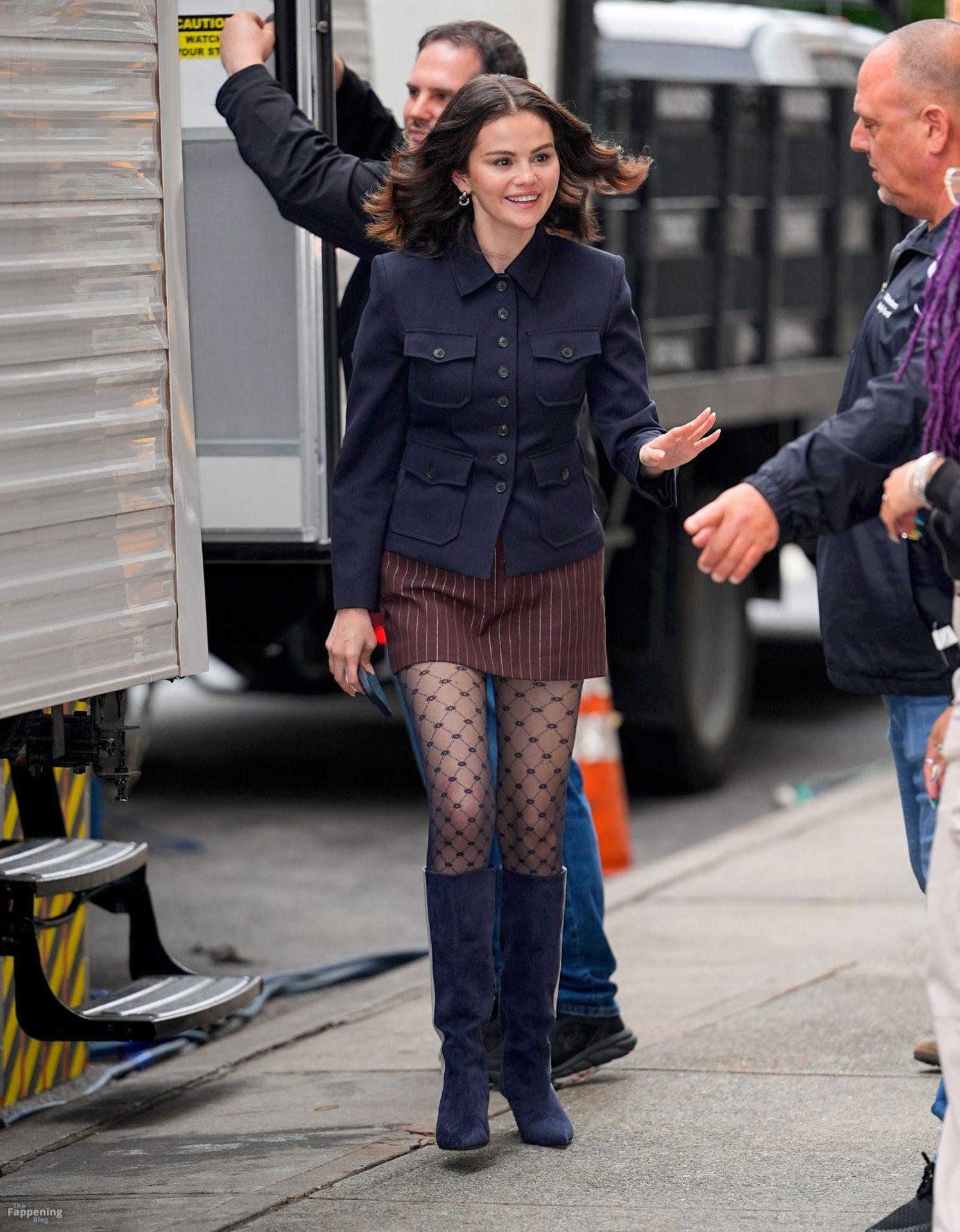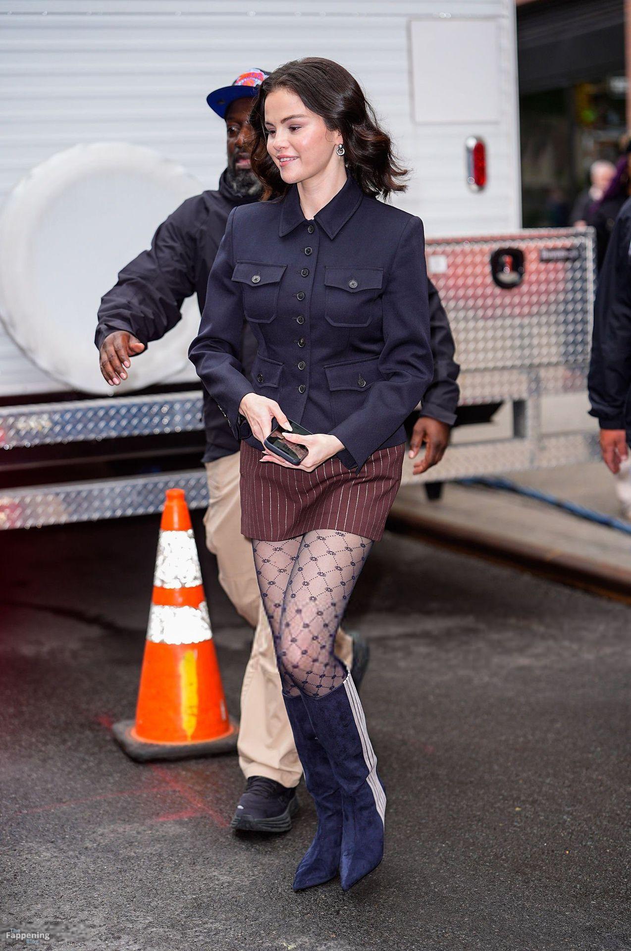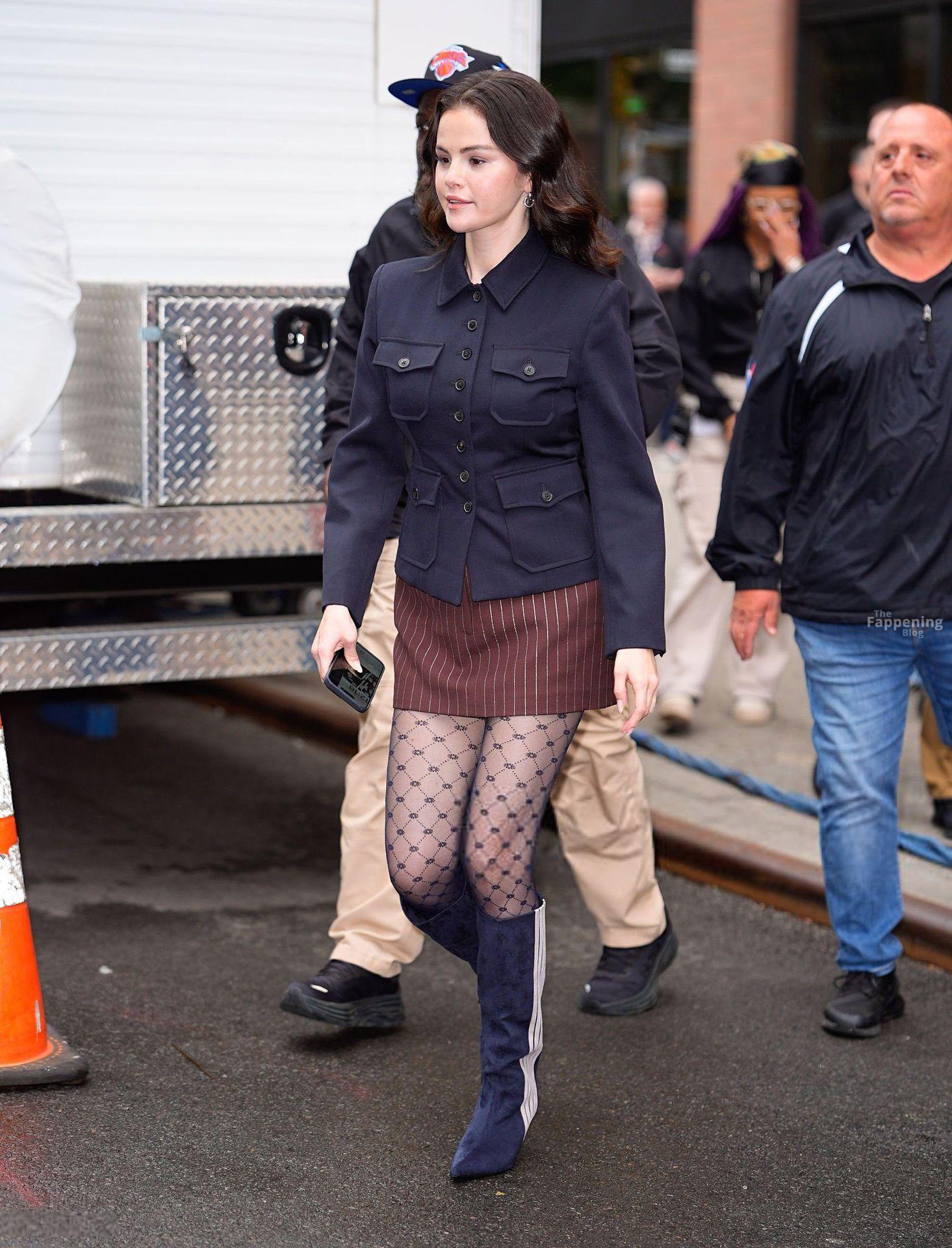 La star di The Fappening Selena Gomez è stata vista a New York, mostrando le sue gambe sexy con calze trasparenti a motivo e una minigonna a righe sottili.