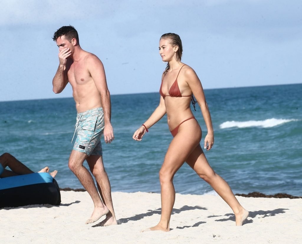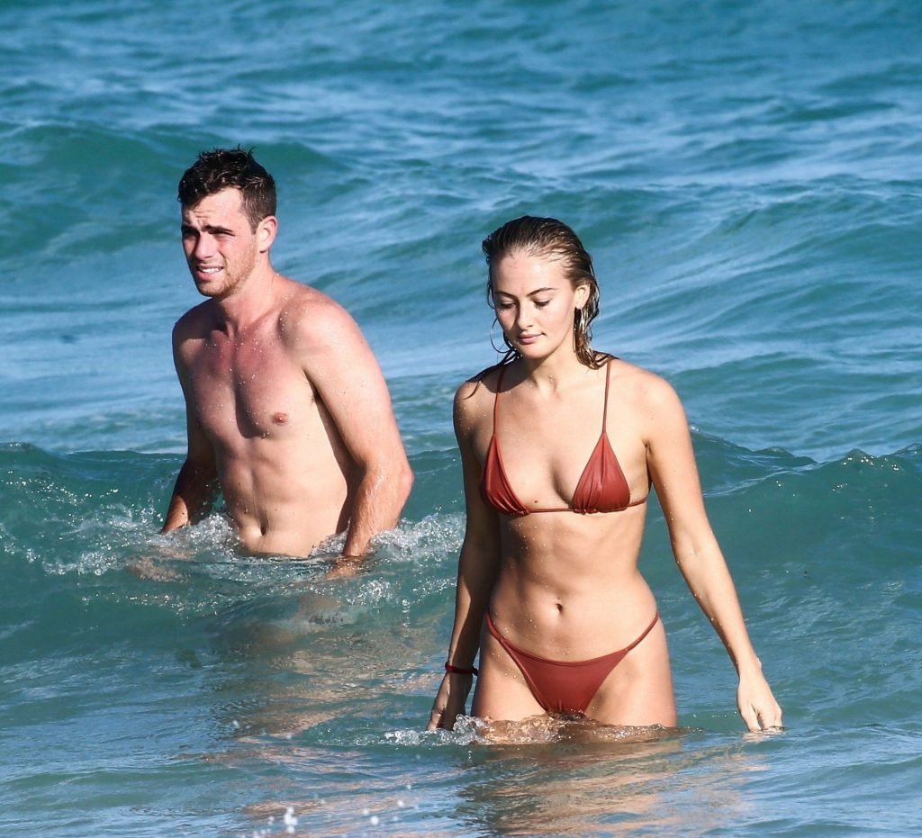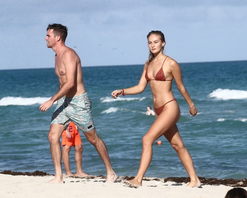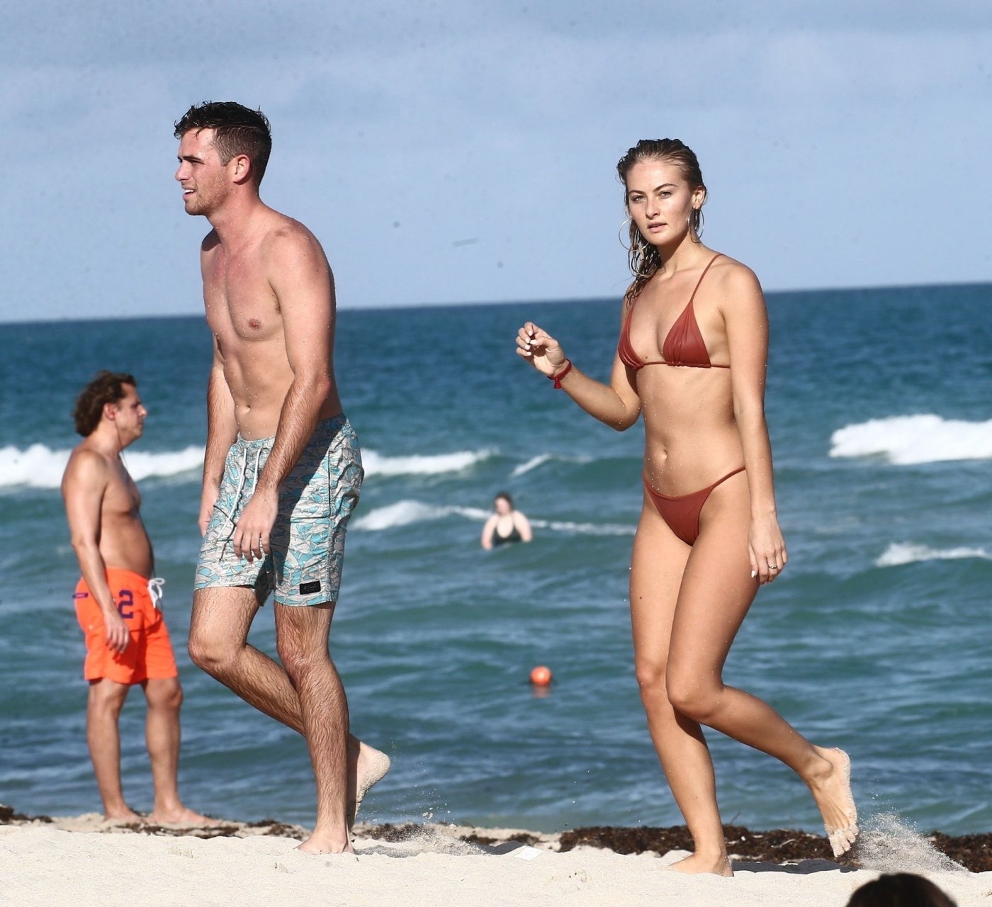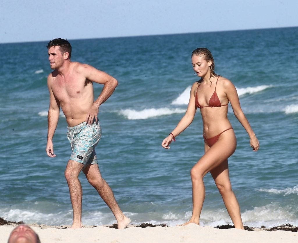 Modella di Instagram Selena Weber e il suo ragazzo si godono una giornata in spiaggia a Miami presso l’Hotel Nautilus, 13/11/2018. Selena mostra il suo corpo sexy in un minuscolo bikini marrone mentre si rinfresca nell’oceano.