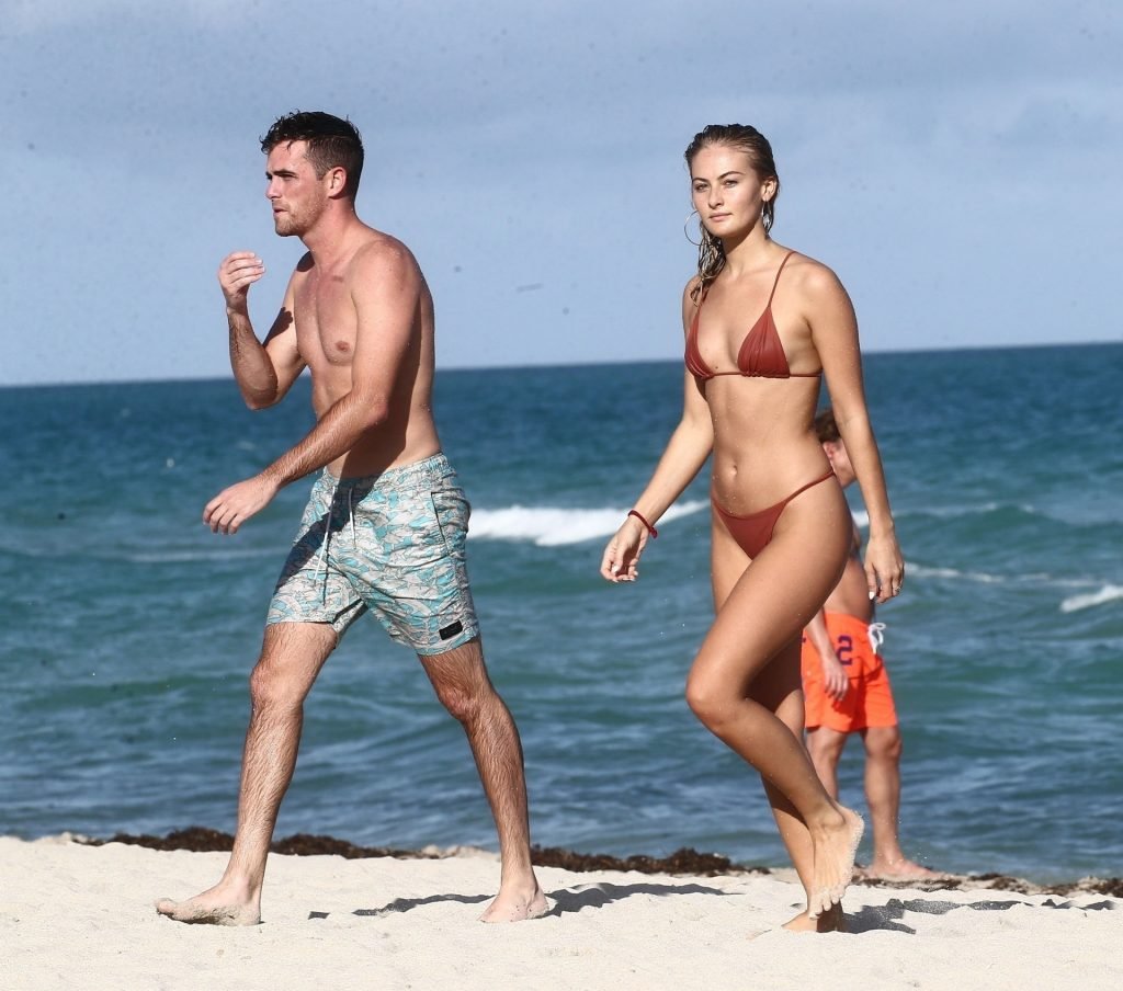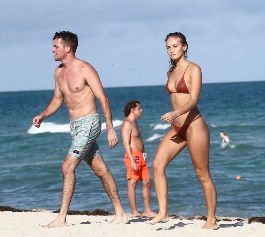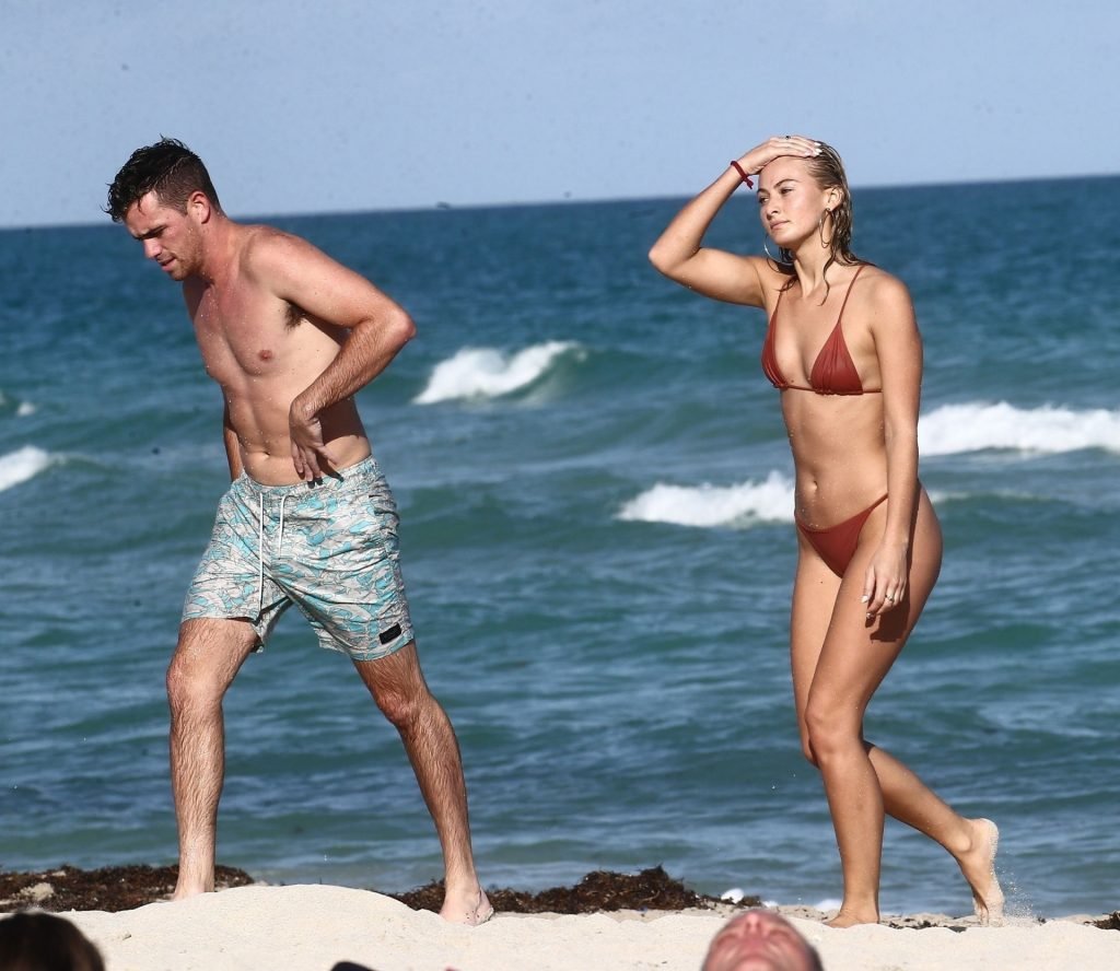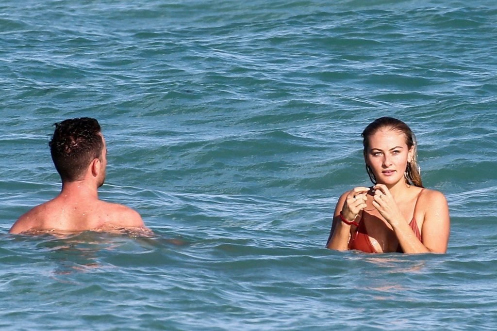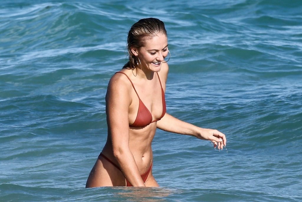 Modella di Instagram Selena Weber e il suo ragazzo si godono una giornata in spiaggia a Miami presso l’Hotel Nautilus, 13/11/2018. Selena mostra il suo corpo sexy in un minuscolo bikini marrone mentre si rinfresca nell’oceano.