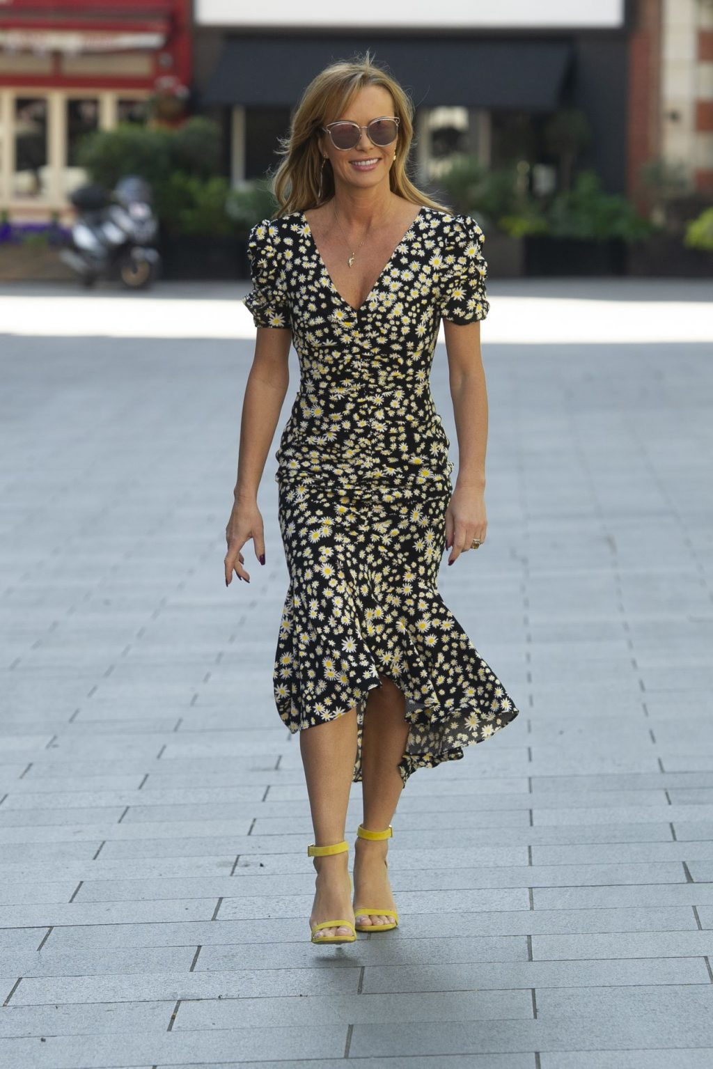 La personalità dei media Amanda Holden è stata vista lasciare gli studi Global dello show Heart Radio Breakfast indossando un abito monocromatico a Londra, 22/04/2020.