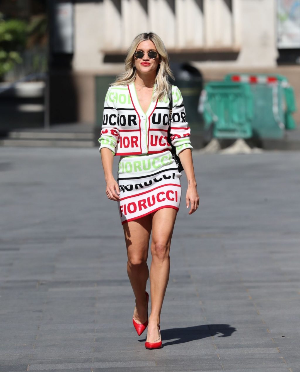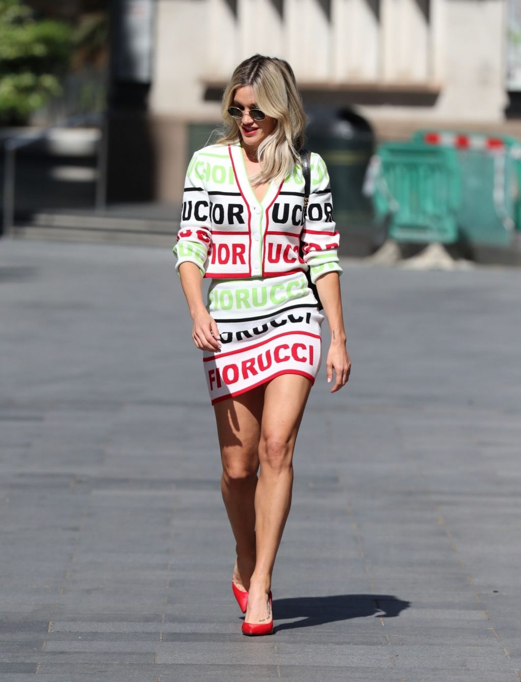 La cantante e personalità dei media Ashley Roberts (38) con gambe lunghe è stata fotografata mentre lasciava gli studi Global dopo il suo show su Heart Radio, indossando un top e una gonna stampati a due pezzi – Londra, 20/05/2020.