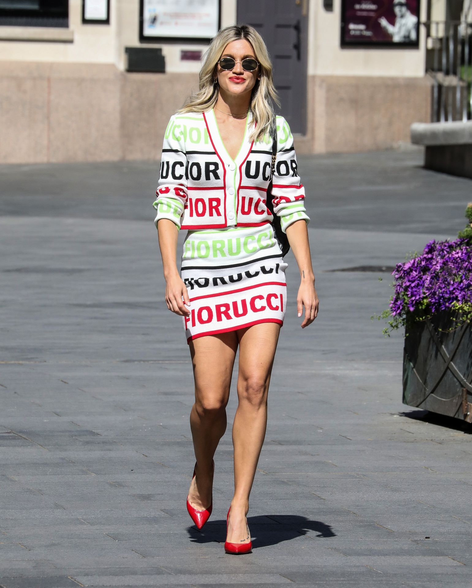 La cantante e personalità dei media Ashley Roberts (38) con gambe lunghe è stata fotografata mentre lasciava gli studi Global dopo il suo show su Heart Radio, indossando un top e una gonna stampati a due pezzi – Londra, 20/05/2020.