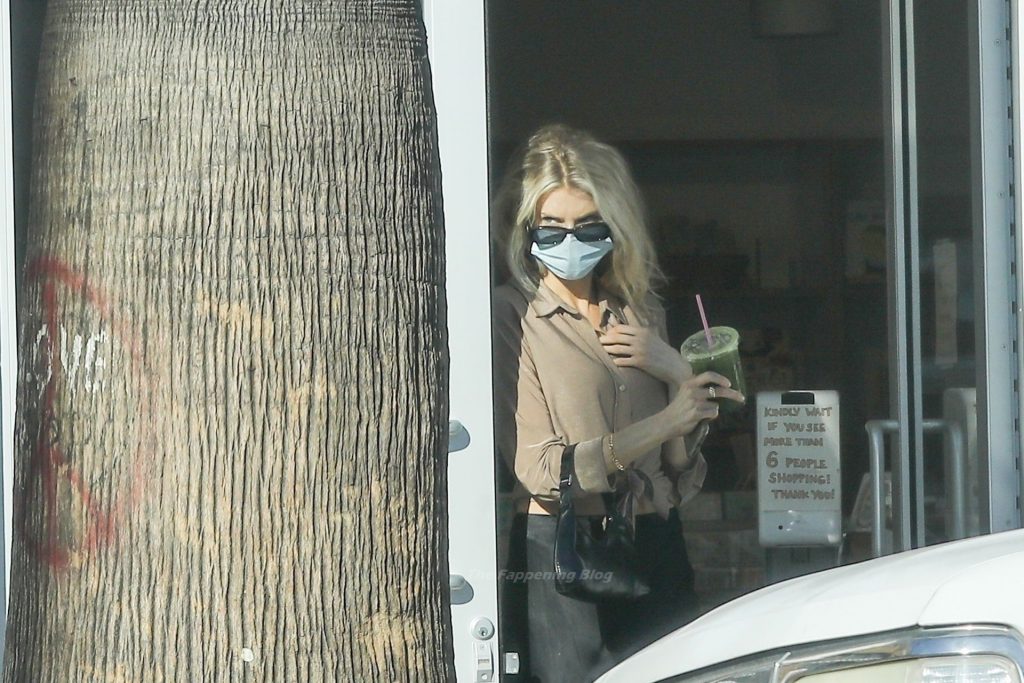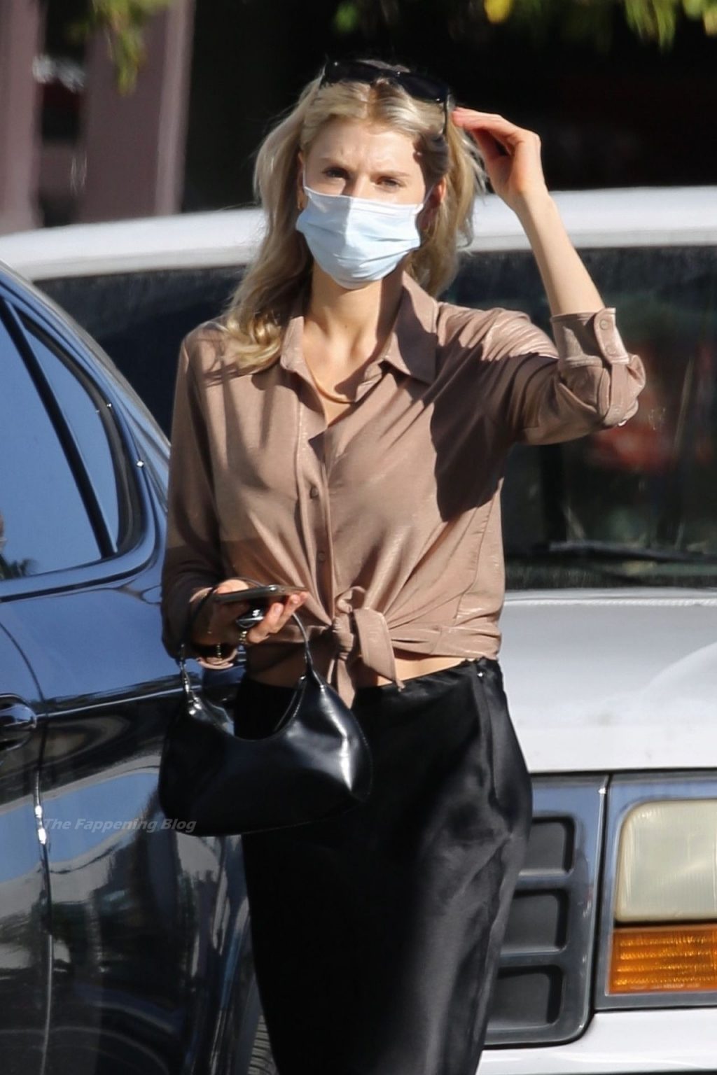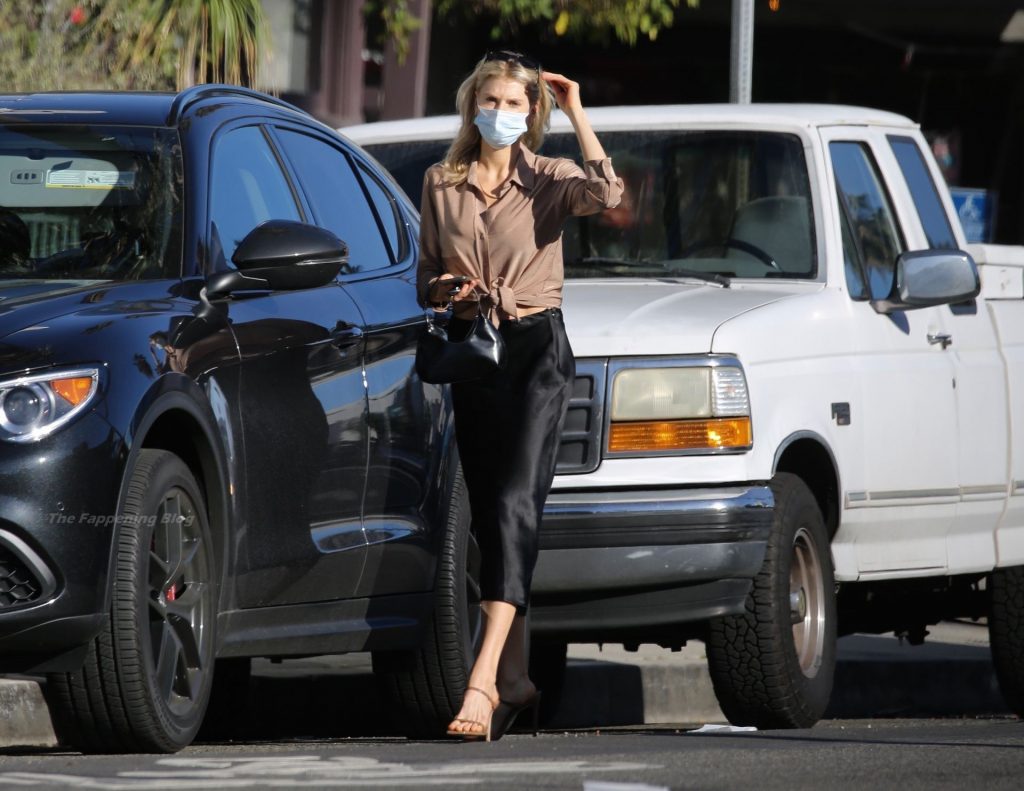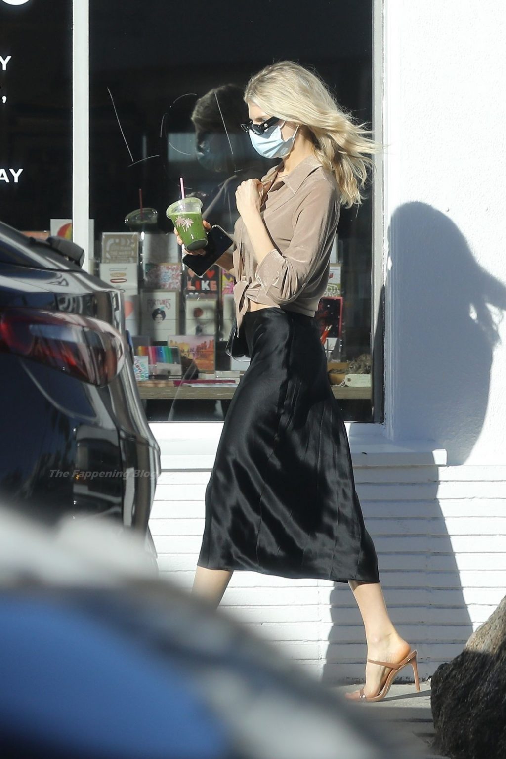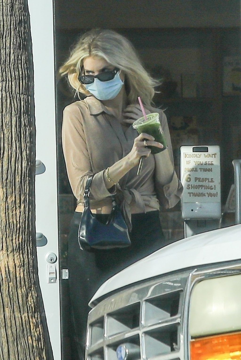 La star di The Fappening Charlotte McKinney fa shopping nel negozio Burton indossando una gonna nera lucida e una camicetta che lascia scoperti i suoi addominali tonici, 02/02/2021.