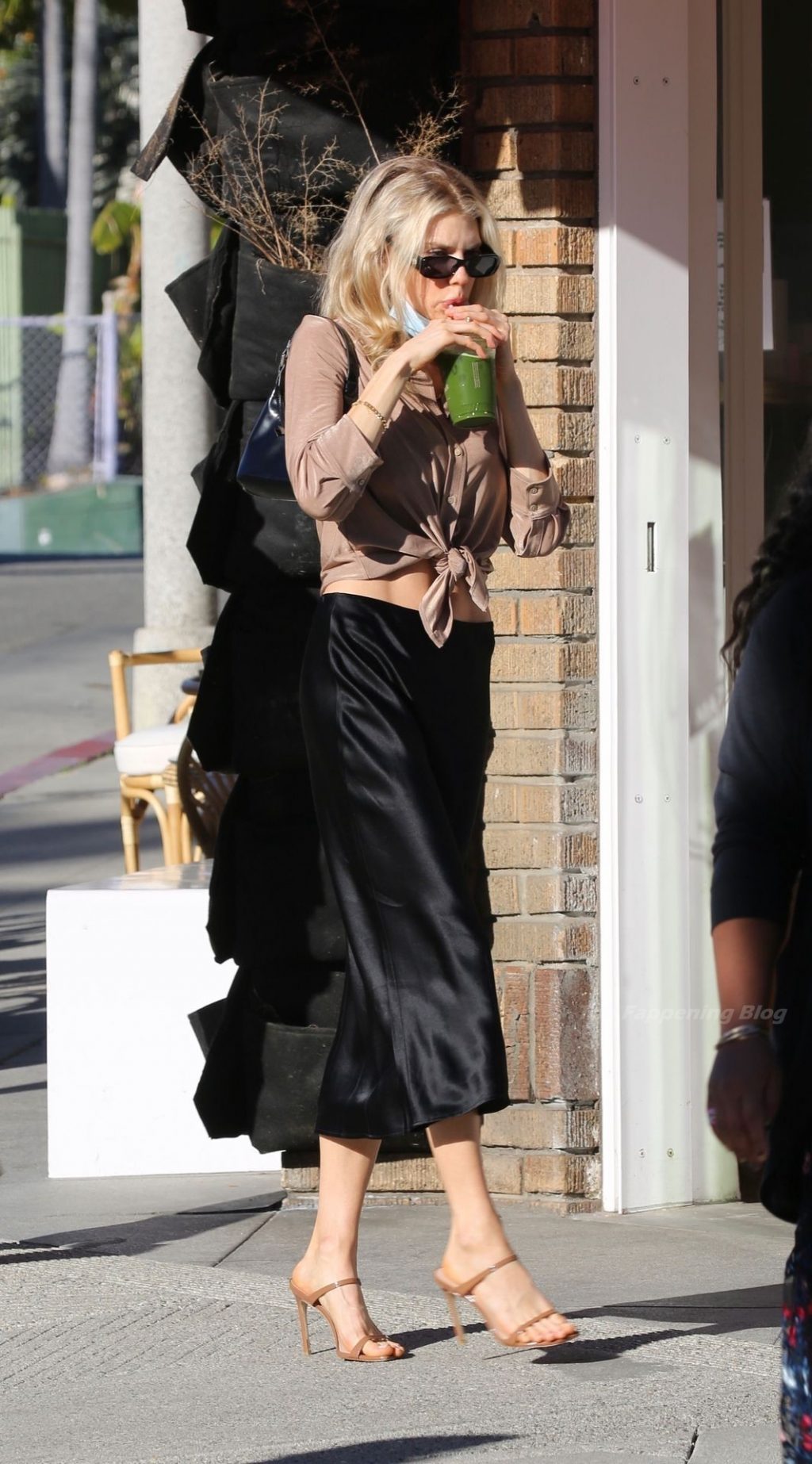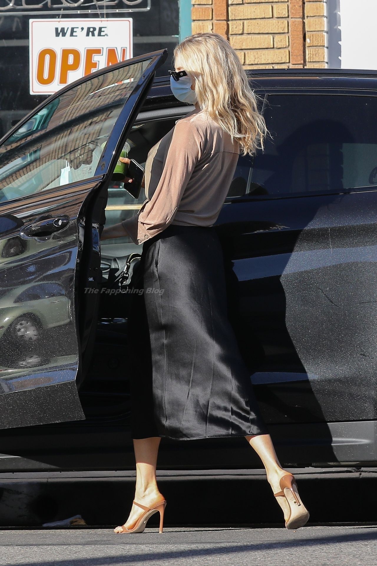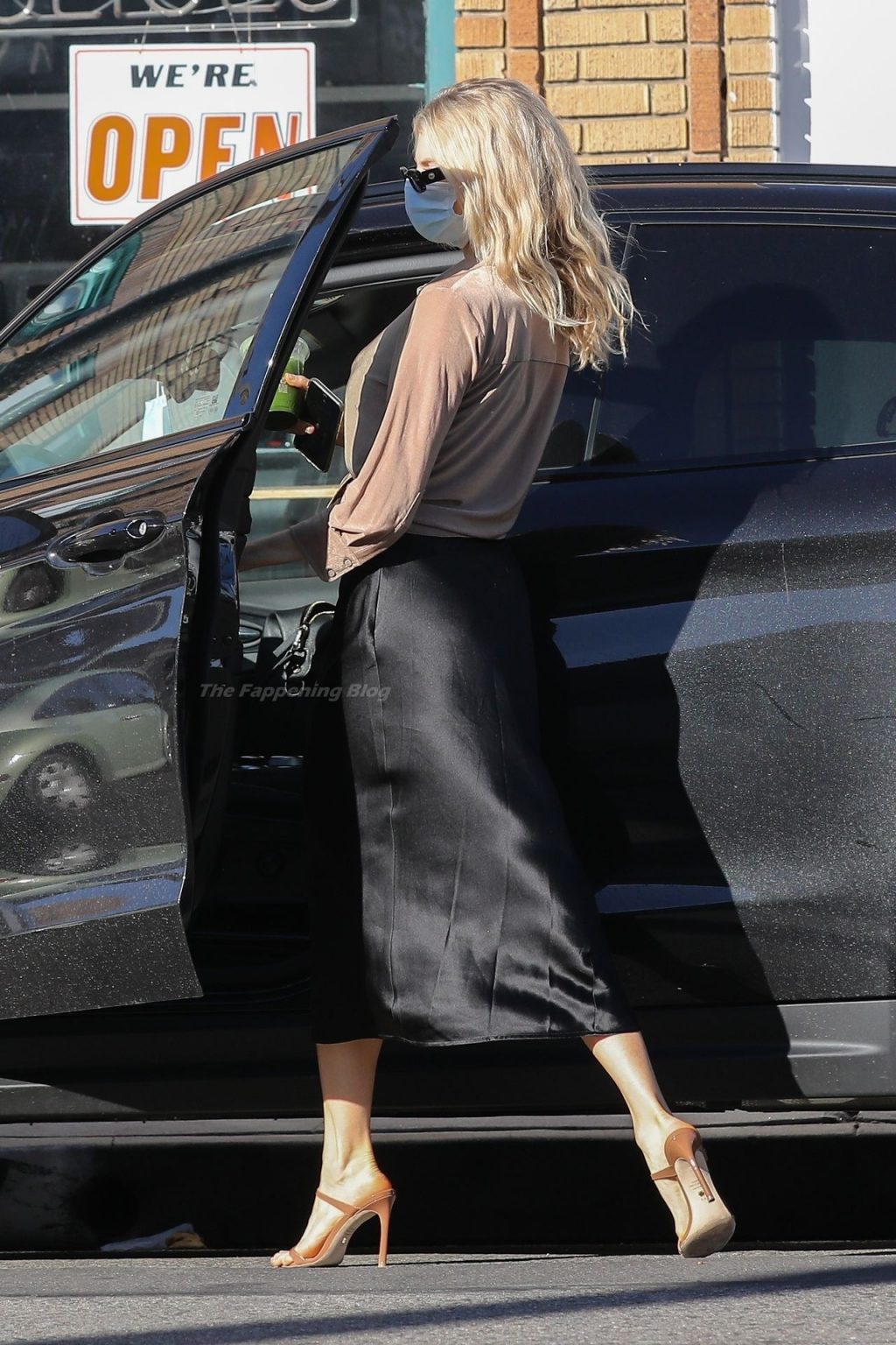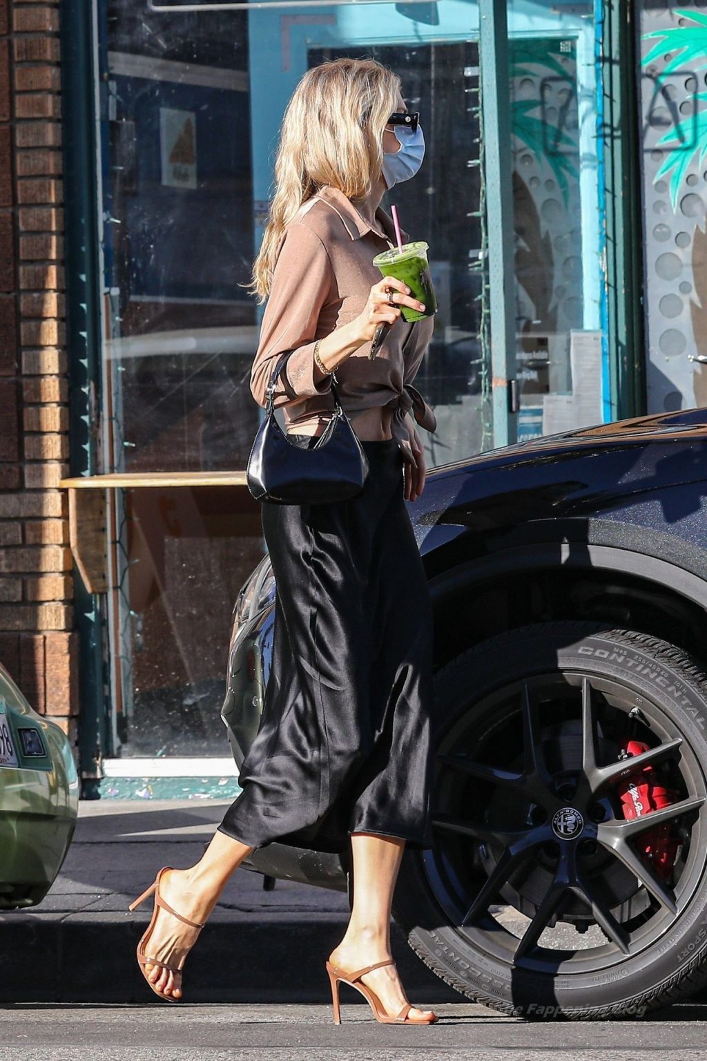 La star di The Fappening Charlotte McKinney fa shopping nel negozio Burton indossando una gonna nera lucida e una camicetta che lascia scoperti i suoi addominali tonici, 02/02/2021.