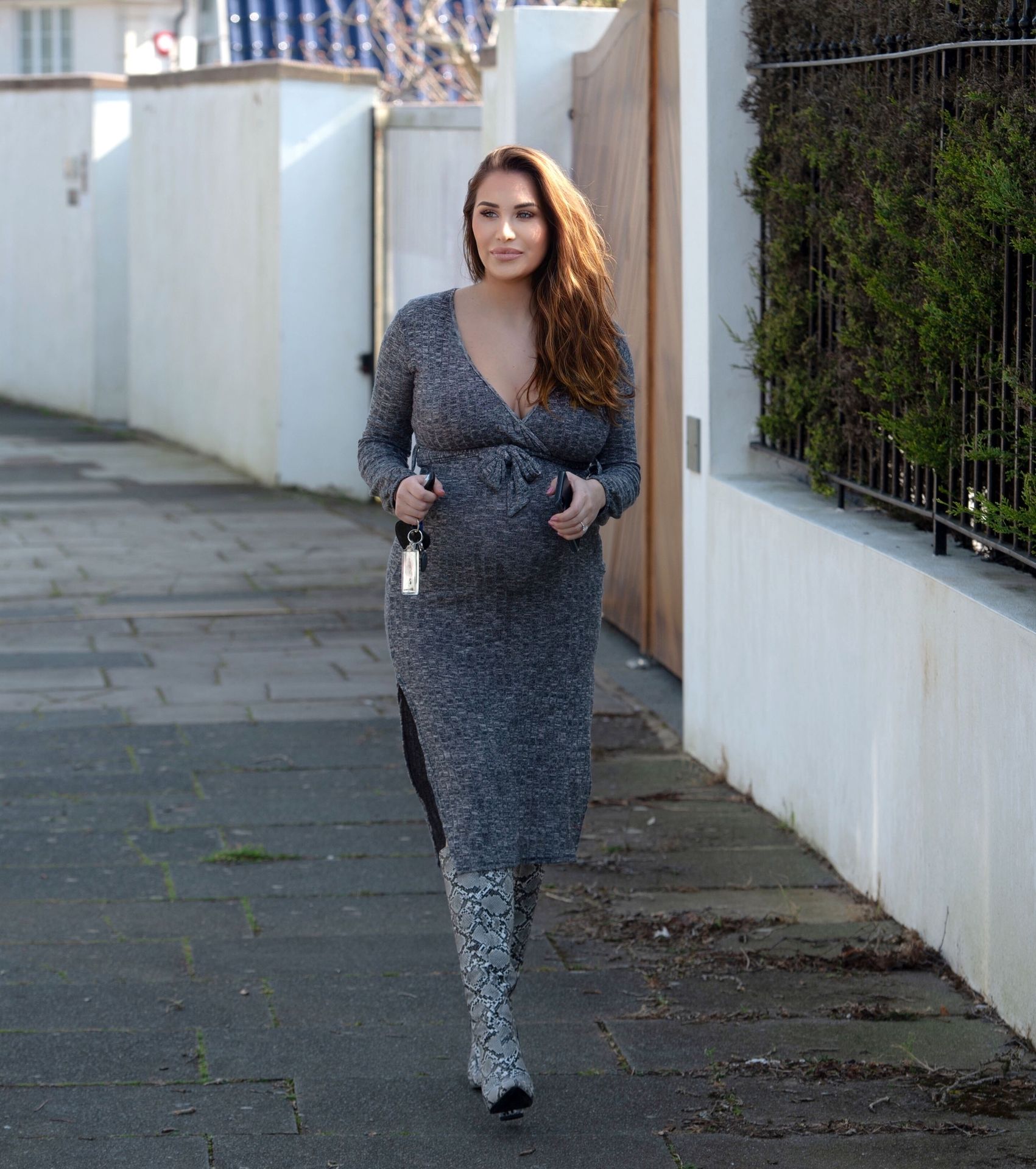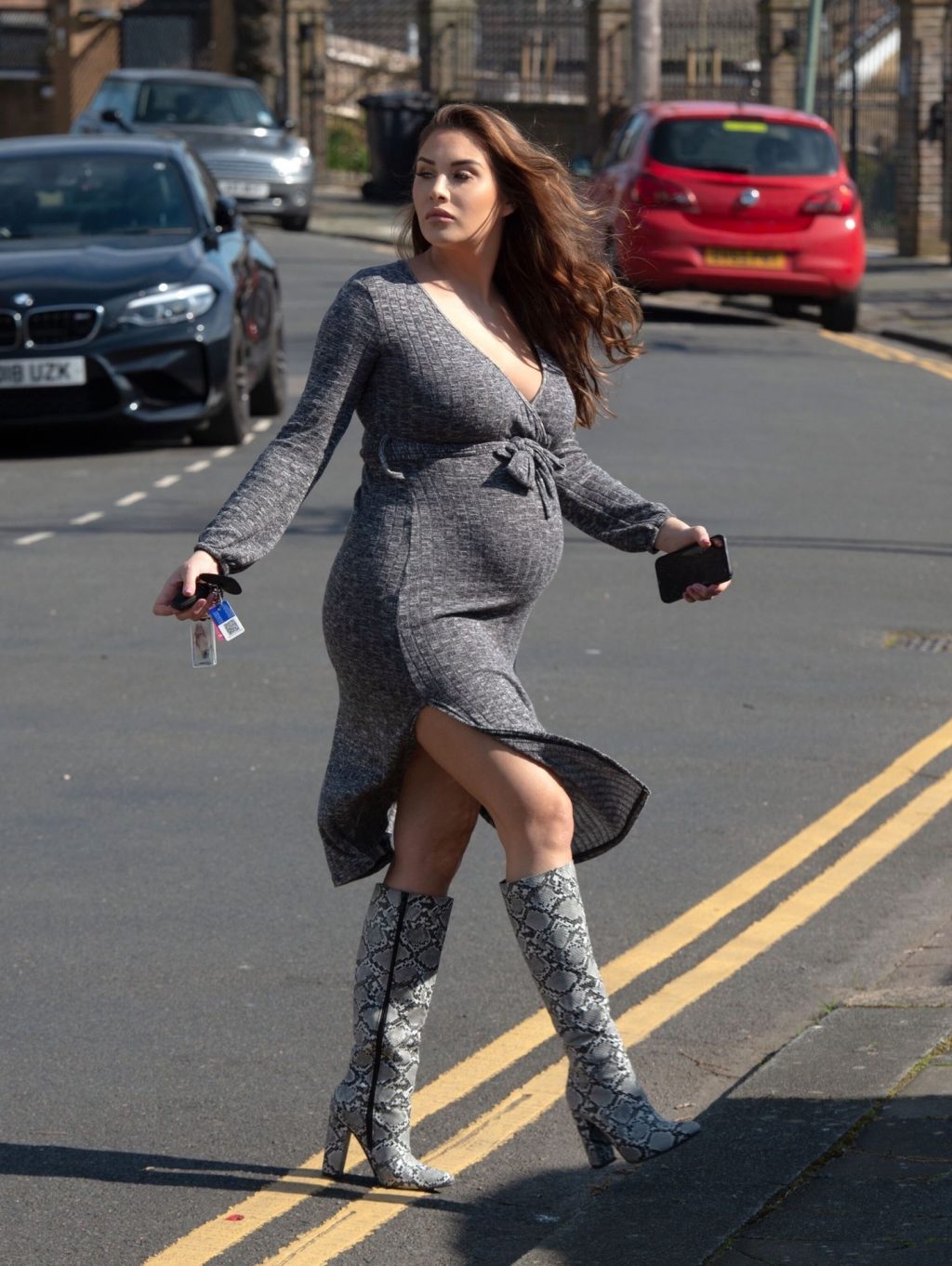 Chloe ha scritto su Instagram “Oggi mi sono vestita, stanca di sentirmi e sembrare trasandata… ultimo controllo prima che arrivi la piccola principessa.” Chloe, che aspetta la sua prima figlia con il calciatore Grant Hall, è imminente e appare splendida con un vestito grigio e stivali al ginocchio.