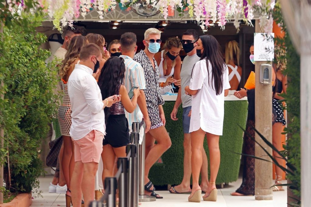 L’ex attrice di “Eastenders” e vincitrice di “I’m a Celebrity Get Me Out Here” Jacqueline Jossa è stata fotografata mentre indossa una maschera protettiva e si gode dei drink con gli amici durante una festa a O Beach a Ibiza, 14/07/2020.