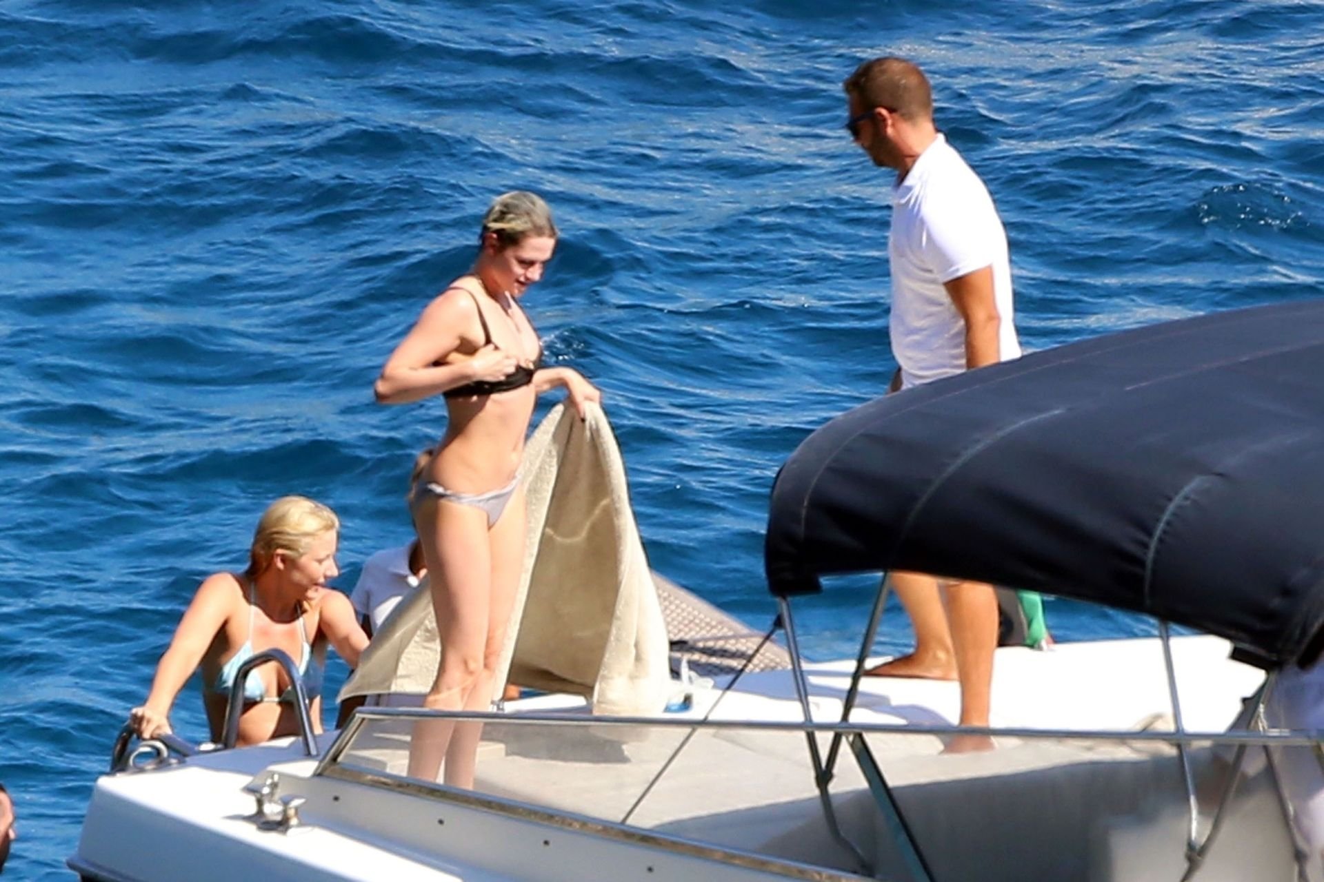 La coppia in bikini sembrava inseparabile, mostrando il loro amore e affetto insieme sulla loro barca condivisa con alcuni amici, e entrambe si sono divertite a indossare il cappello da capitano. Kristen ha mostrato le sue abilità da sub tuffandosi nel mare blu per nuotare e rinfrescarsi dal sole cocente.