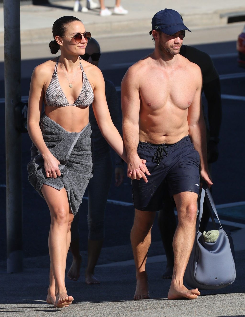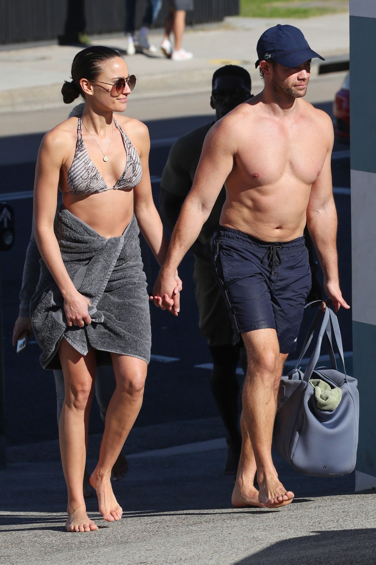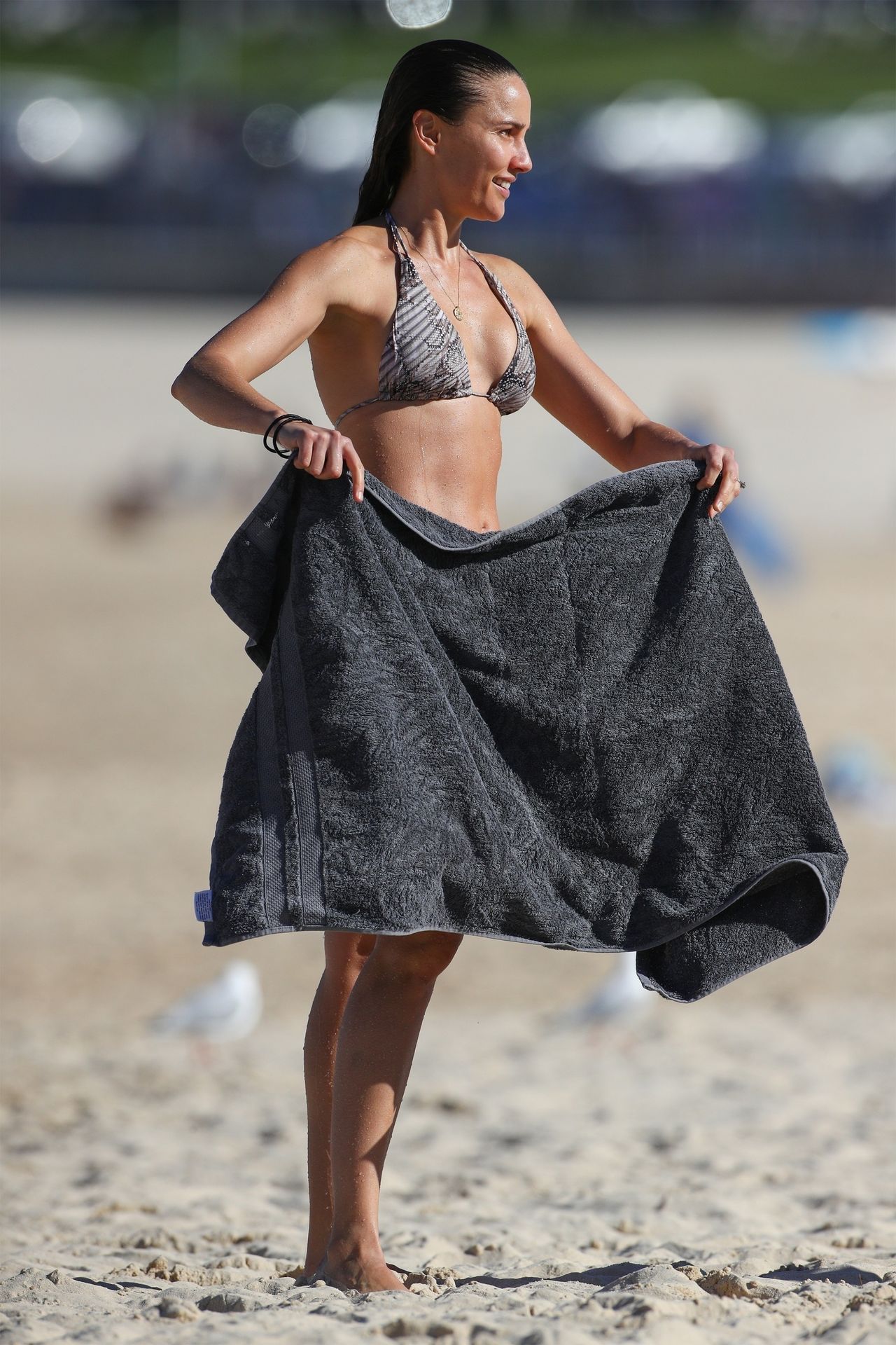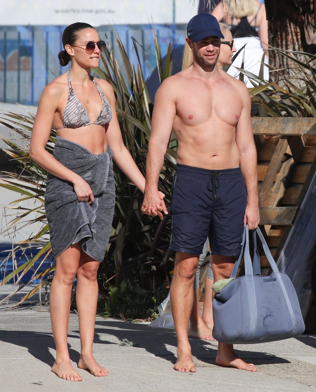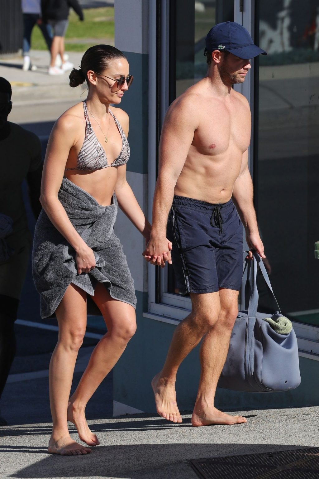 La modella Rachael Finch è fotografata sulla spiaggia di Bondi con il marito Michael Minizer, 16/06/2020.