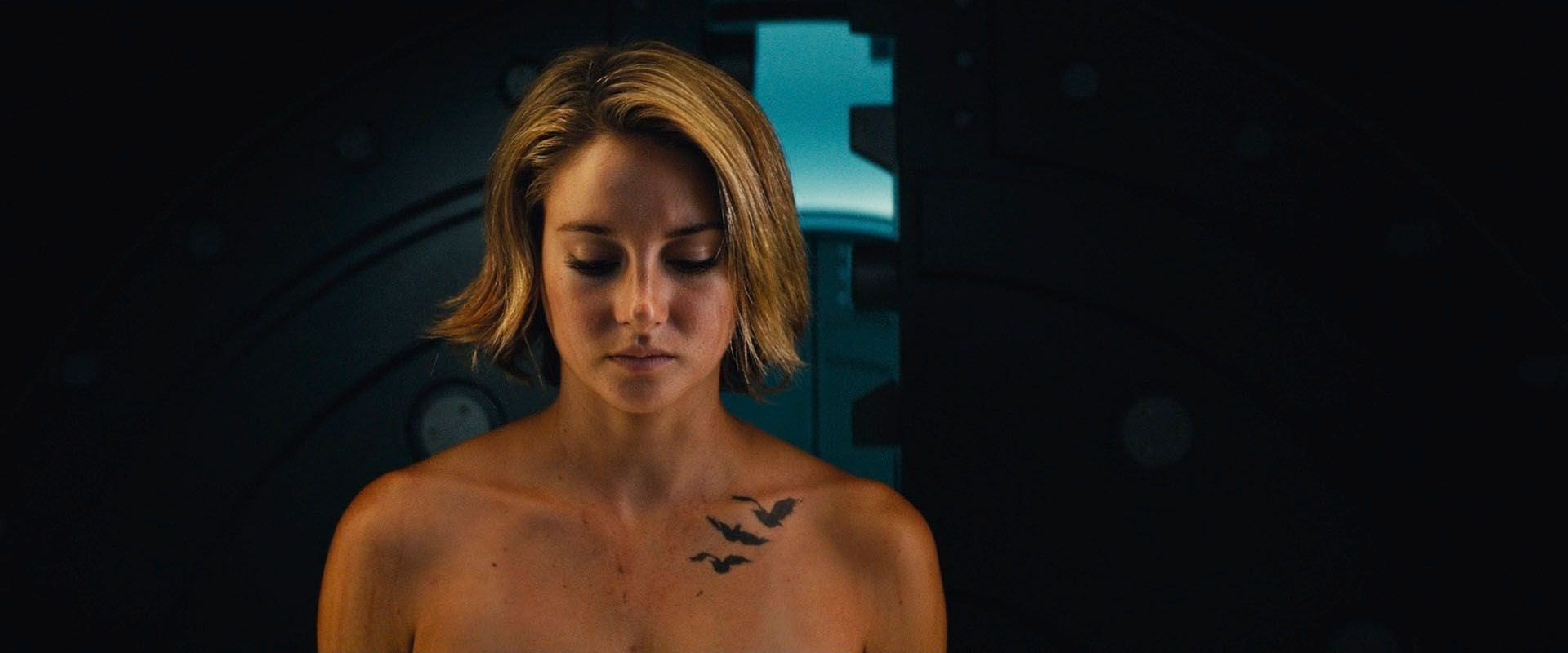 Screenshot e clip con Shailene Woodley (nel ruolo di Tris) da Allegiant (2016). Tris si slaccia il top e mostra la schiena nuda prima di passare attraverso una strana doccia. Si può anche intravedere il suo sedere! Shailene Woodley è un’attrice americana (The Spectacular Now (2013), Colpa delle stelle (2014), Snowden (2016)). Età: 24 (15 novembre 1991).