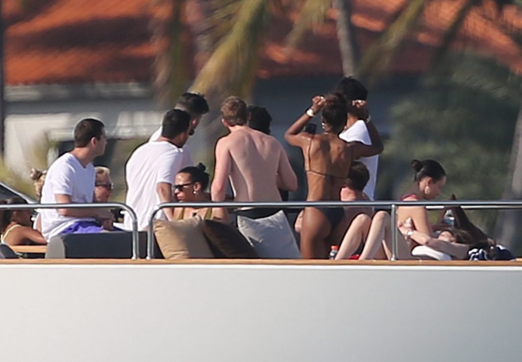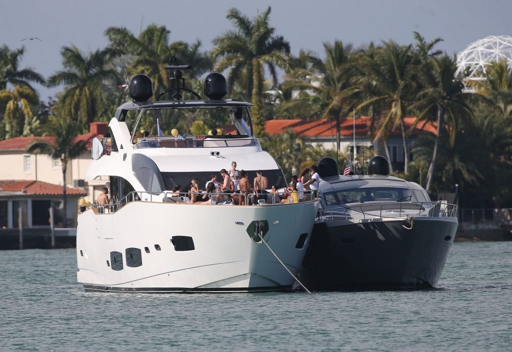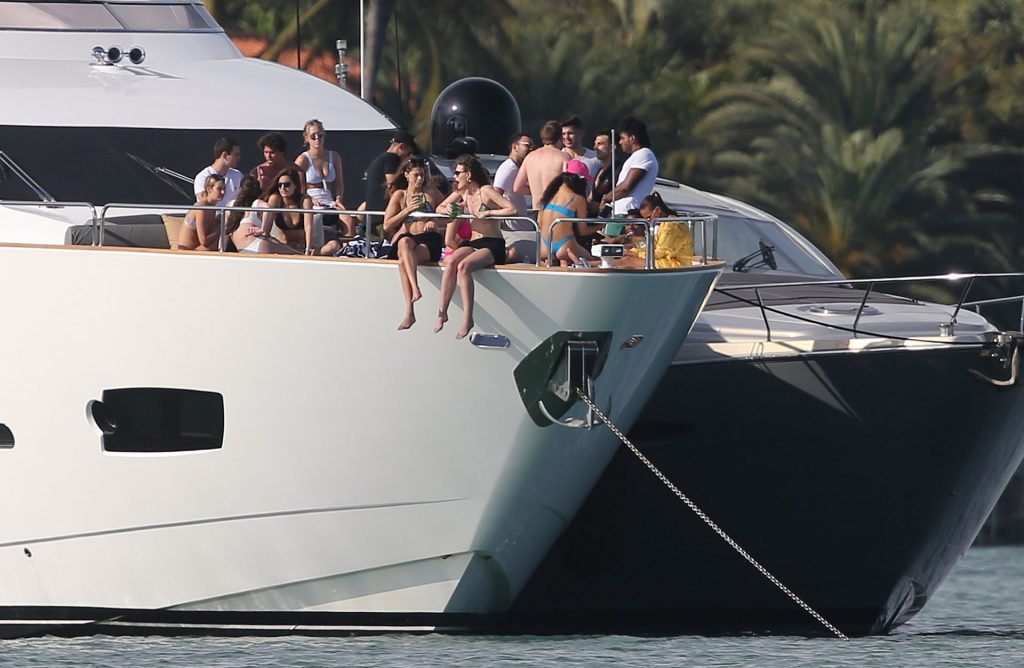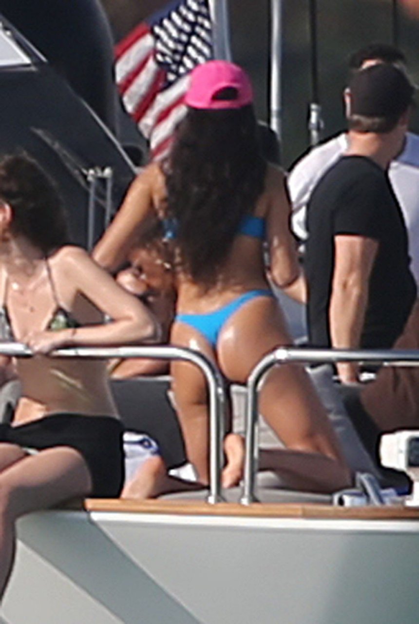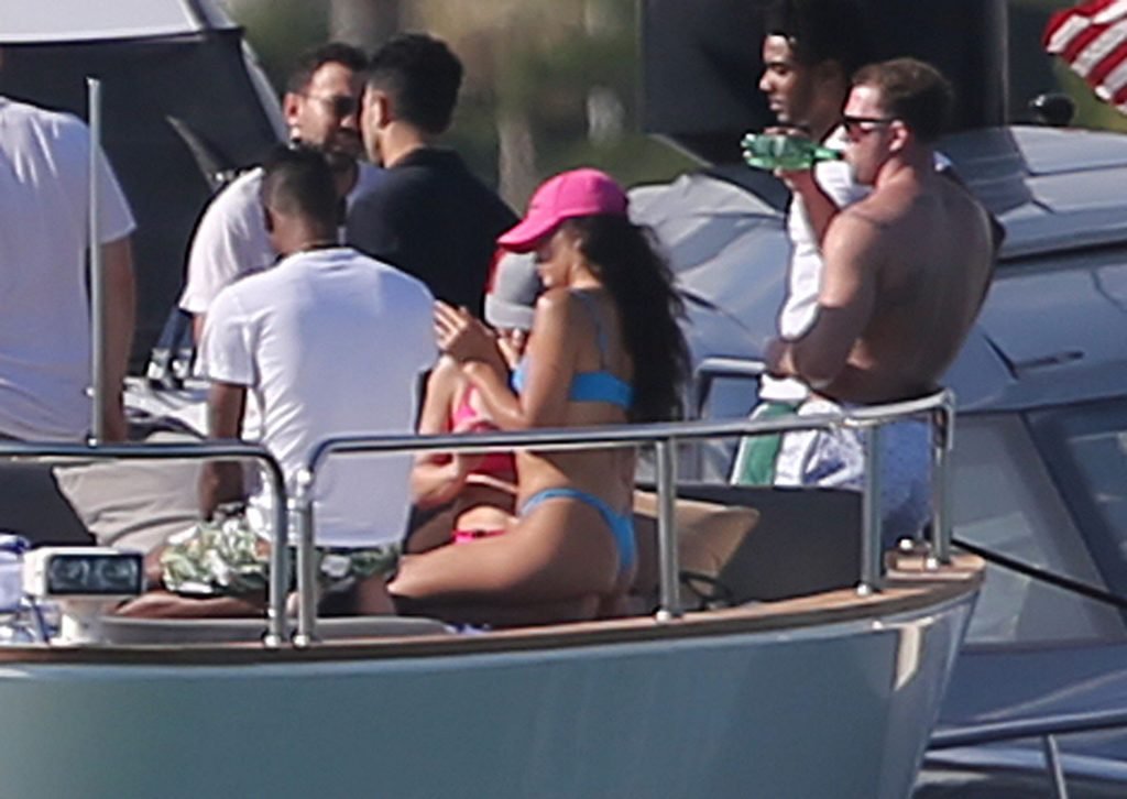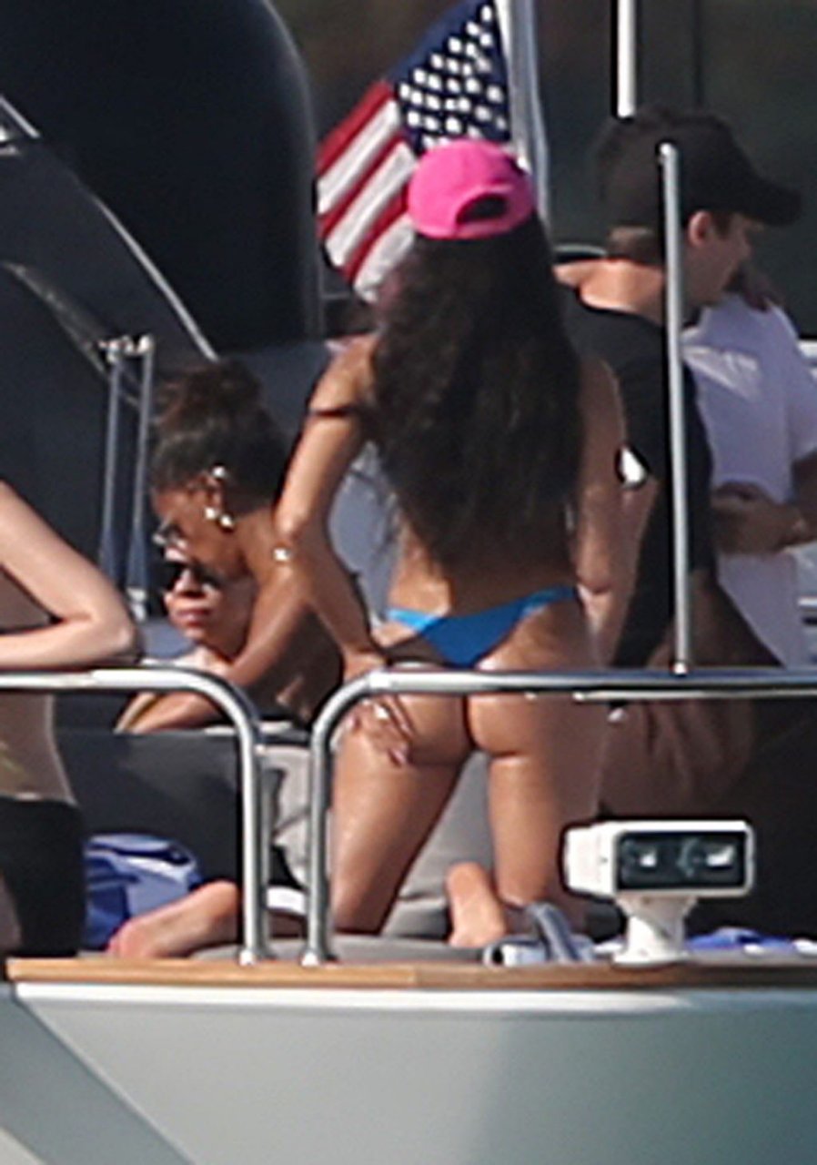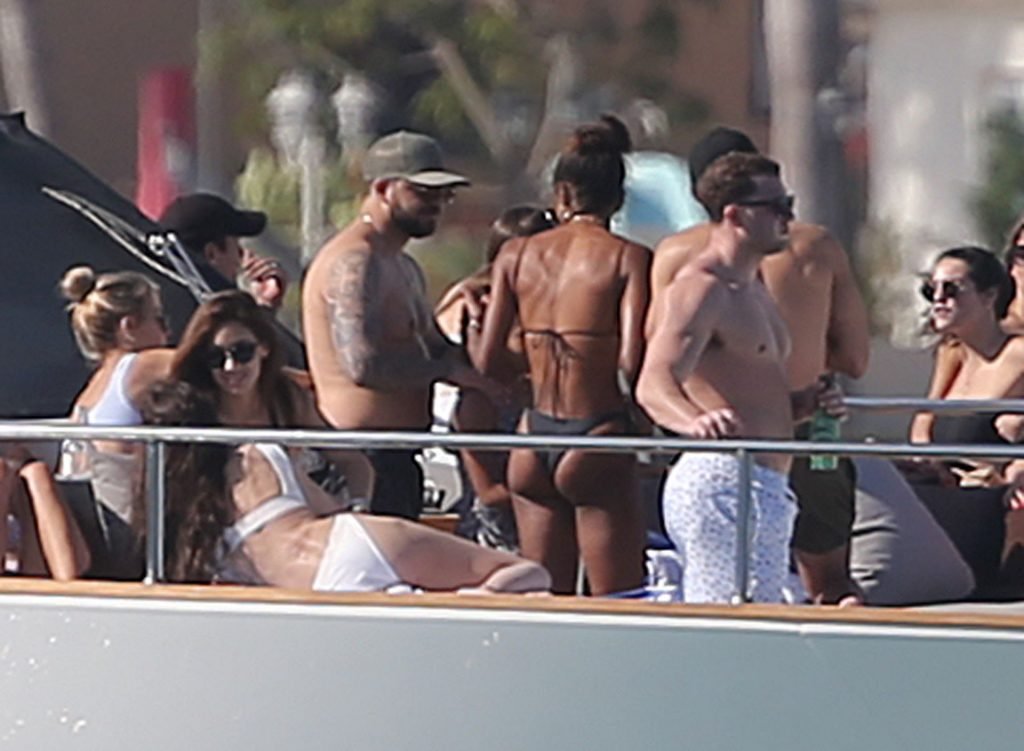Models Jasmine Tookes (in bikini nero) e Shanina Shaik (in bikini blu) festeggiano il compleanno di Jasmine su uno yacht a Miami, 02/01/2019.